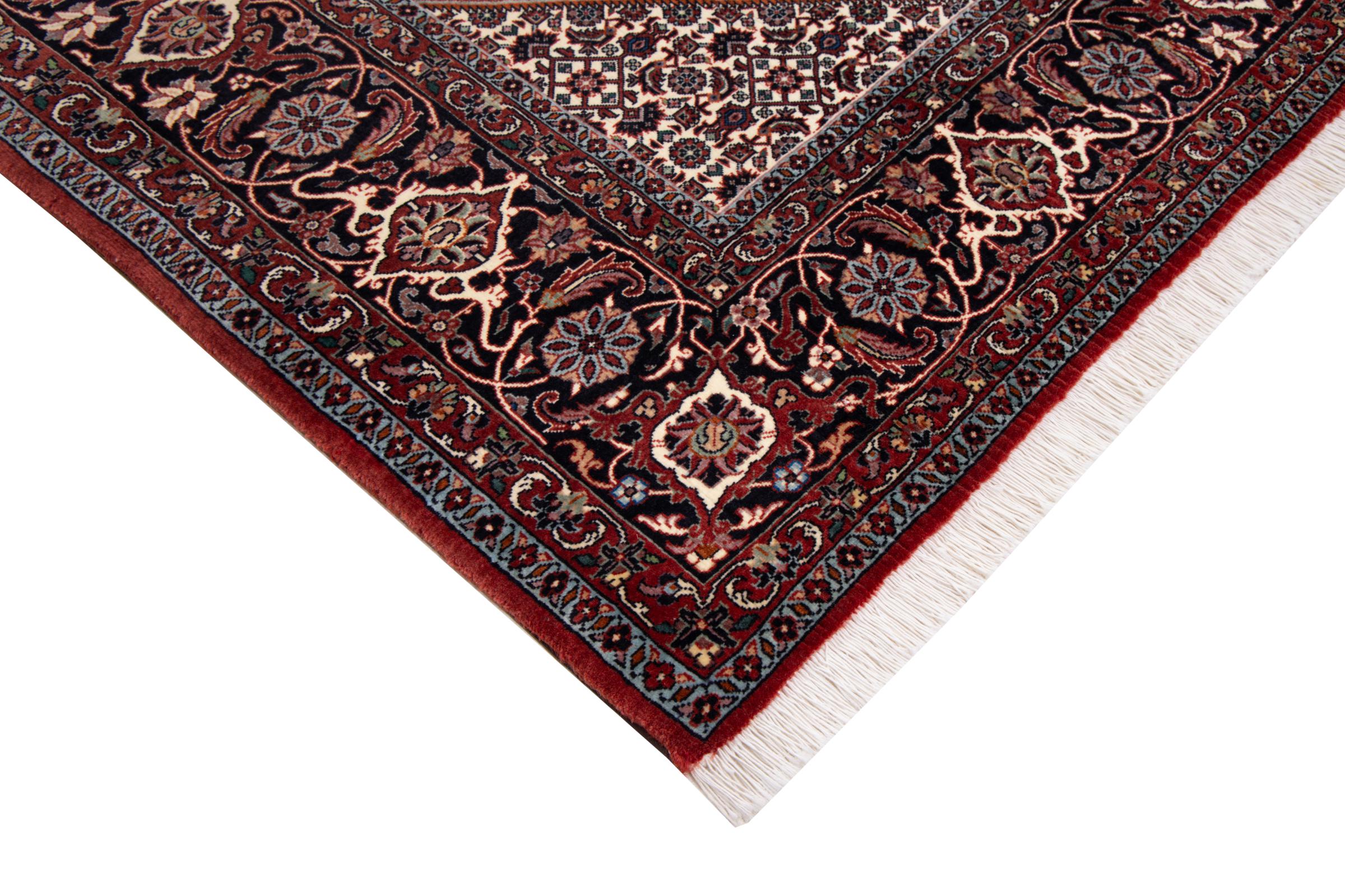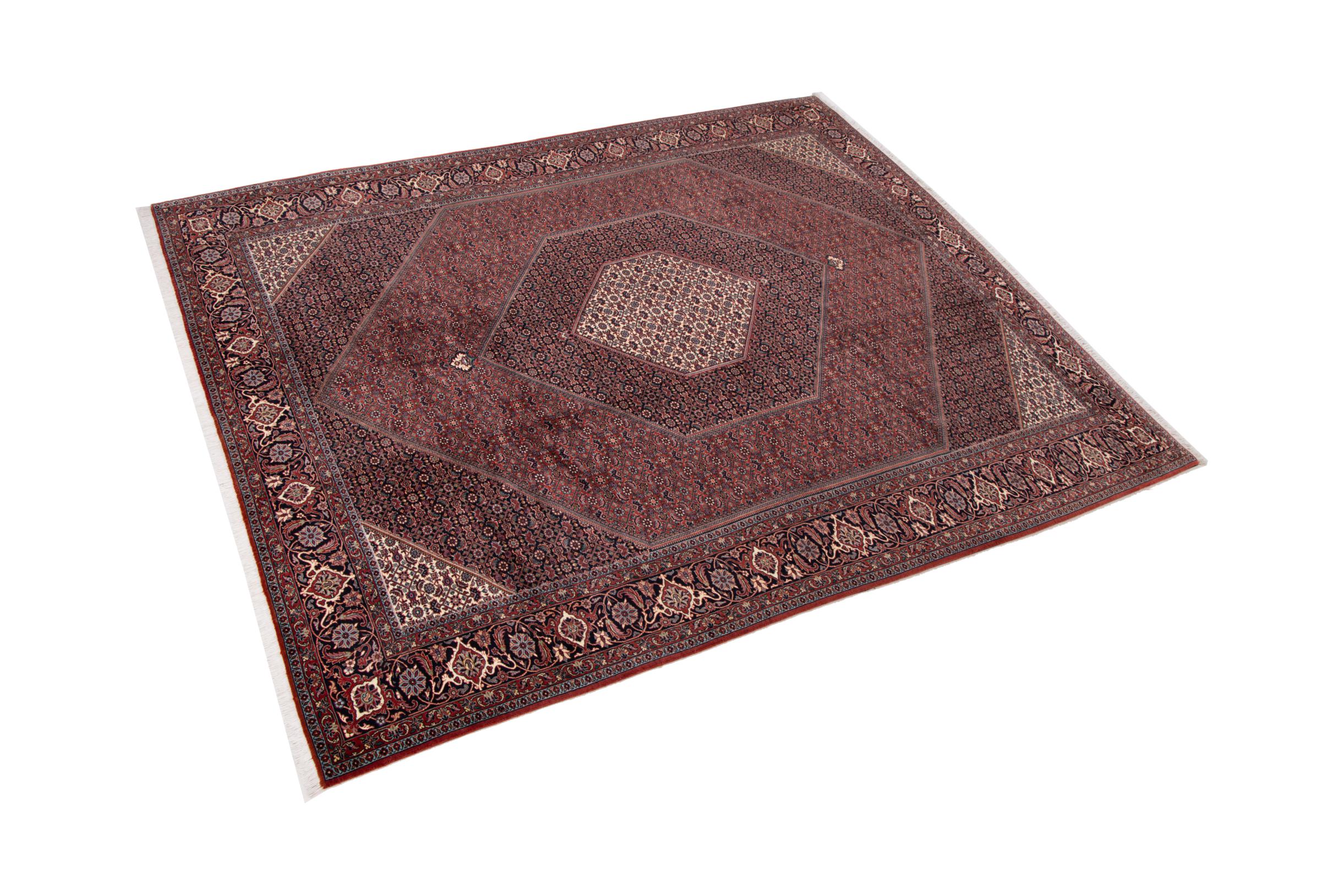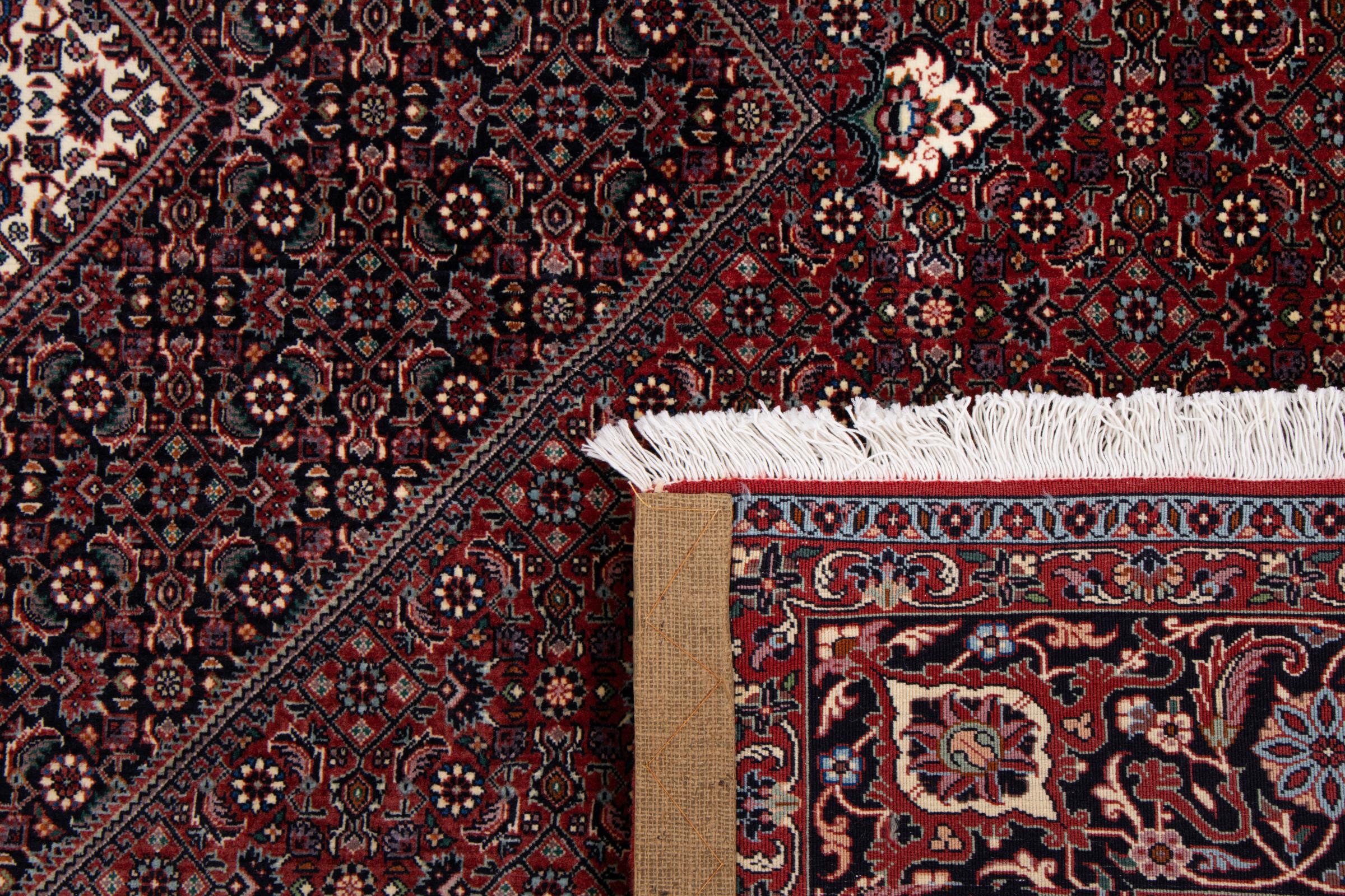 Ce tapis persan a été fabriqué dans une petite commune kurde à l’ouest de l’Iran. Les tapis Bidjar représentent la qualité. Son velours compact convainc de part sa densité importante et sa forte résistance. Vous pouvez en être certain : le tapis kurde est parfait. Et ce pour l’éternité.