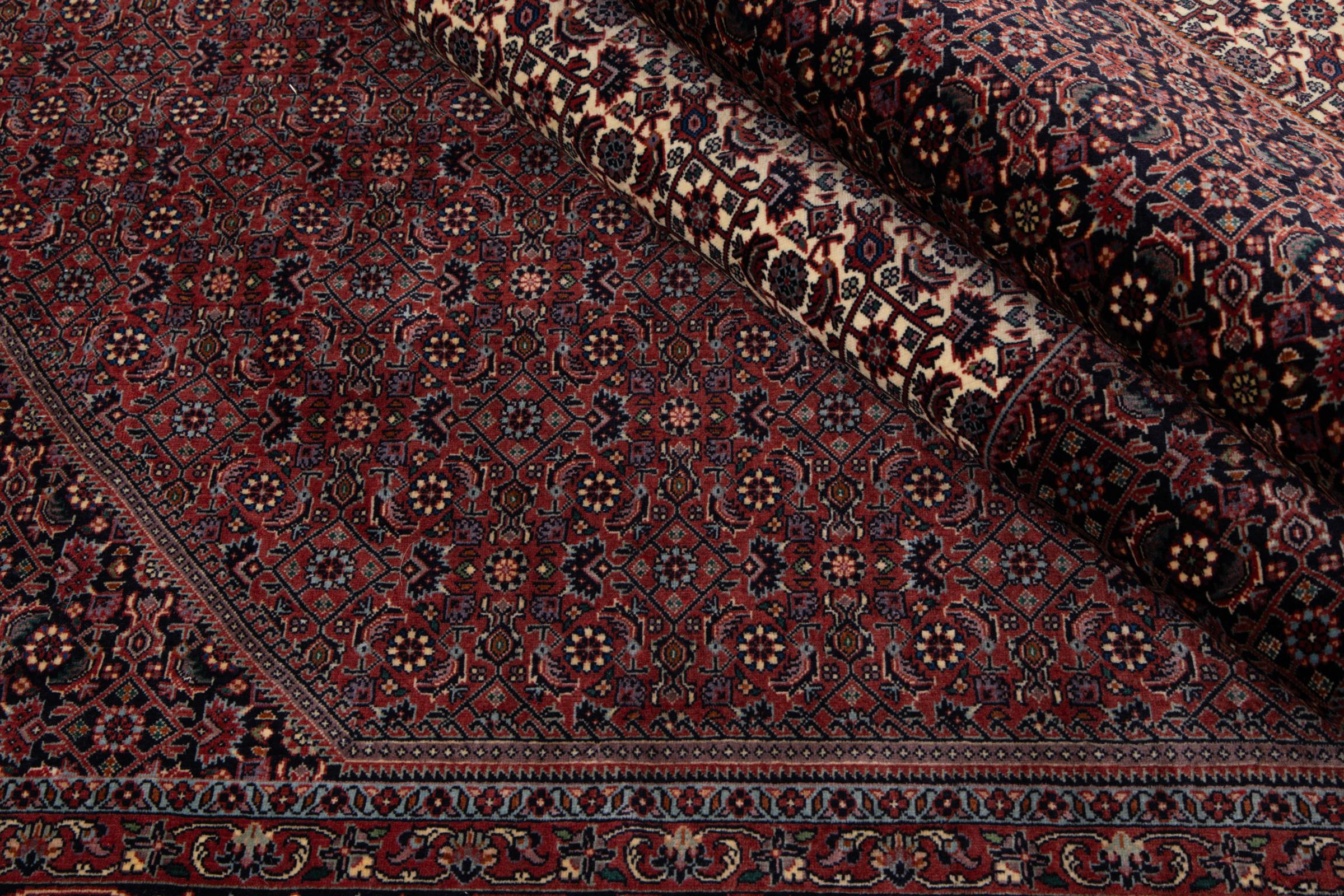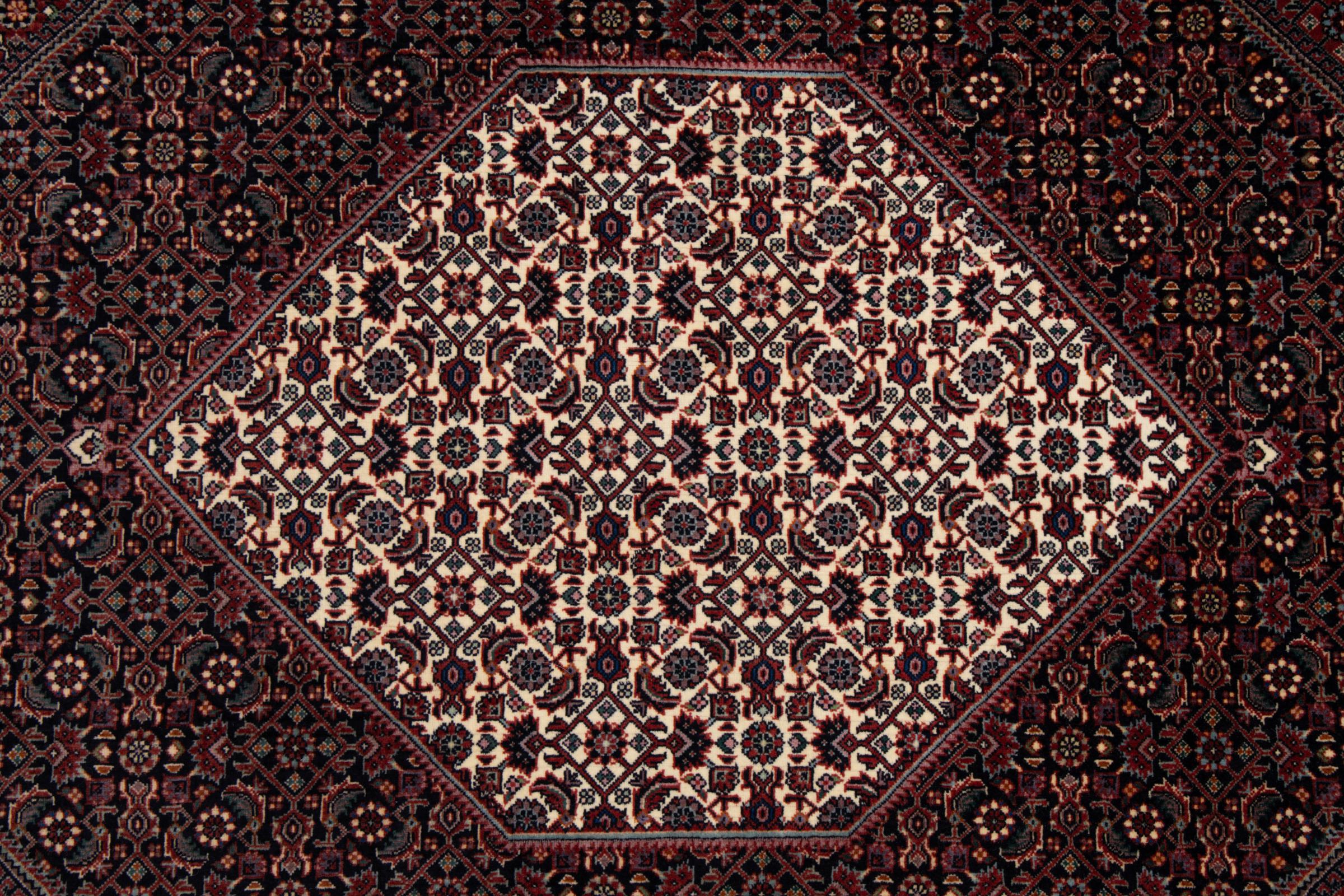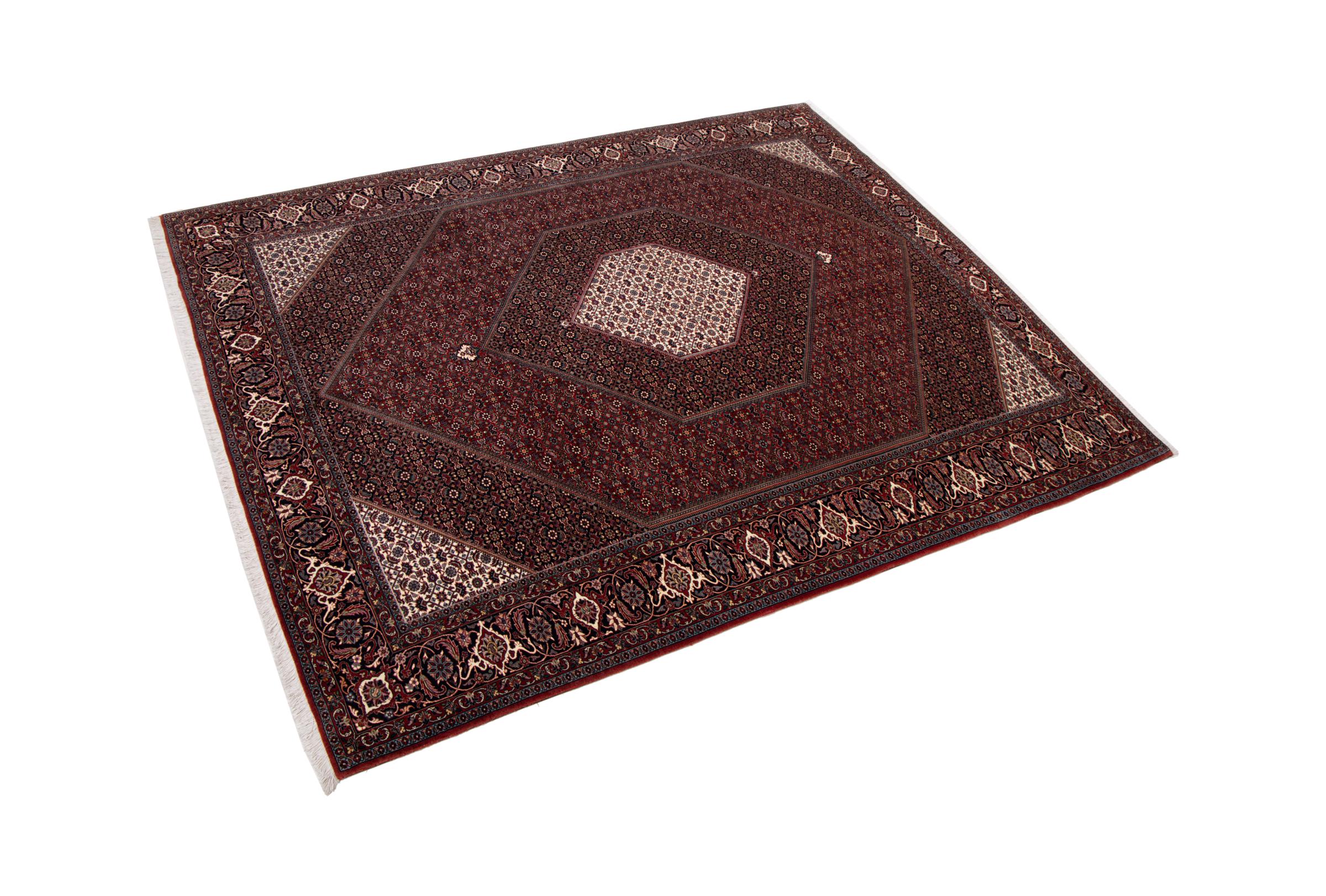 Ce tapis persan a été fabriqué dans une petite commune kurde à l’ouest de l’Iran. Les tapis Bidjar représentent la qualité. Son velours compact convainc de part sa densité importante et sa forte résistance. Vous pouvez en être certain : le tapis kurde est parfait. Et ce pour l’éternité.