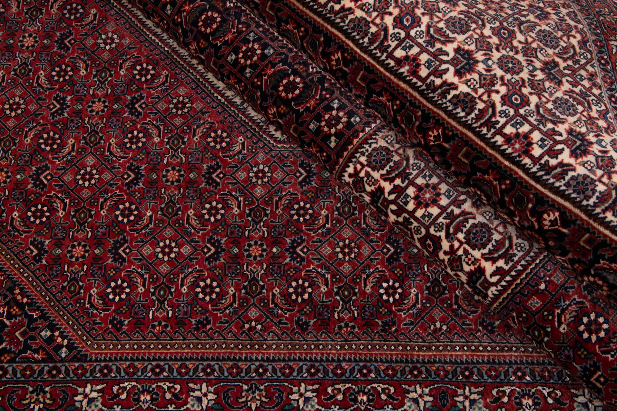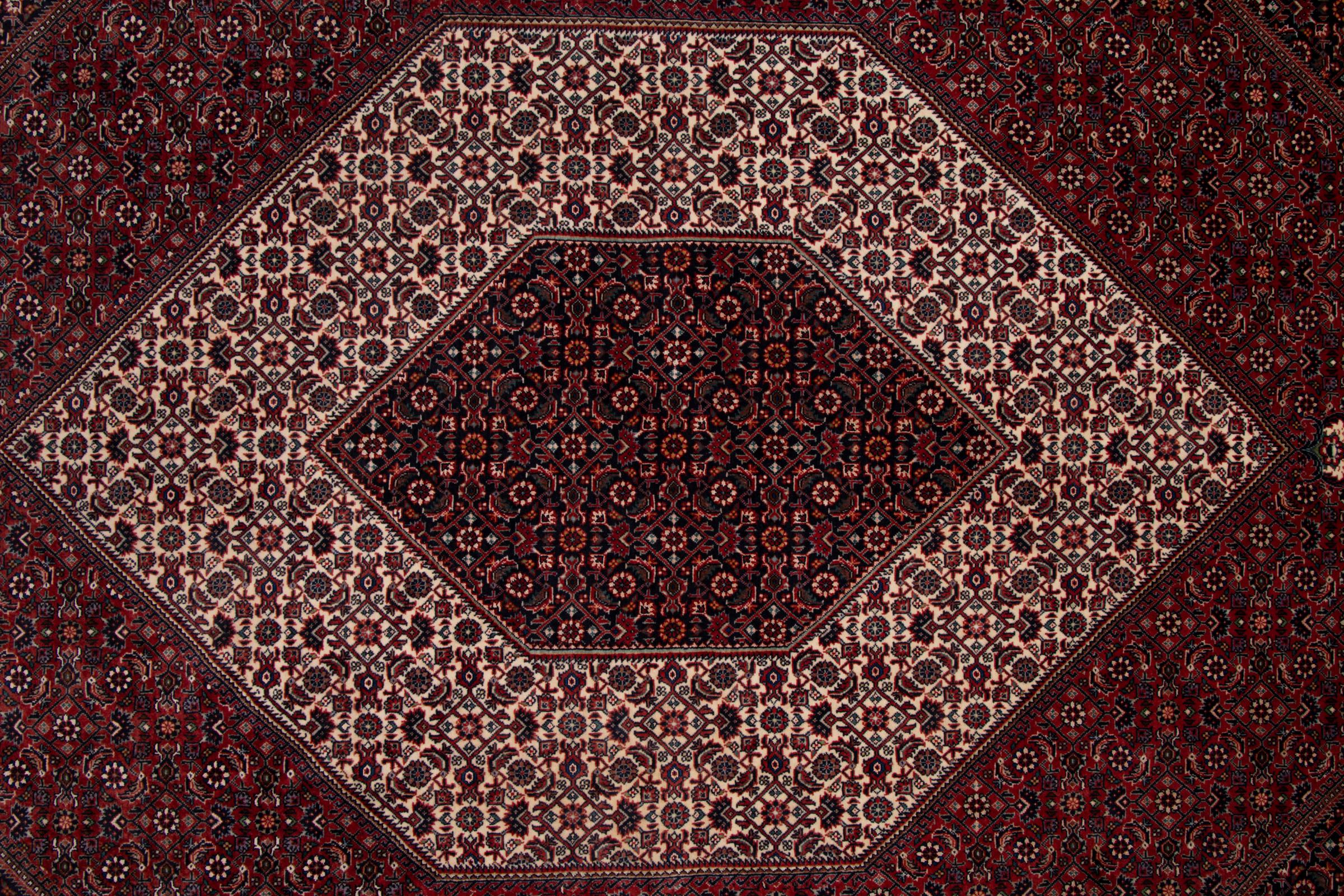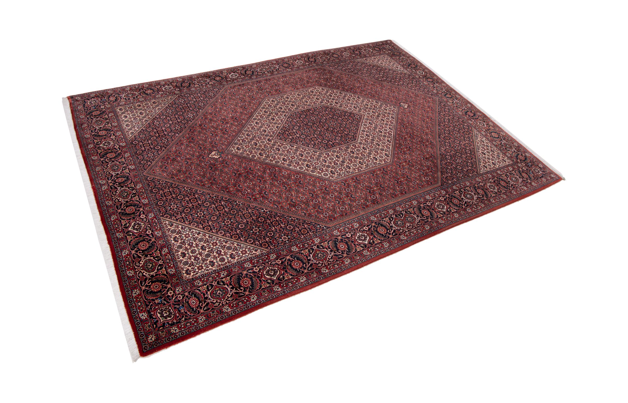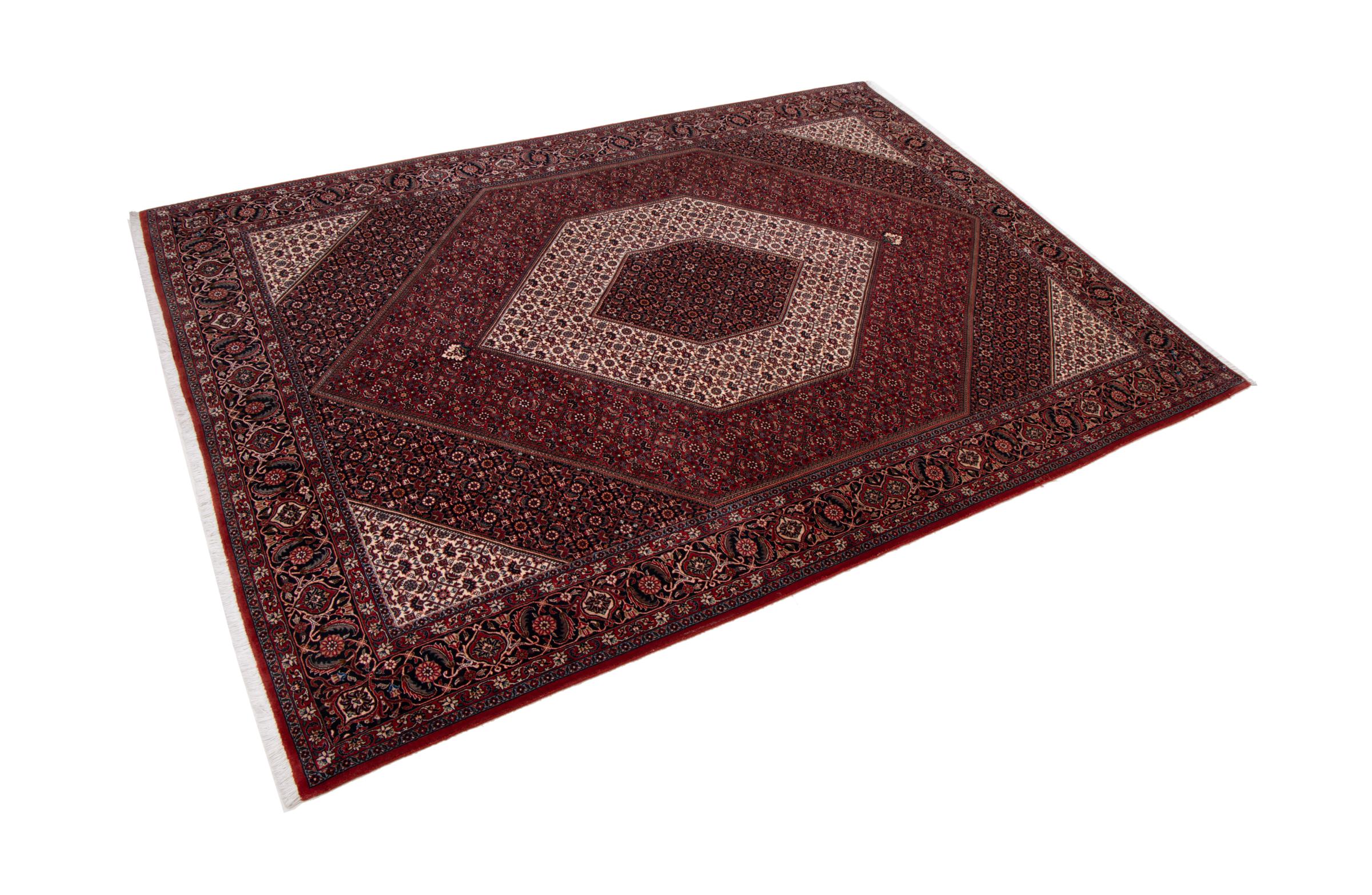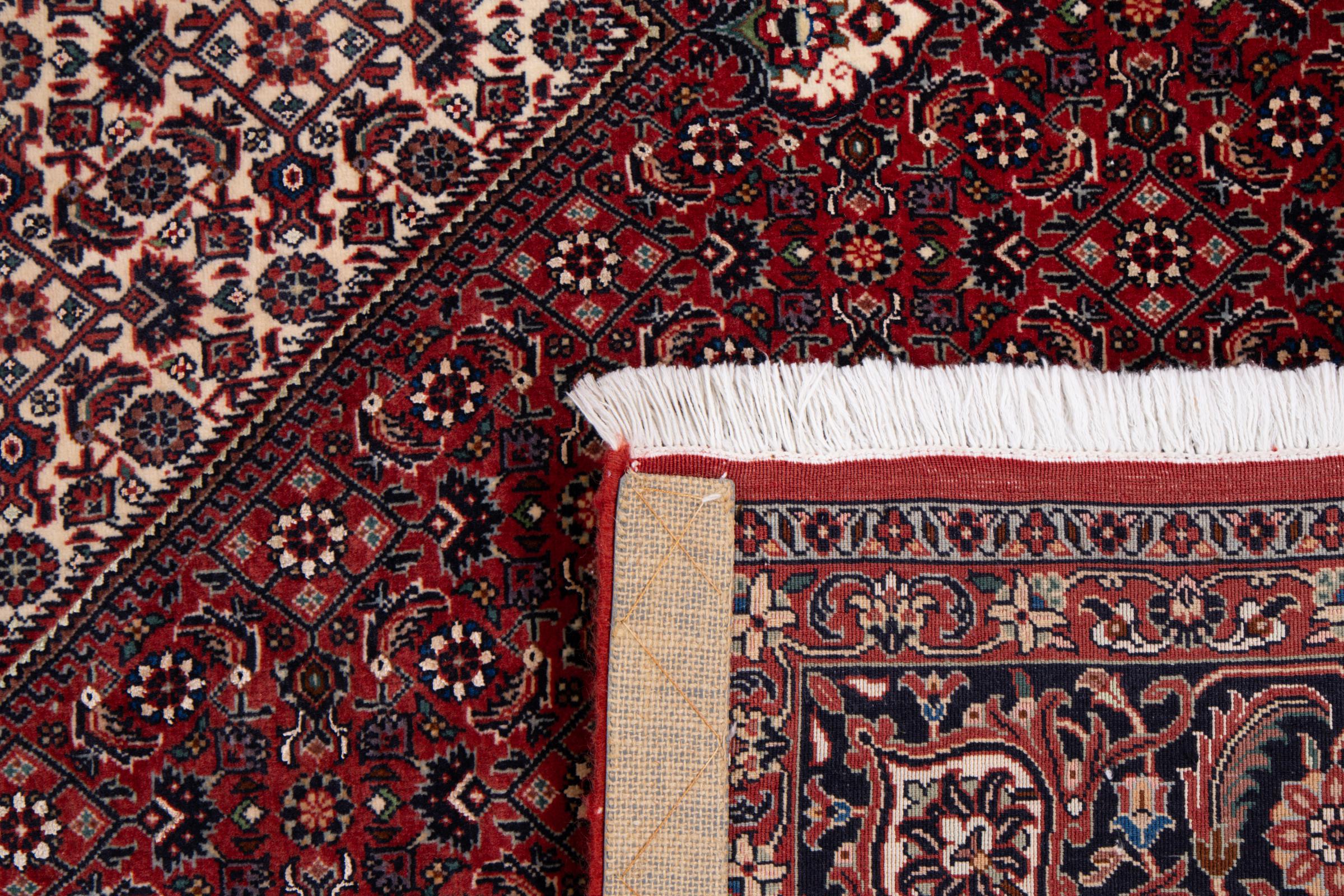 Ce tapis persan a été fabriqué dans une petite commune kurde à l’ouest de l’Iran. Les tapis Bidjar représentent la qualité. Son velours compact convainc de part sa densité importante et sa forte résistance. Vous pouvez en être certain : le tapis kurde est parfait. Et ce pour l’éternité.