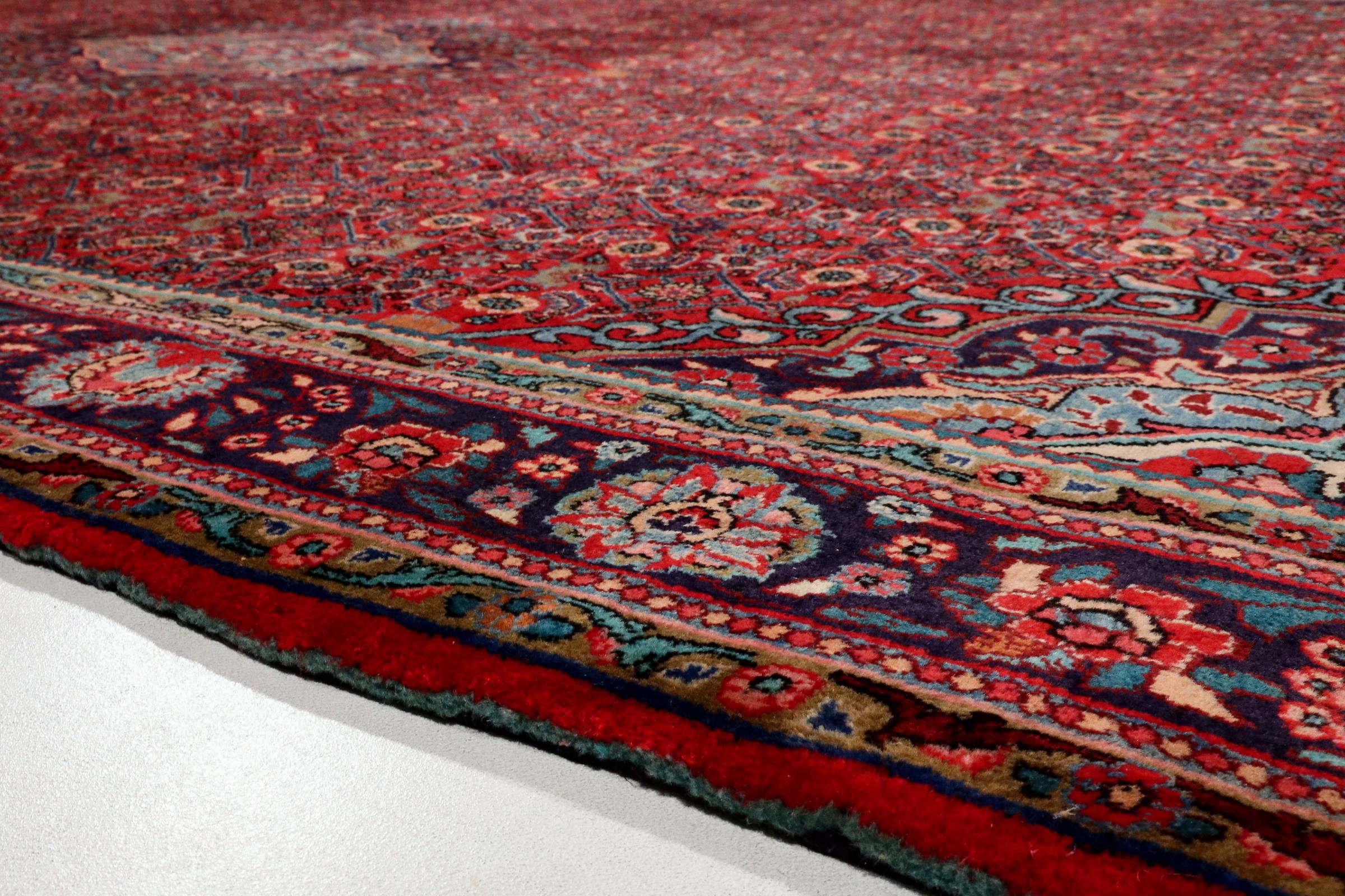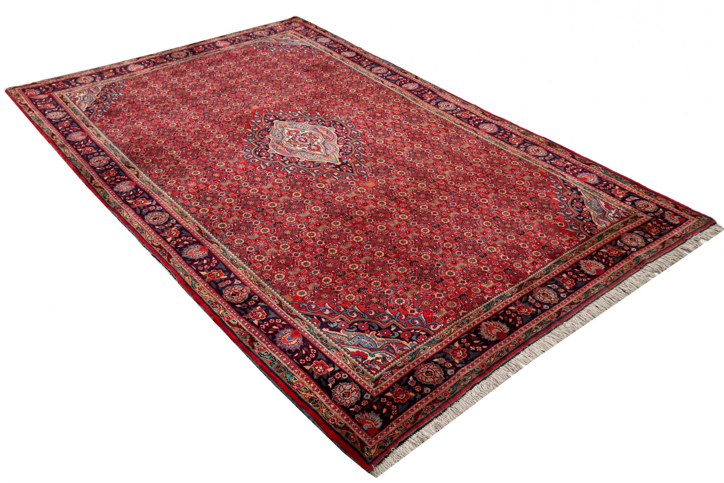 Ce tapis persan a été fabriqué dans une petite commune kurde à l’ouest de l’Iran. Les tapis Bidjar représentent la qualité. Son velours compact convainc de part sa densité importante et sa forte résistance. Vous pouvez en être certain : le tapis kurde est parfait. Et ce pour l’éternité.