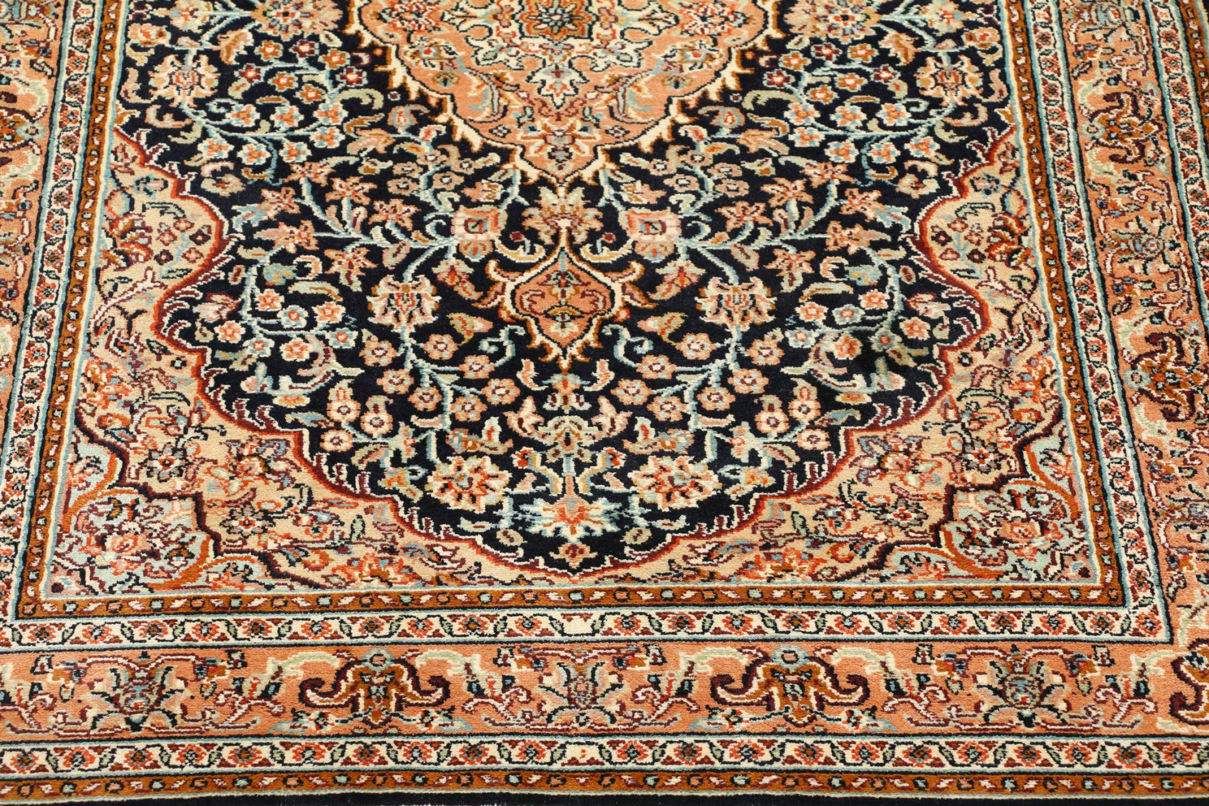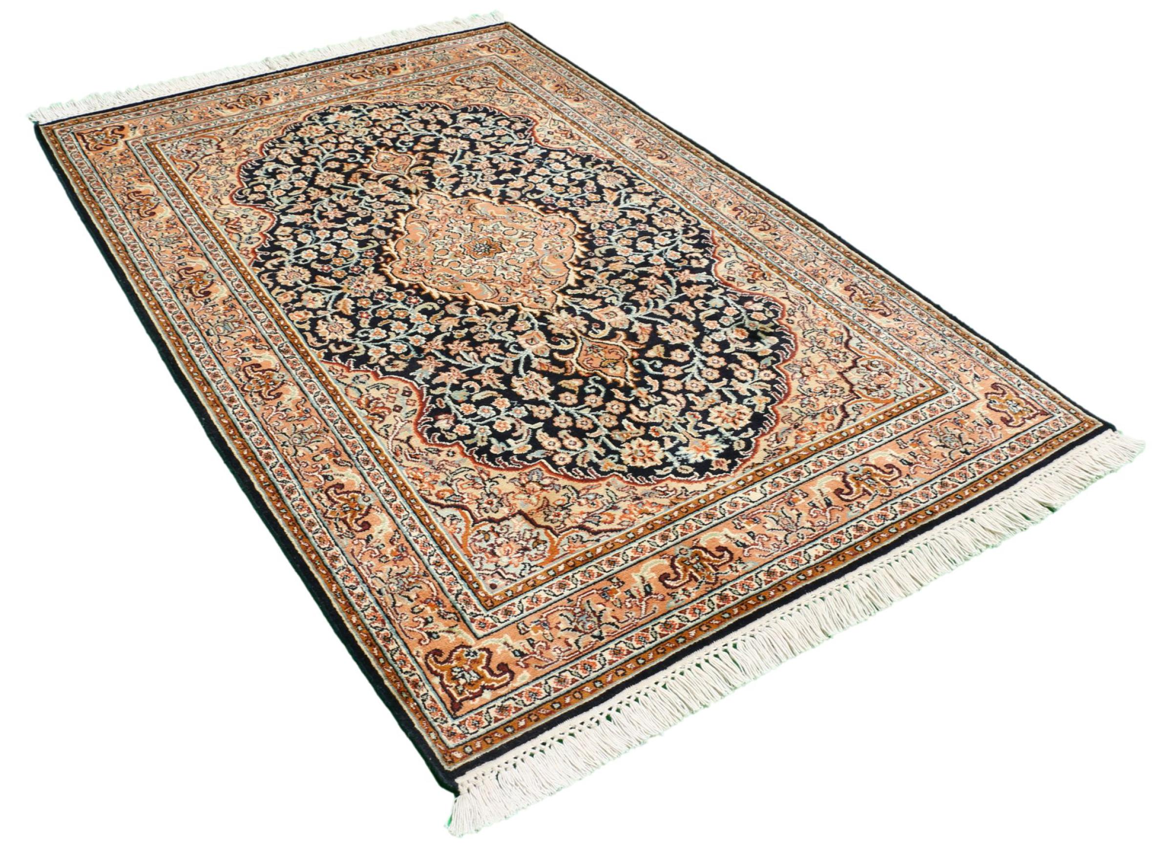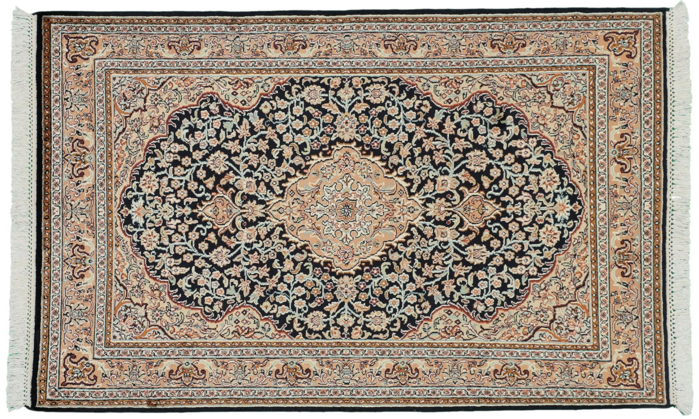 Les noueurs de tapis de l'ancienne Perse sont venus en Inde il y a des siècles pour exercer leur métier. Ainsi, l'Inde a aujourd'hui une tradition de nouage de tapis d'une grande portée. Les motifs et les ornements sont souvent basés sur les motifs bien connus des tapis persans. De nombreux tapis orientaux noués à la main viennent du nord du pays. Les tapis en soie du Cachemire, par exemple, proviennent de la région du Cachemire, qui est directement voisine du Pakistan.