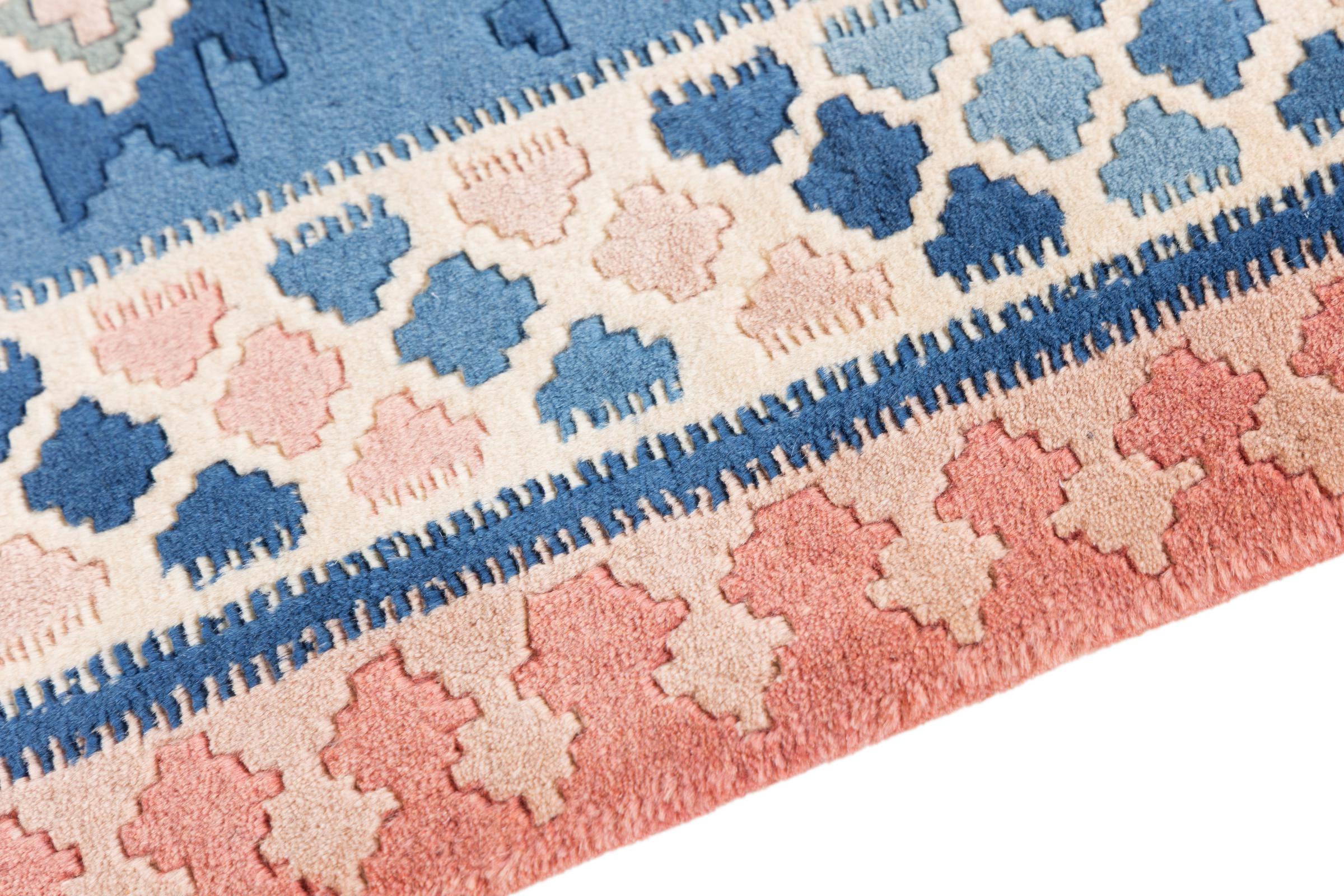 Ce tapis est fait de laine de mouton filée à la main de la plus haute qualité. En Iran (ancienne Perse), en Afghanistan et au Pakistan notamment, la laine est encore filée à la main avant que ne commence le nouage proprement dit du tapis. La laine a fait ses preuves en tant que matière naturelle et extrêmement résistante au fil des siècles. Il a notamment des propriétés antisalissures et d'isolation thermique. En même temps, la laine est incomparablement douce et a un éclat naturel.