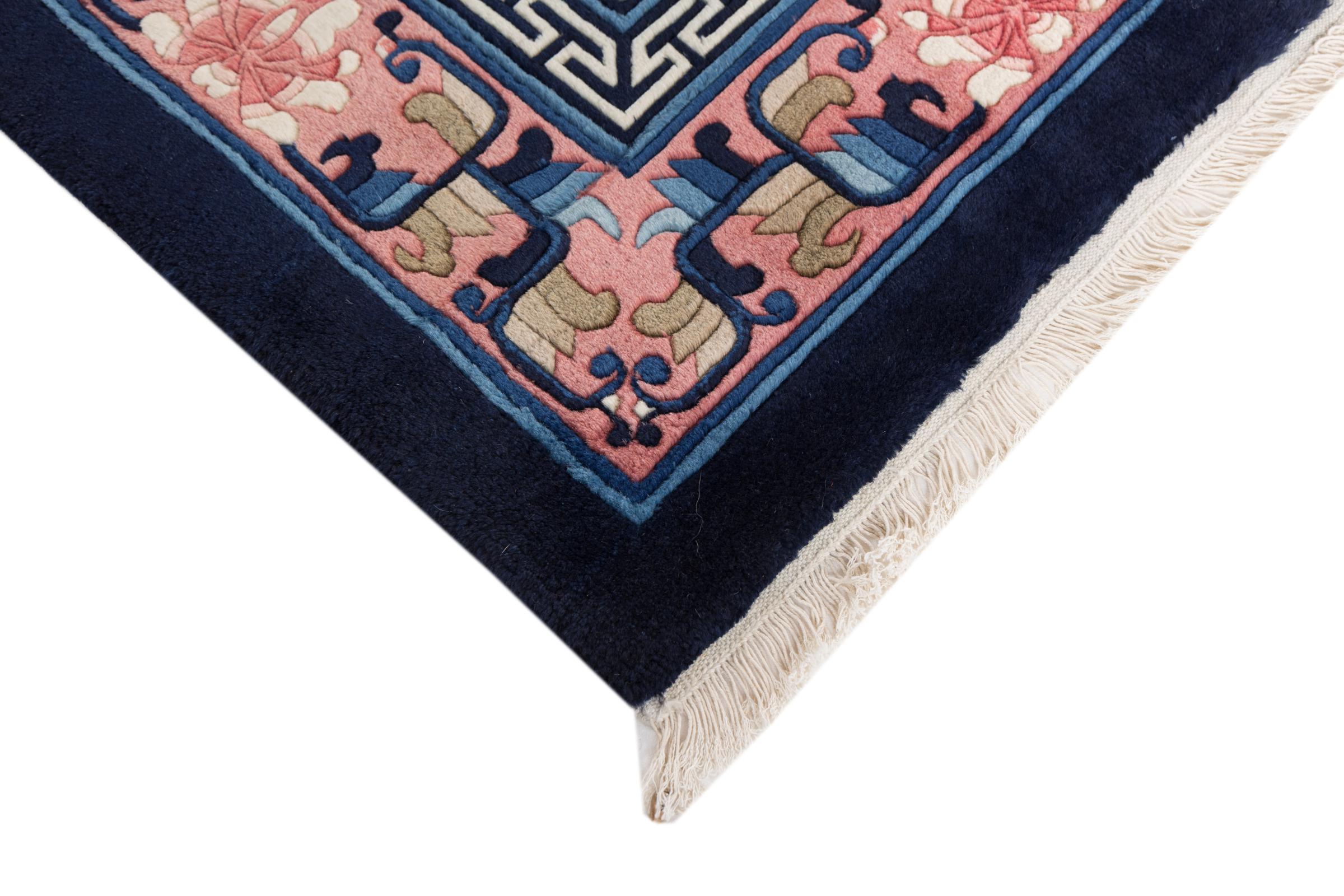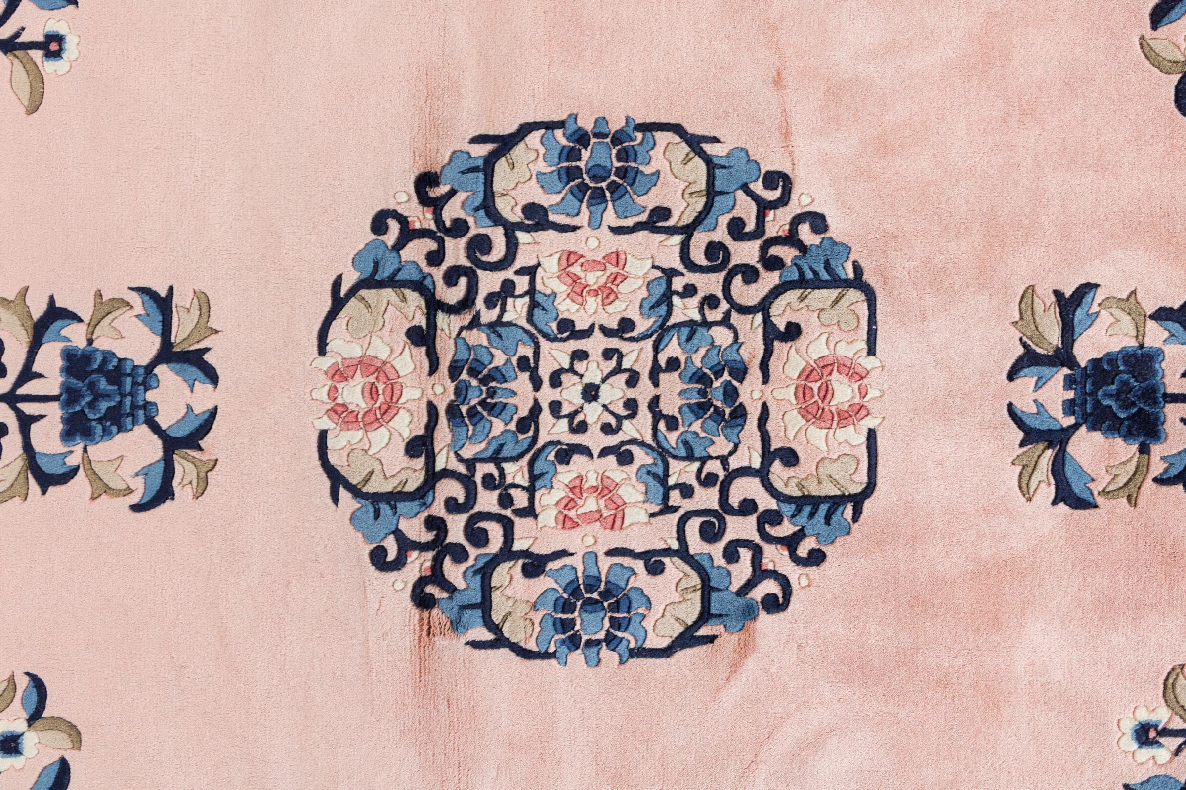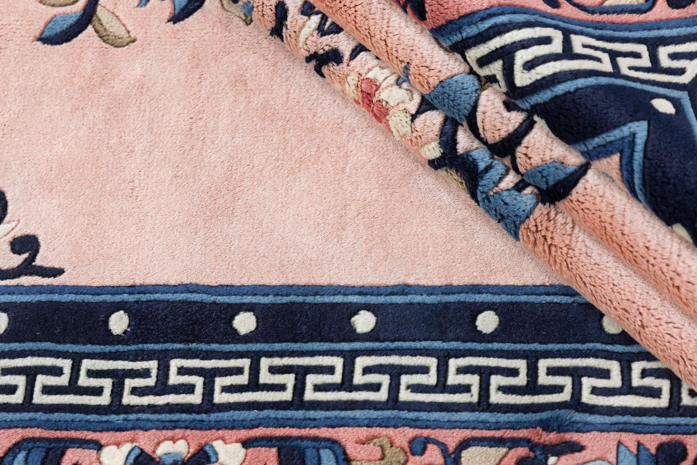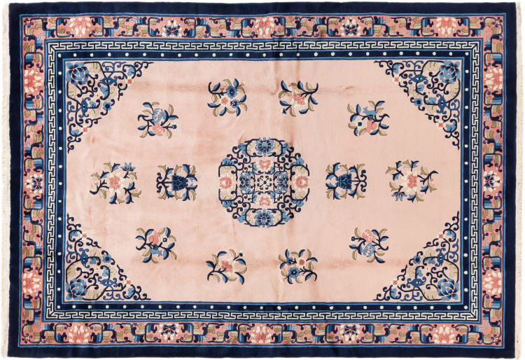 Les tapis chinois noués à la main ont une tradition qui remonte à des milliers d'années et ont été noués pour la cour impériale. Leur conception est indubitablement déterminée par des motifs issus de la peinture sur porcelaine, tels que des motifs floraux typiques, des oiseaux ou même des dragons. Aujourd'hui, ces motifs sont devenus beaucoup plus rares, car les tapis sont davantage orientés vers l'apparence des tapis persans.