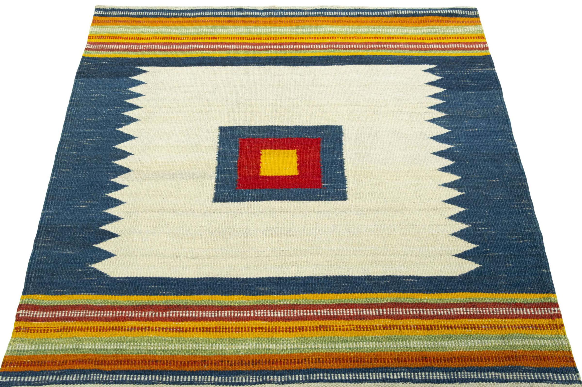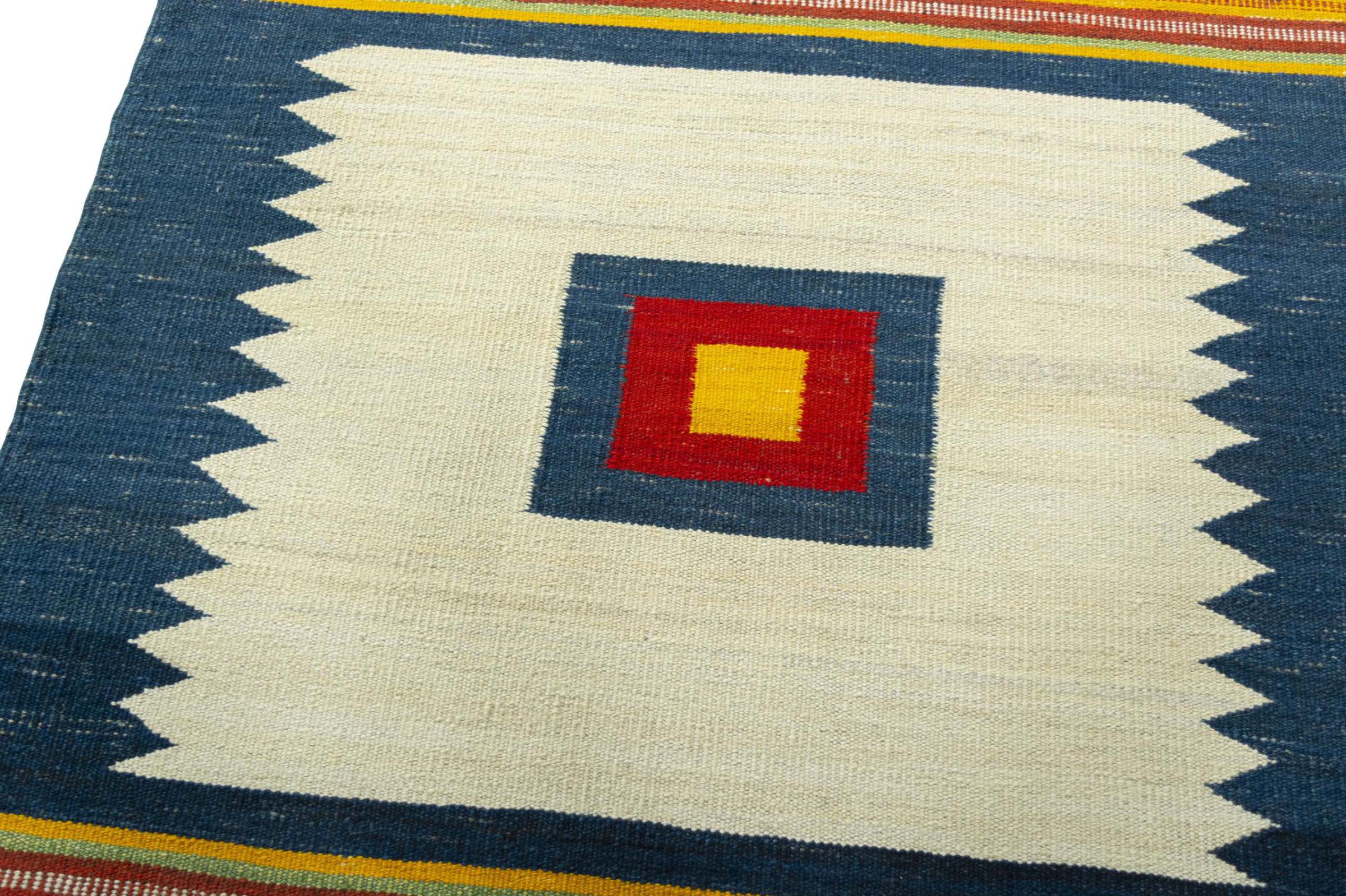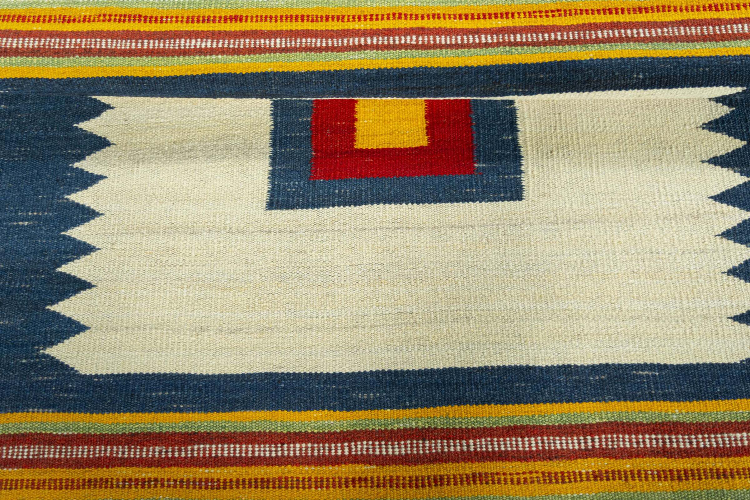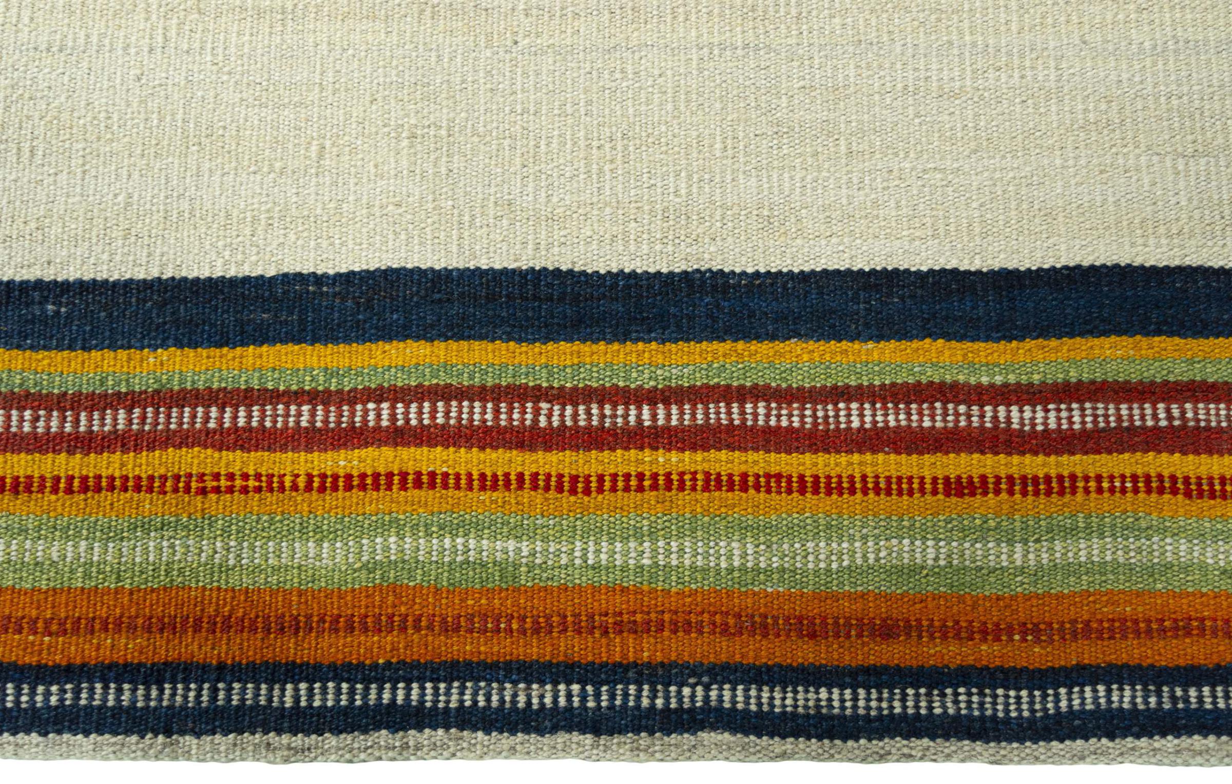 Cet Eylisian est un kilim au design tissé à plat, moderne et de très haute qualité. Sa laine naturelle filée à la main a été tissée à la main selon un design contemporain en utilisant la technique persane traditionnelle. Sa qualité robuste et durable en fait un accroche-regard populaire, contemporain et intemporel dans votre maison.
