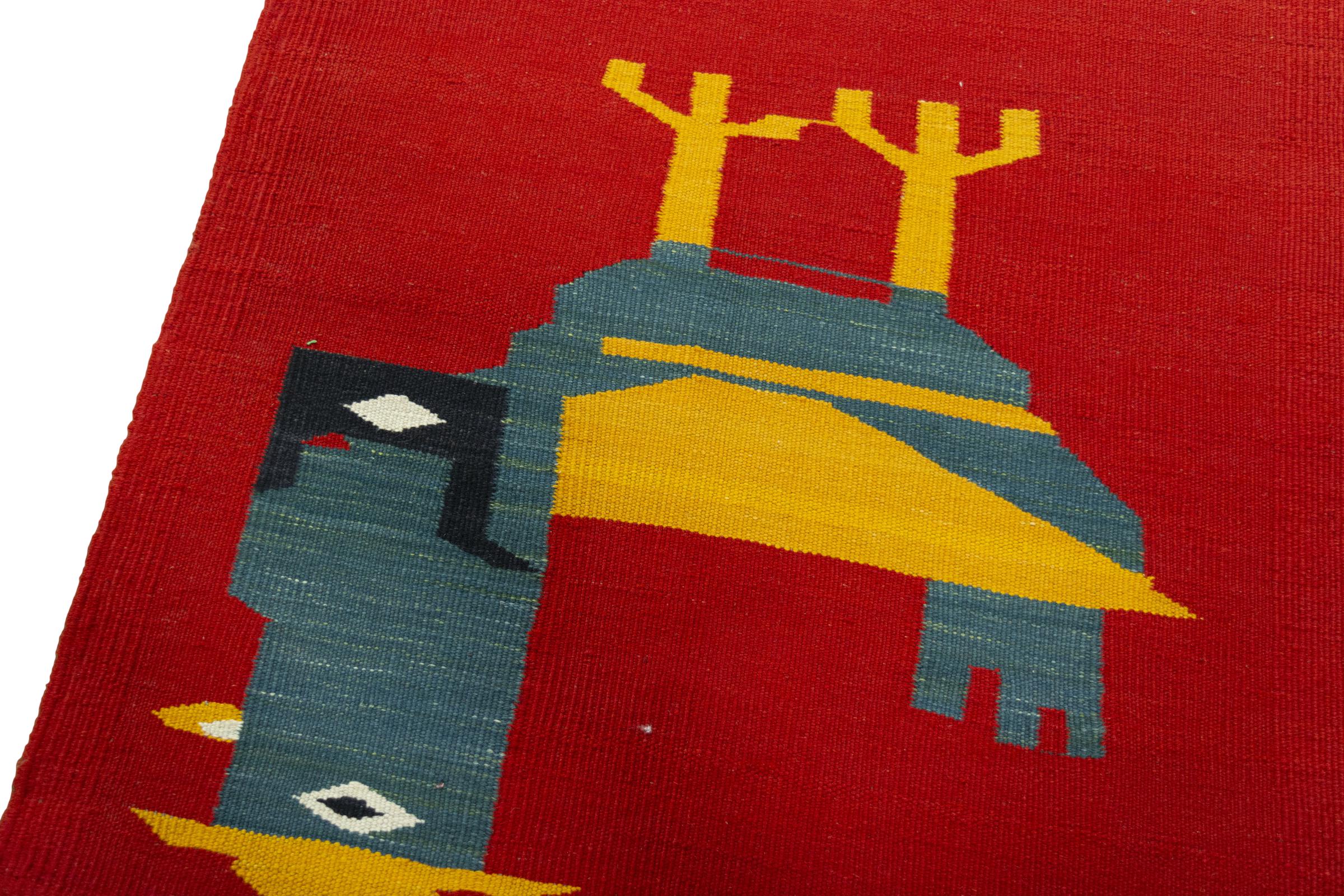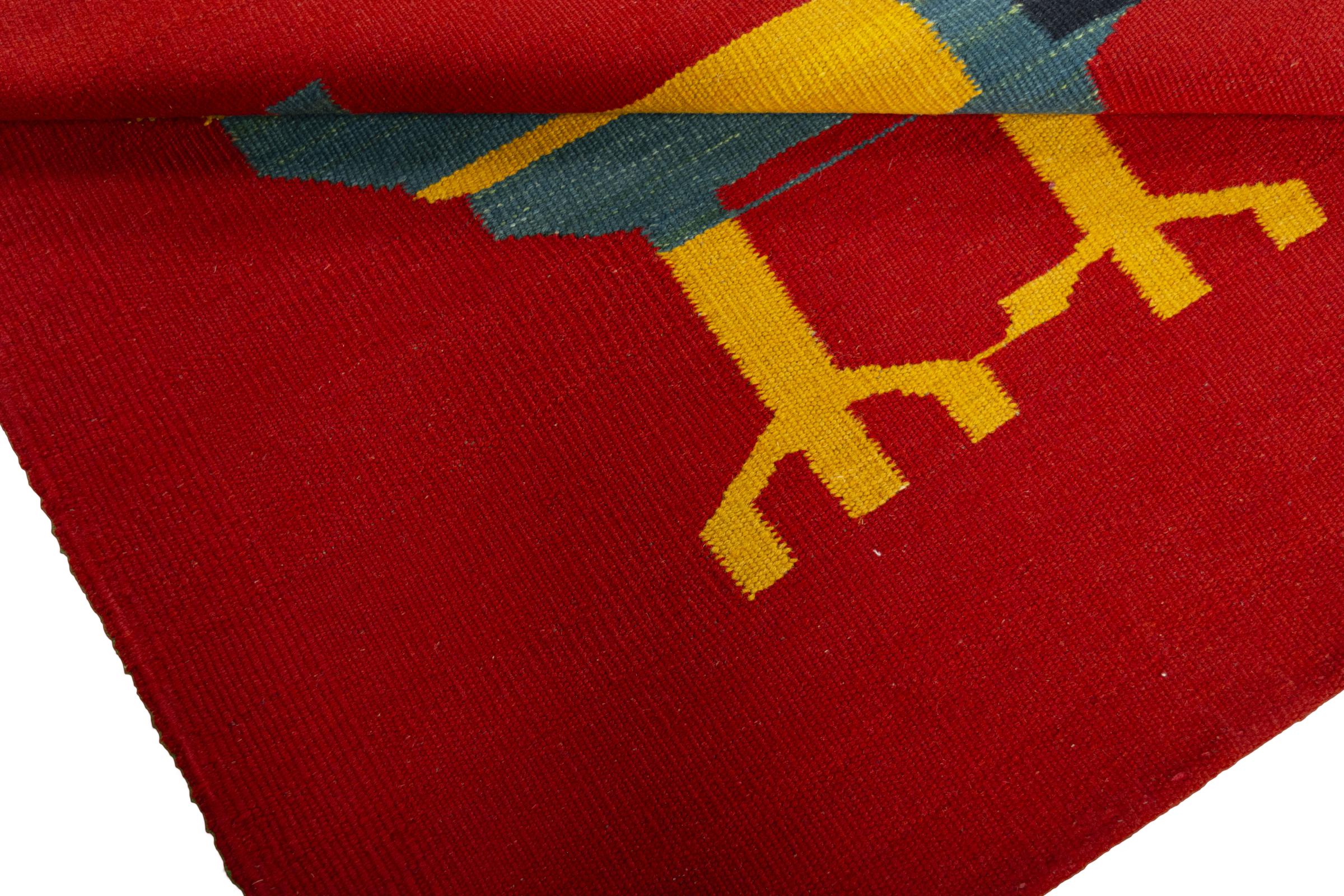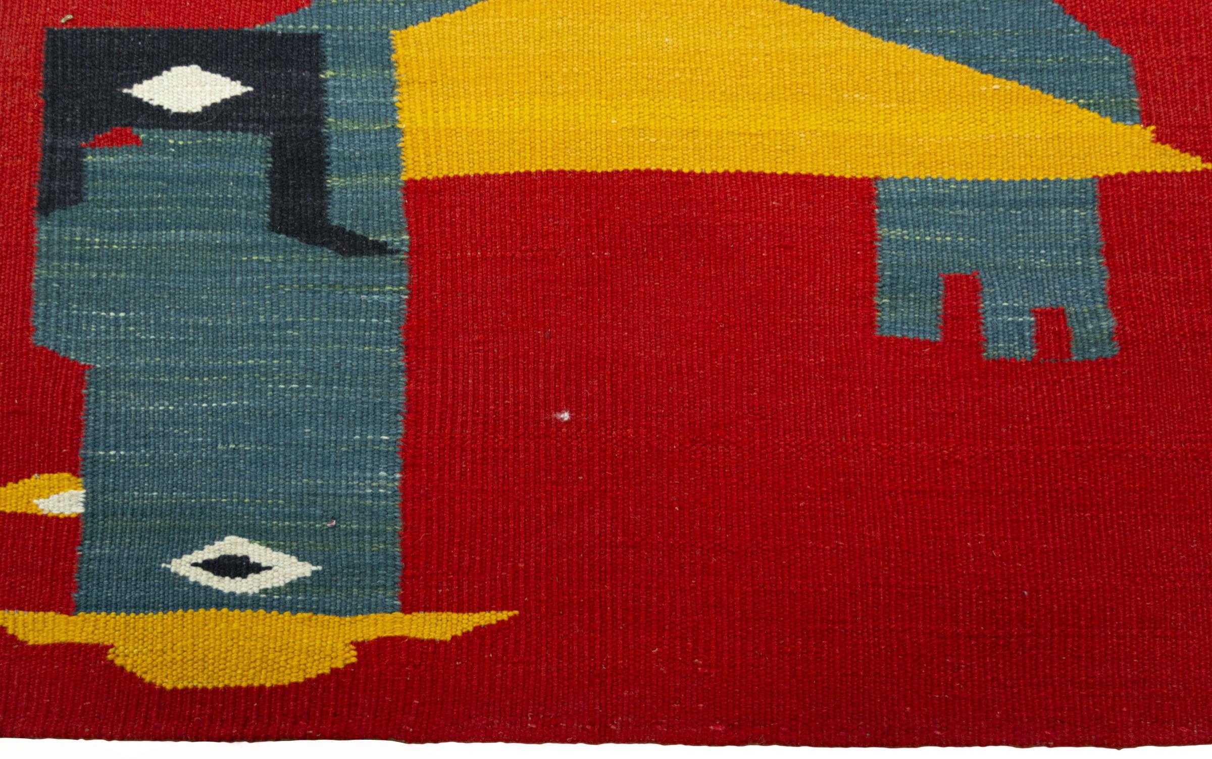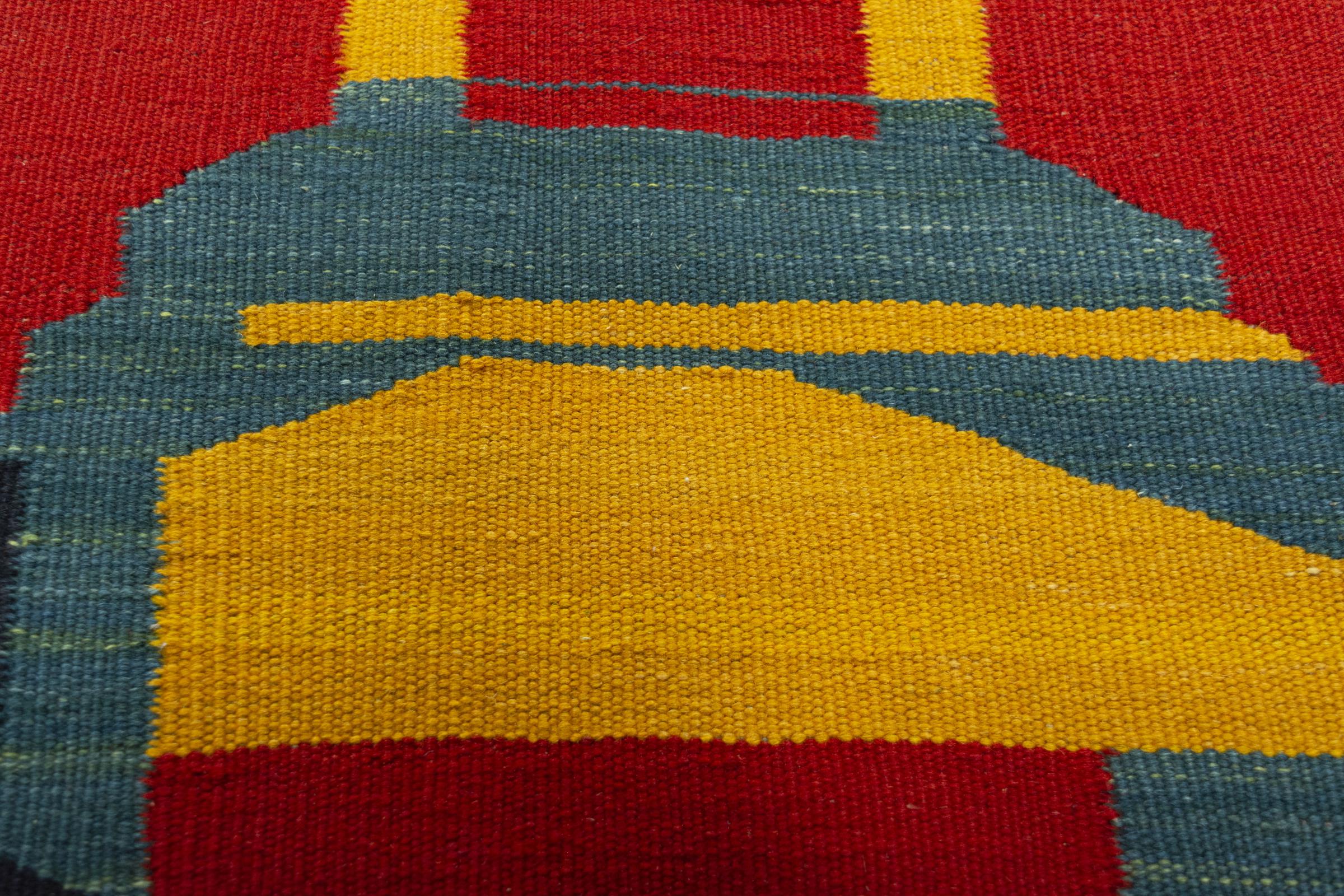 Cet Eylisian est un kilim au design tissé à plat, moderne et de très haute qualité. Sa laine naturelle filée à la main a été tissée à la main selon un design contemporain en utilisant la technique persane traditionnelle. Sa qualité robuste et durable en fait un accroche-regard populaire, contemporain et intemporel dans votre maison.