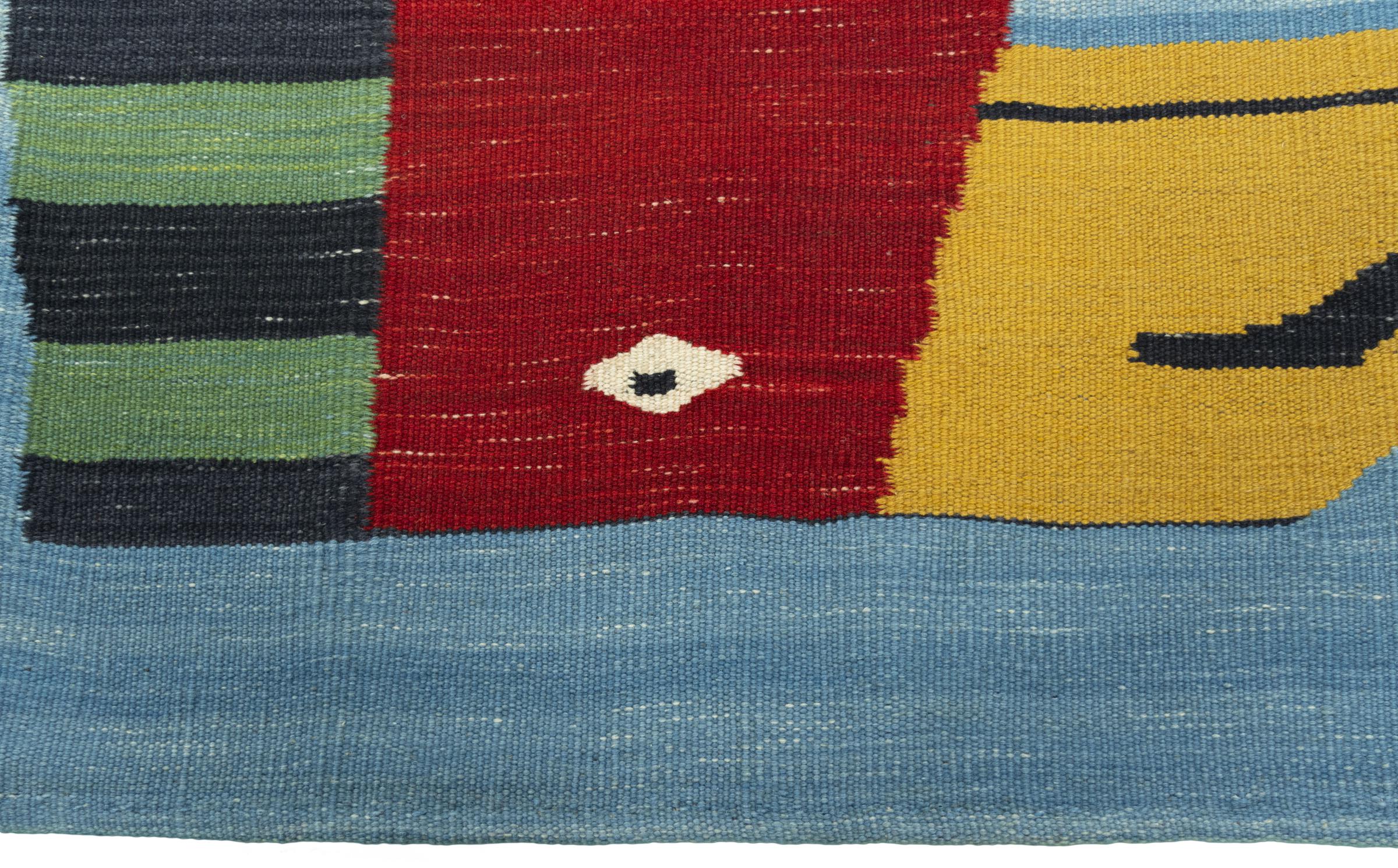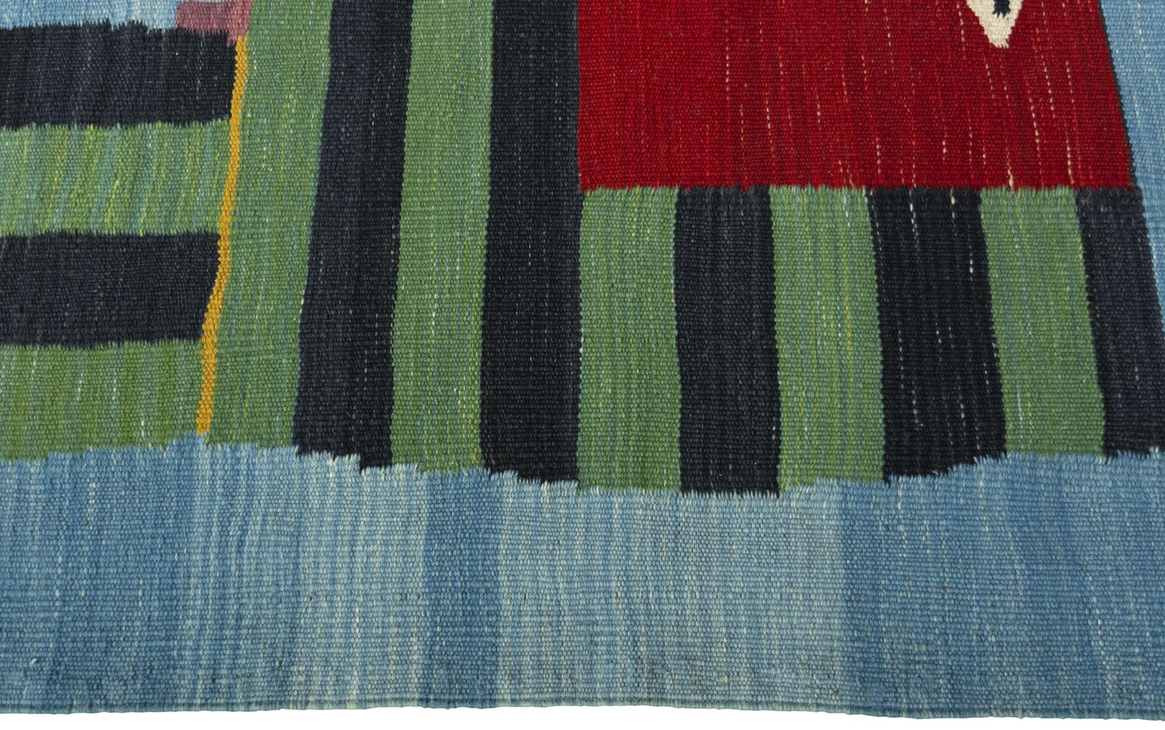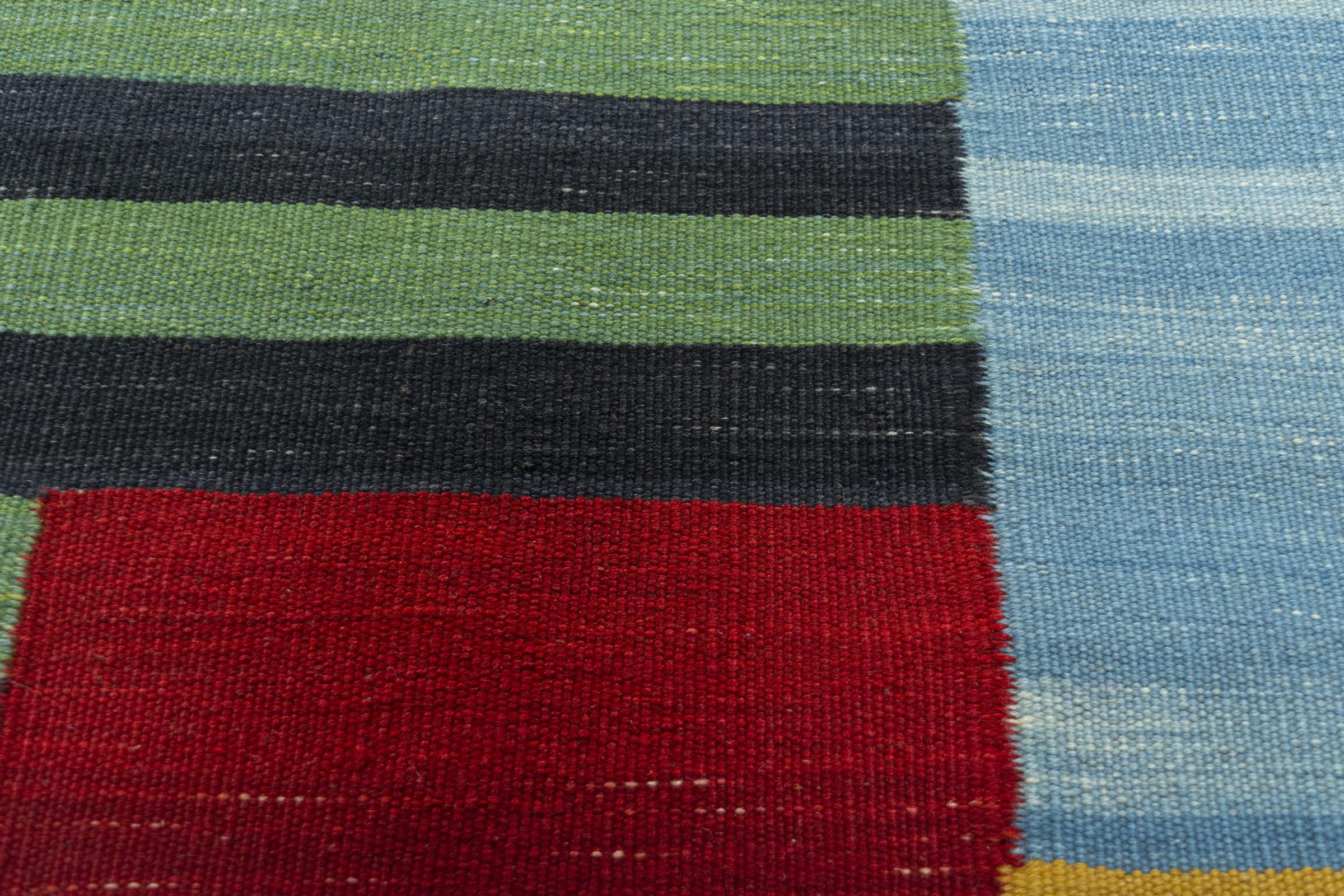 Cet Eylisian est un kilim au design tissé à plat, moderne et de très haute qualité. Sa laine naturelle filée à la main a été tissée à la main selon un design contemporain en utilisant la technique persane traditionnelle. Sa qualité robuste et durable en fait un accroche-regard populaire, contemporain et intemporel dans votre maison.