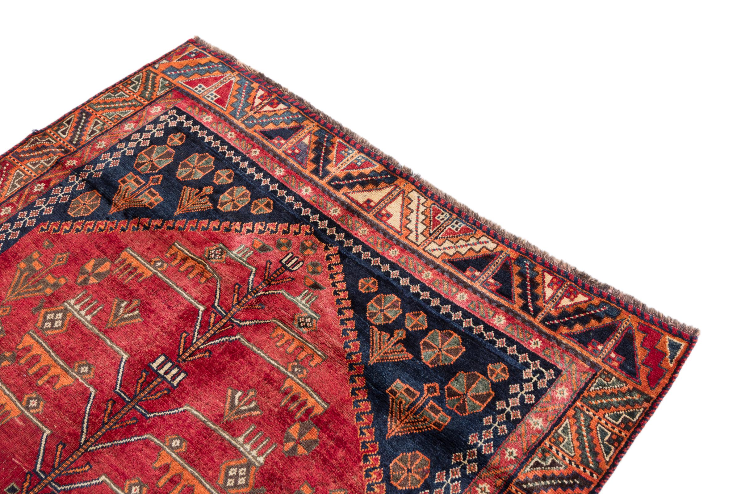 Ce tapis Qashqai attire immédiatement l’attention. Ces couleurs et motifs reflètent la vie des nomades Qashqai d’Iran, qui vivent près de la ville de Shiraz. Laissez une pièce de la culture Iranienne entrer chez vous.