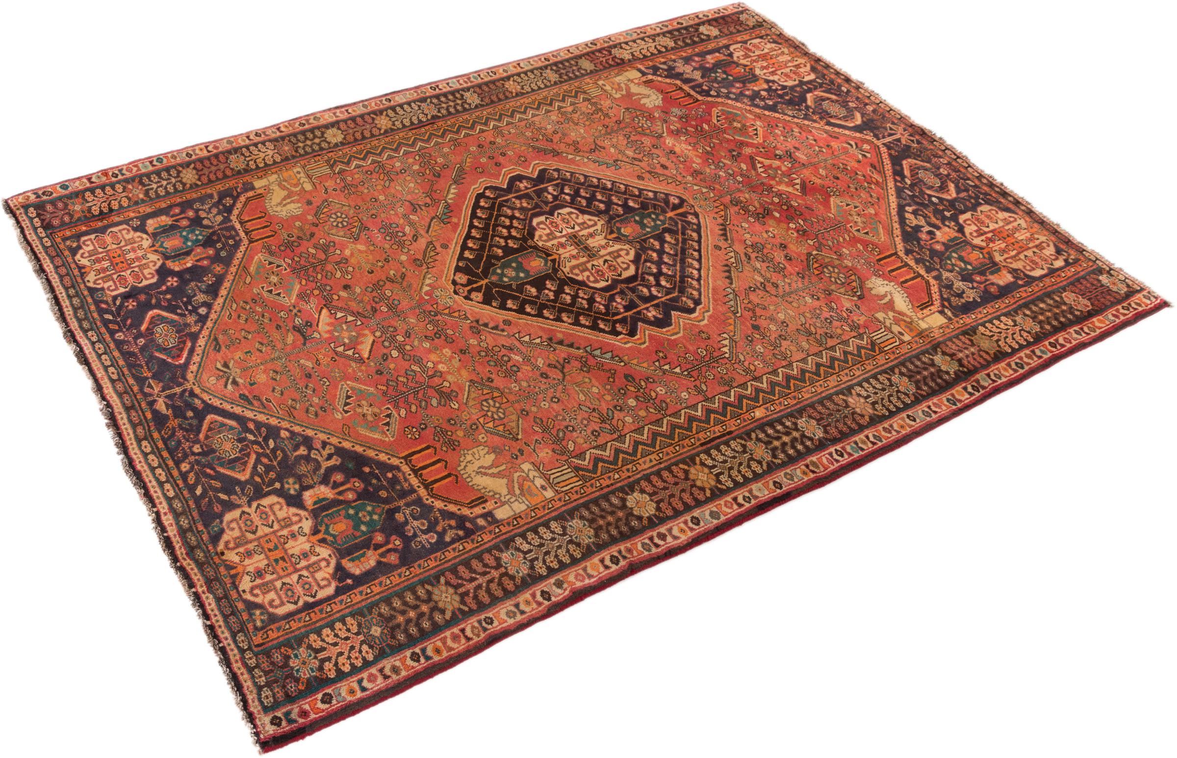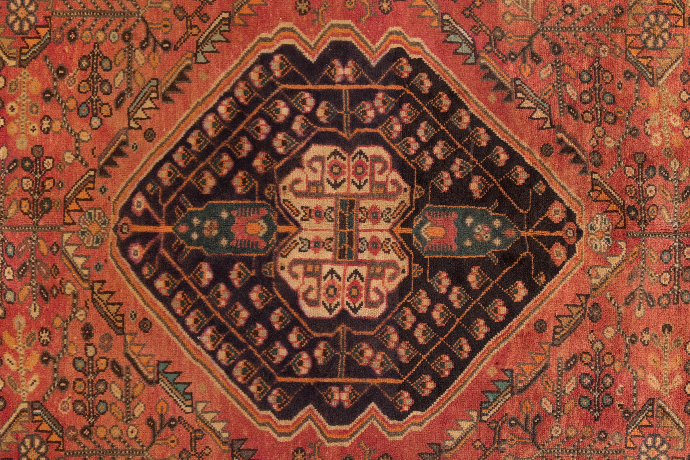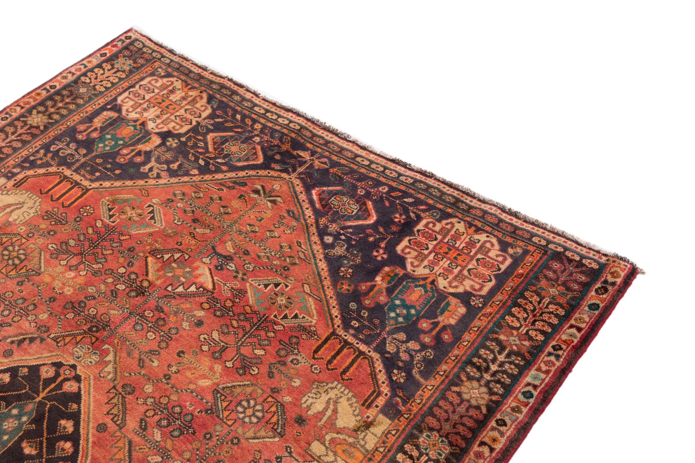 Ce tapis Qashqai attire immédiatement l’attention. Ces couleurs et motifs reflètent la vie des nomades Qashqai d’Iran, qui vivent près de la ville de Shiraz. Laissez une pièce de la culture Iranienne entrer chez vous.