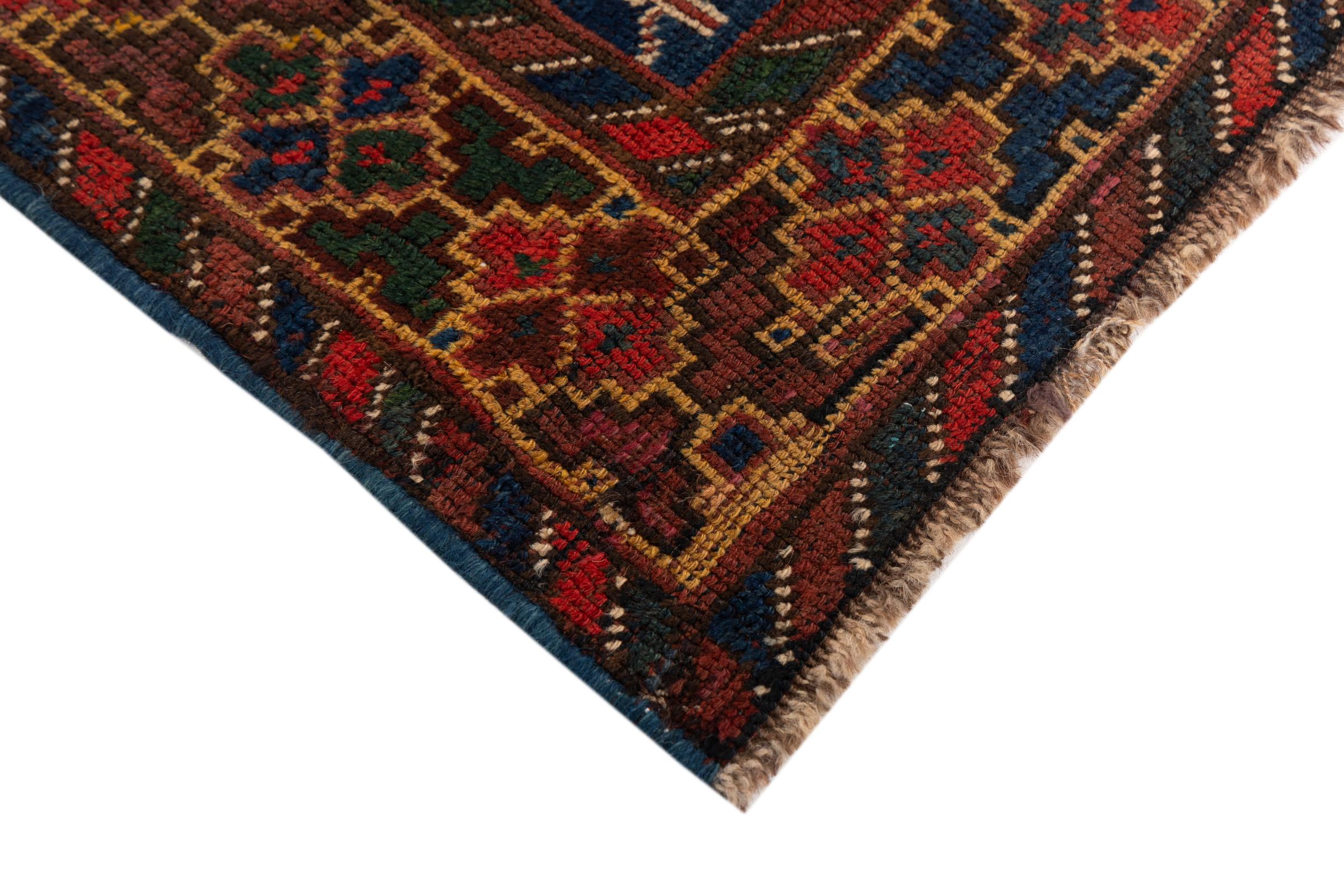 Ce tapis appartient aux tapis de village et de nomade d'Iran, anciennement la Perse. Ce type de tapis est noué à la main dans les petites villes et les villages selon l'ancienne tradition. Même les nomades nouent encore des tapis persans en plein air. Les tapis sont noués sans schéma et entièrement à partir de la tête. Ils se caractérisent par des ornements classiques, qui sont disposés en motifs droits et géométriques. Grâce à leur origine culturelle et traditionnelle, ces tapis ont un caractère unique qui incarne la Perse ancienne.