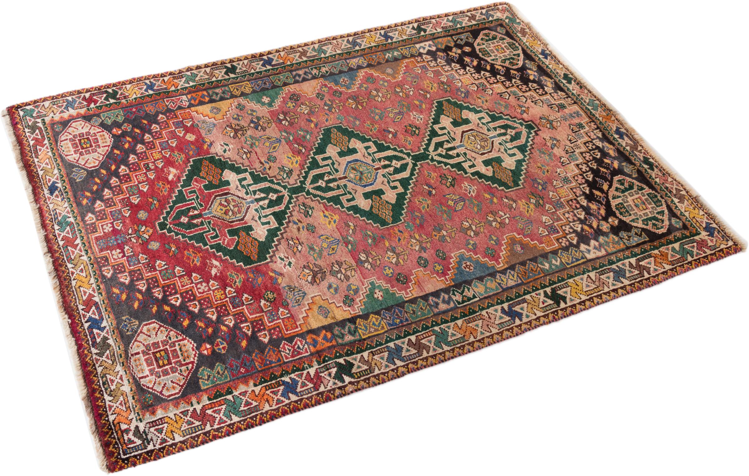 Ce tapis appartient aux tapis de village et de nomade d'Iran, anciennement la Perse. Ce type de tapis est noué à la main dans les petites villes et les villages selon l'ancienne tradition. Même les nomades nouent encore des tapis persans en plein air. Les tapis sont noués sans schéma et entièrement à partir de la tête. Ils se caractérisent par des ornements classiques, qui sont disposés en motifs droits et géométriques. Grâce à leur origine culturelle et traditionnelle, ces tapis ont un caractère unique qui incarne la Perse ancienne.