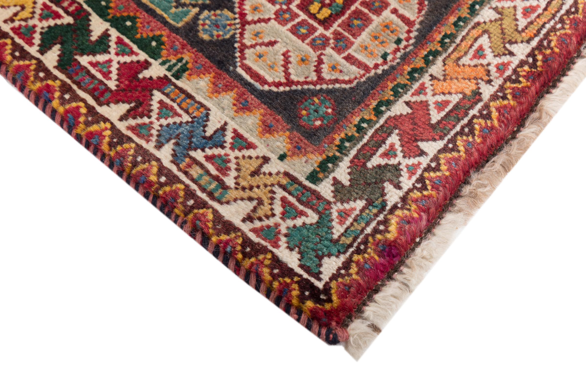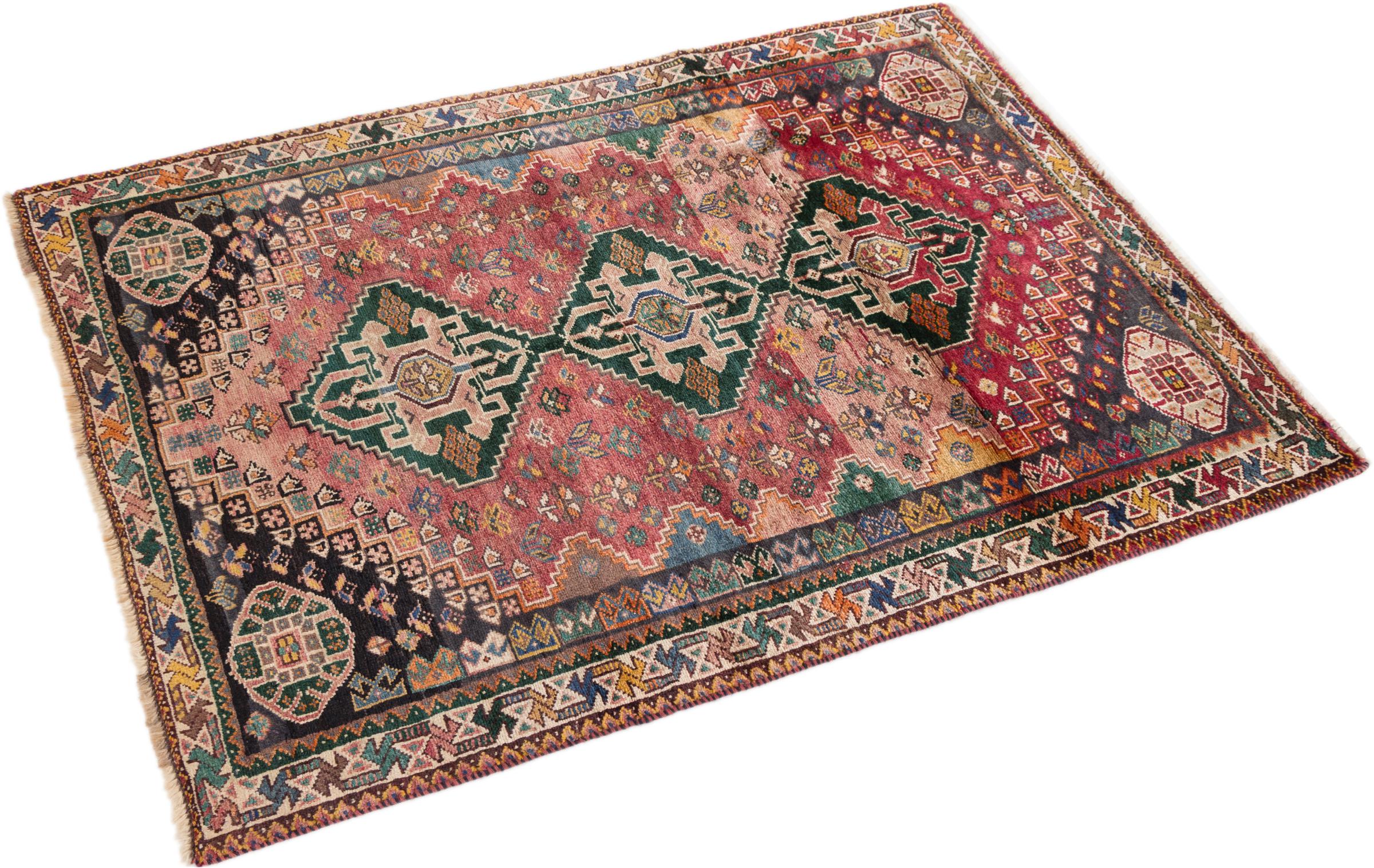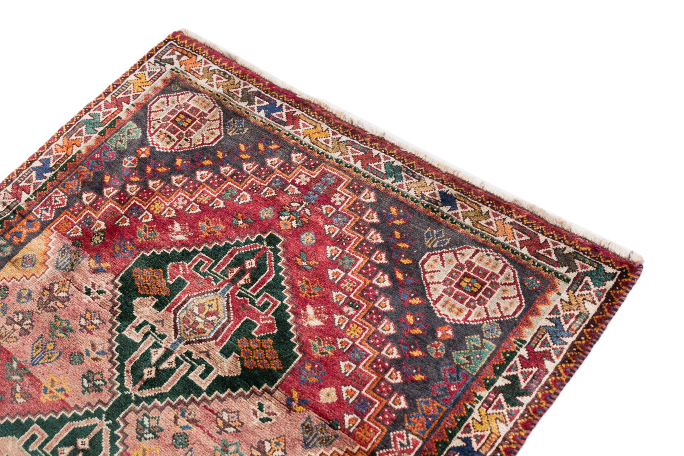 Ce tapis Qashqai attire immédiatement l’attention. Ces couleurs et motifs reflètent la vie des nomades Qashqai d’Iran, qui vivent près de la ville de Shiraz. Laissez une pièce de la culture Iranienne entrer chez vous.