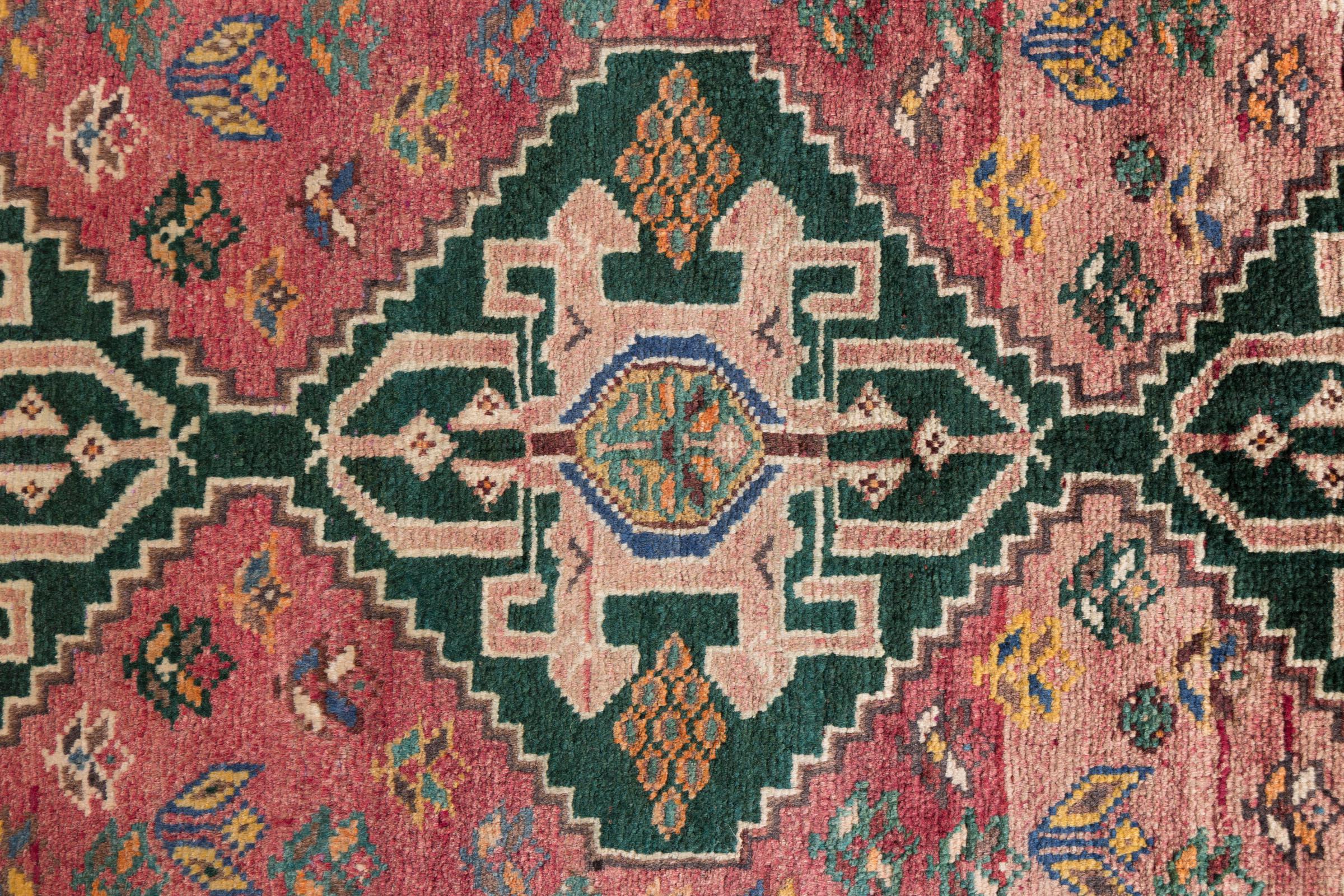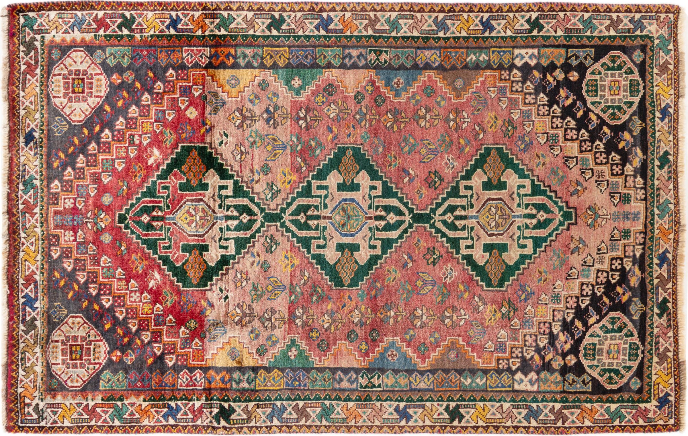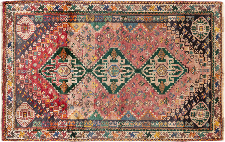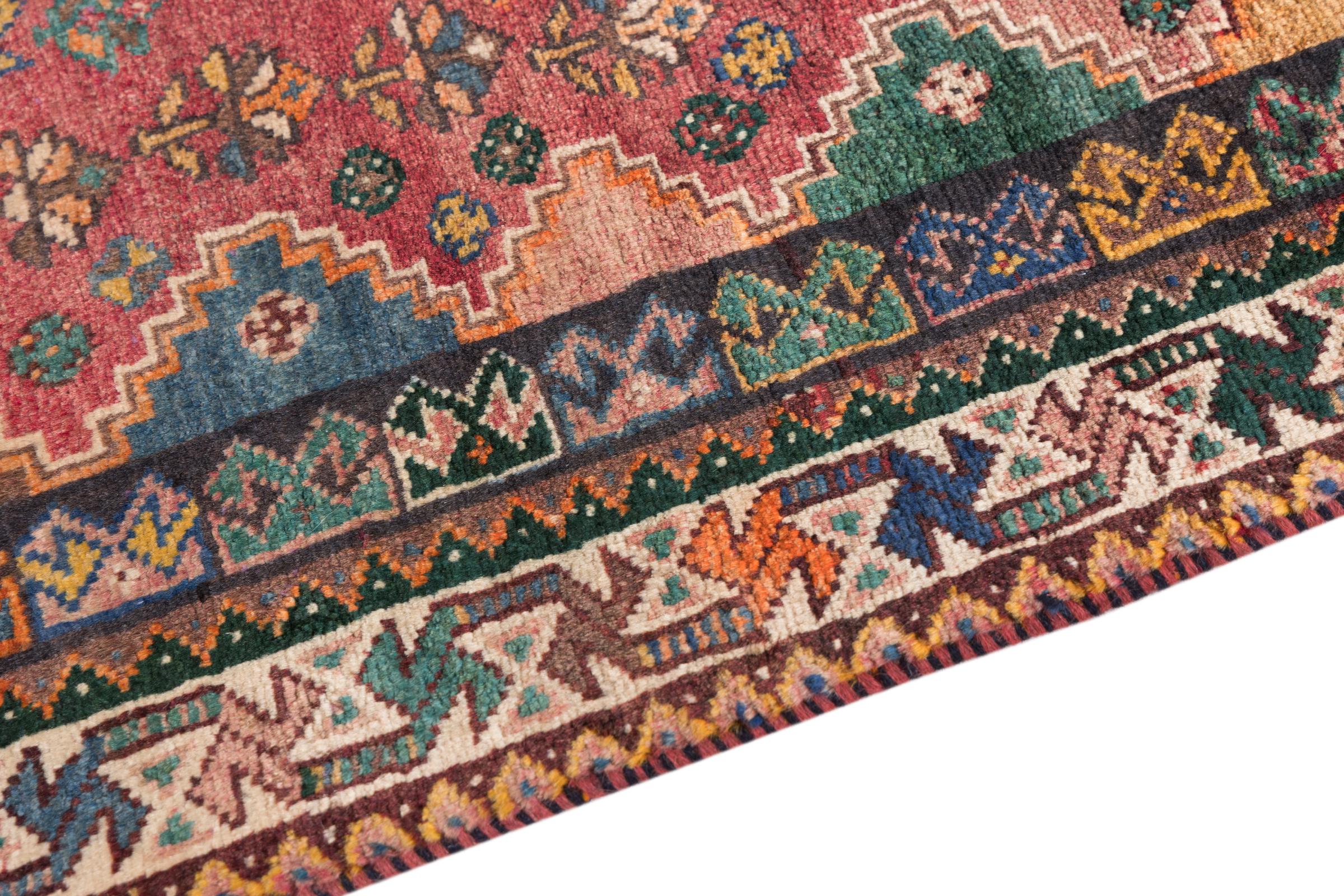 Ce tapis Qashqai attire immédiatement l’attention. Ces couleurs et motifs reflètent la vie des nomades Qashqai d’Iran, qui vivent près de la ville de Shiraz. Laissez une pièce de la culture Iranienne entrer chez vous.
