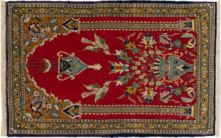 Réf. Article: 29702100608314 Taille: 123x81 cm Épaisseur: ap. 10 mm Densité de nouage: 360 000 - 400 000 / m² Fabrication: Noué à la main Velours: Laine de mouton Chaîne: Coton Origine: Persie / Iran Âge: 20-30 ans (Nouveau) Poids: ap. 3 kg Nombre en stock: Unique - Seulement 1 en stock