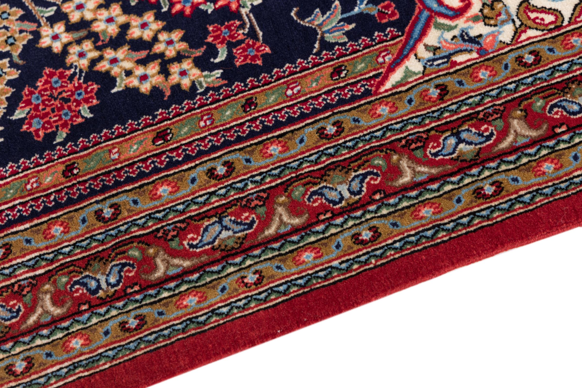 Ce tapis vient d'Iran (anciennement Perse) et, en tant que tapis persan, il jouit probablement de la plus haute réputation parmi tous les types de tapis noués à la main. Aucune autre région n'a une aussi longue tradition de nouage de tapis que l'Iran. C'est donc ici que viennent les tapis probablement les plus fins et les plus élaborés. La robustesse, la durabilité et la qualité du nœud persan sont encore inégalées aujourd'hui. Les tapis persans sont généralement nommés d'après leur région d'origine. Ainsi, un tapis Nain, un Ghom ainsi qu'un tapis d'Ispahan proviennent de la ville du même nom en Iran.