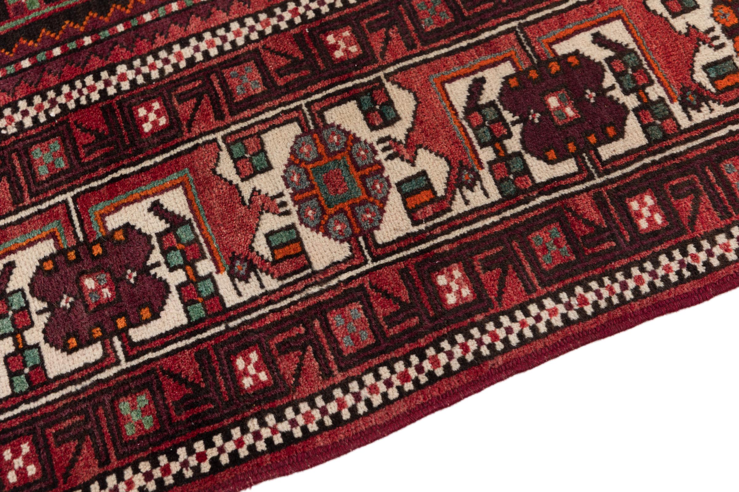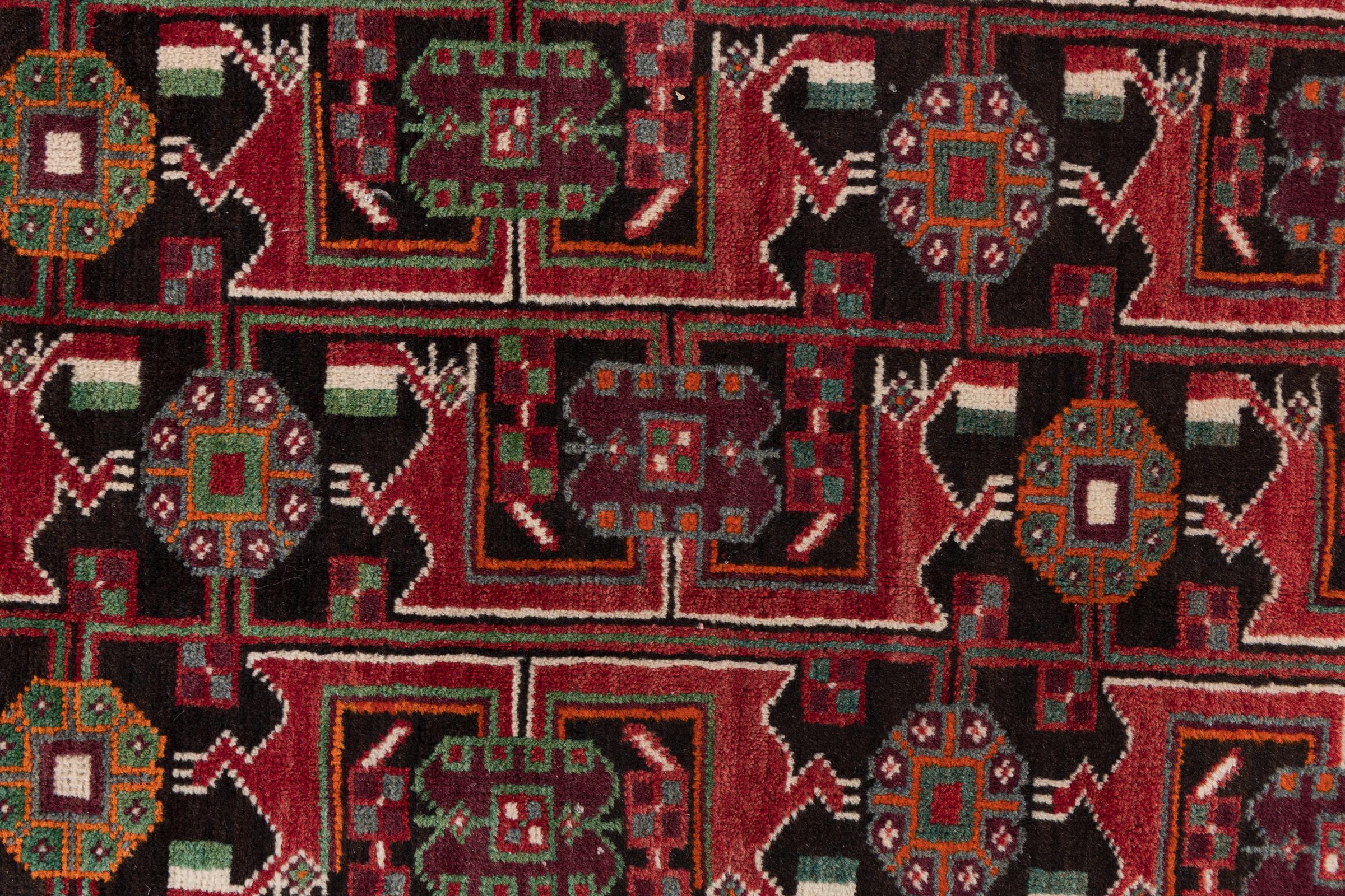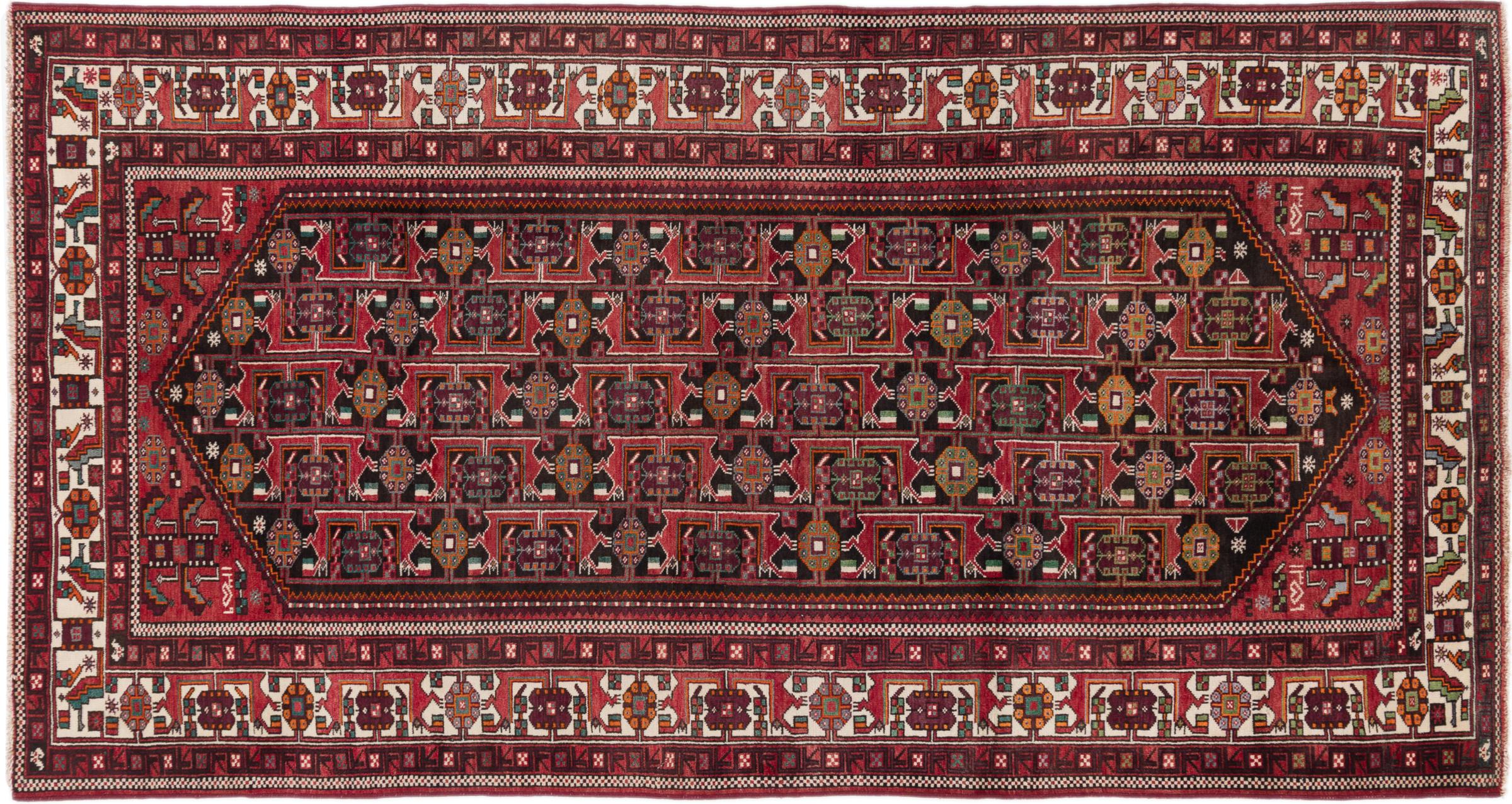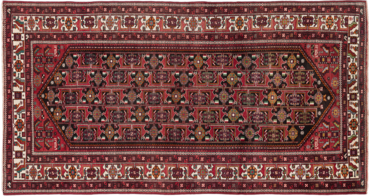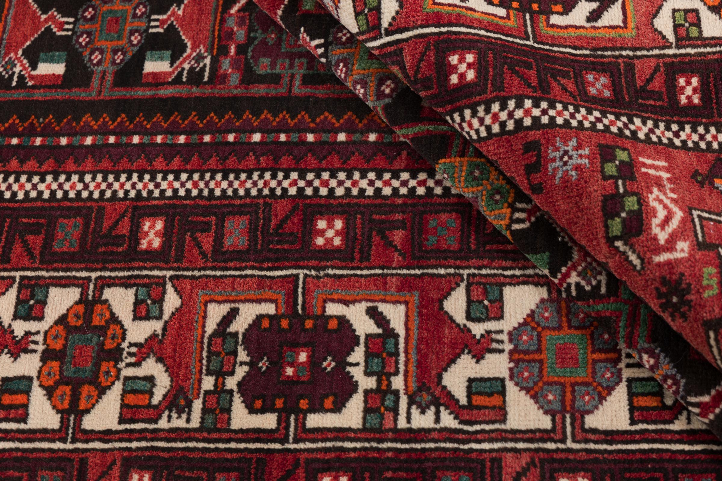 Ce tapis appartient aux tapis de village et de nomade d'Iran, anciennement la Perse. Ce type de tapis est noué à la main dans les petites villes et les villages selon l'ancienne tradition. Même les nomades nouent encore des tapis persans en plein air. Les tapis sont noués sans schéma et entièrement à partir de la tête. Ils se caractérisent par des ornements classiques, qui sont disposés en motifs droits et géométriques. Grâce à leur origine culturelle et traditionnelle, ces tapis ont un caractère unique qui incarne la Perse ancienne.