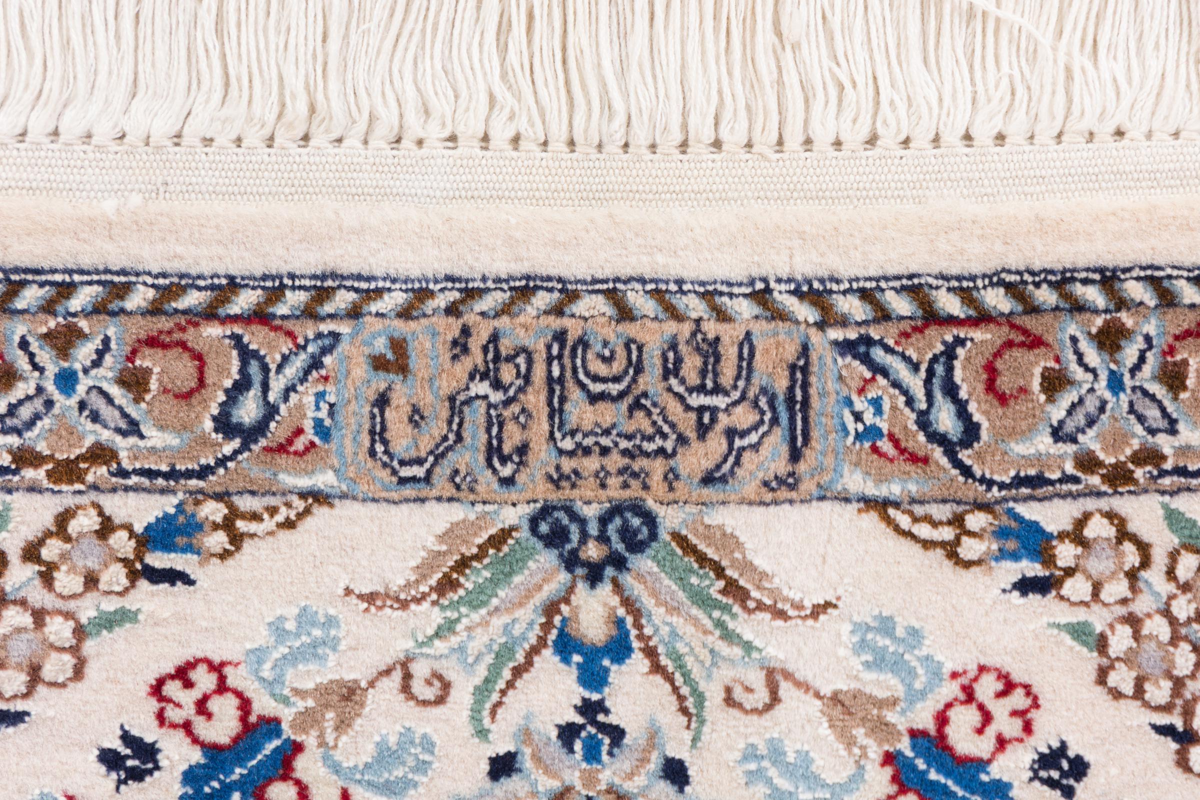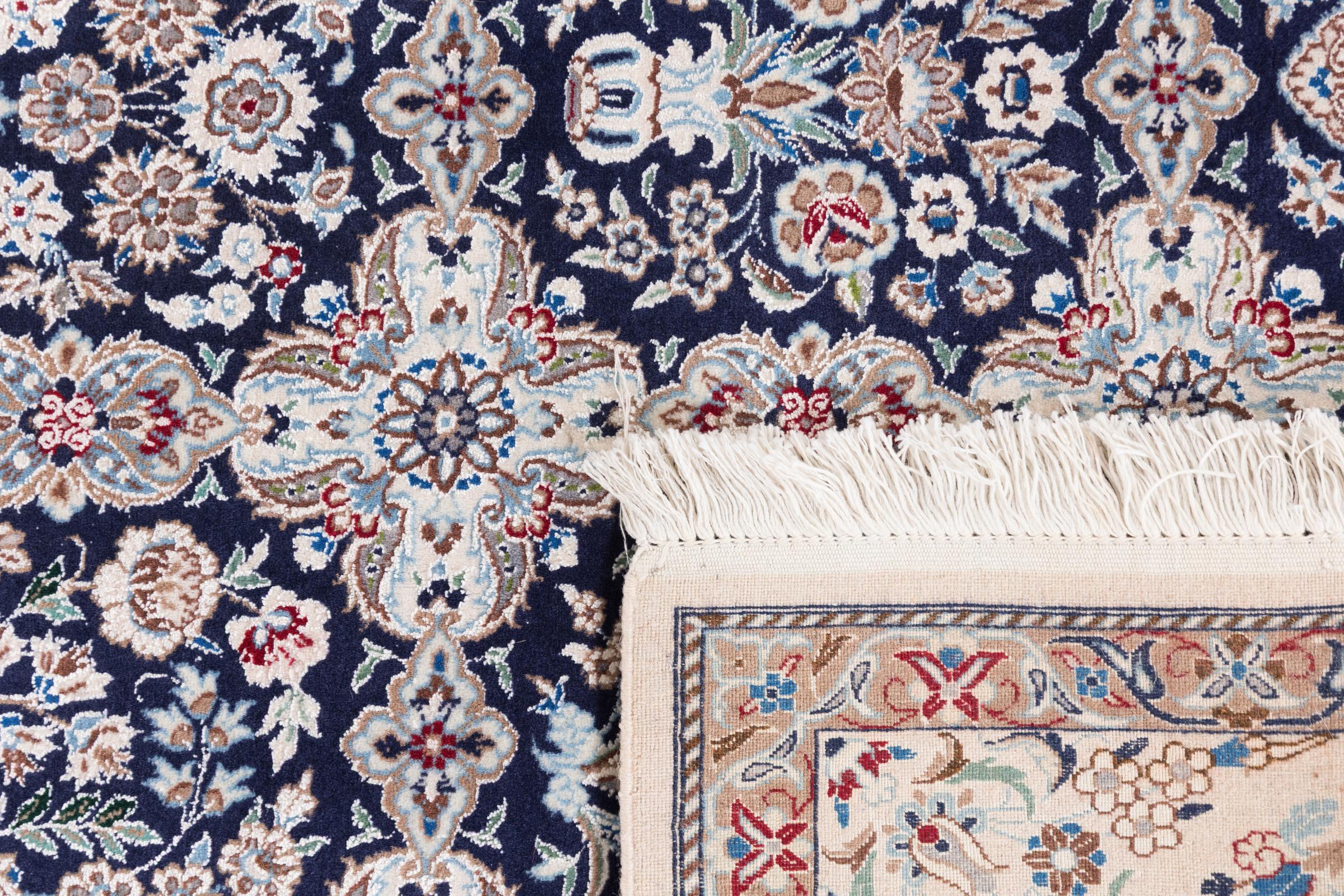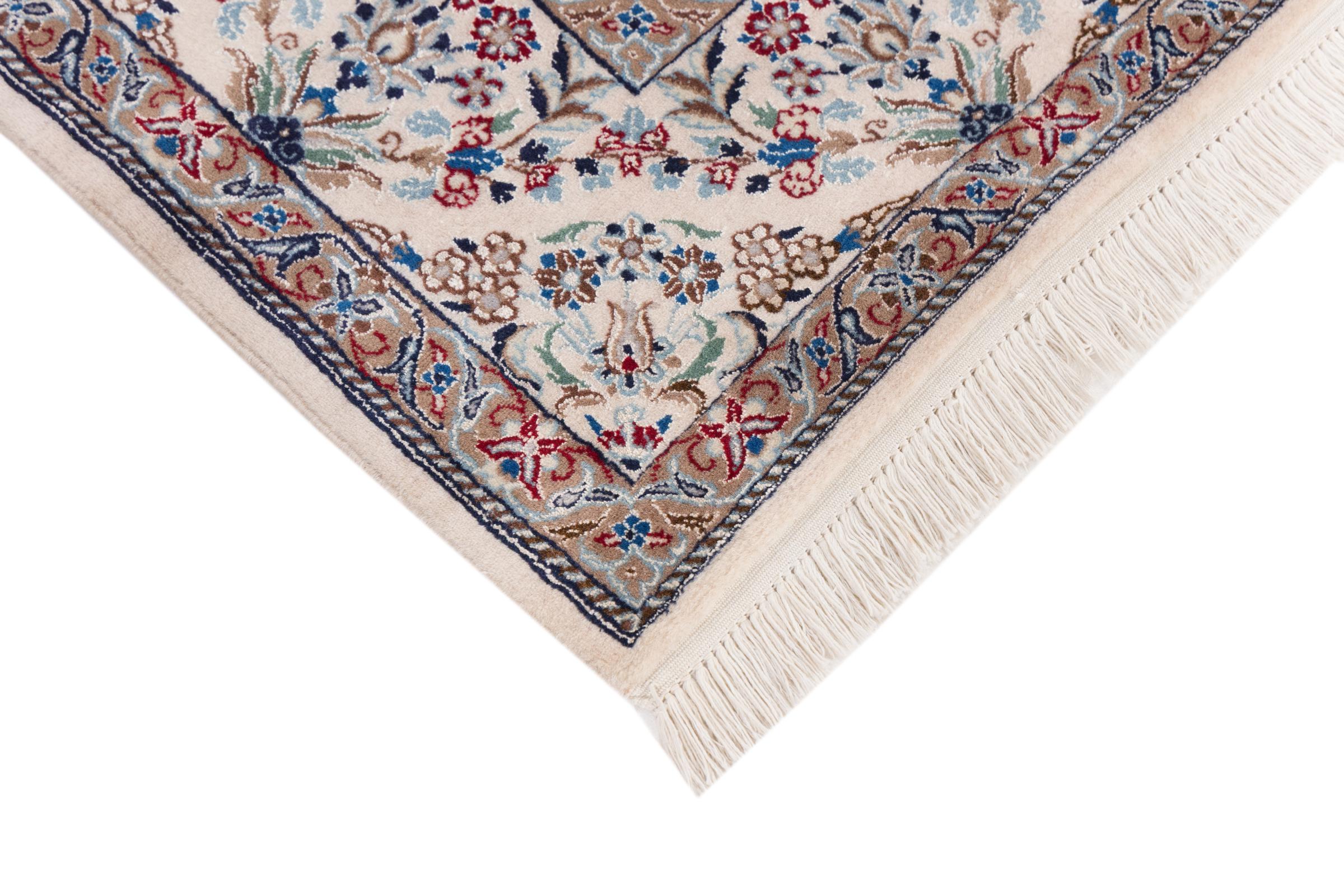 Les tapis de la ville de Nain, à la frontière de l'un des plus grands déserts d'Iran, comptent parmi les plus célèbres tapis persans du monde. Leur design typique est sans équivoque avec des ornements floraux, un médaillon central et des nuances de beige et de rouge ou de bleu. Grâce à leurs désignations 4La, 6La, 9La et 12La, les finesses d'un tapis Nain peuvent être vues d'un seul coup d'œil. Plus le chiffre "La" est bas, plus la densité des nœuds est élevée et donc plus le tapis est fin.