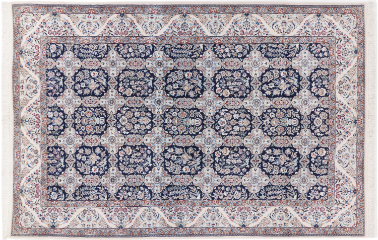 Réf. Article: 296524002124 Taille: 194x128 cm Épaisseur: ap. 6 mm Densité de nouage: 810 000 / m² Fabrication: Noué à la main Velours: Laine avec de la soie Chaîne: Coton Origine: Persie / Iran Âge: Nouveau Poids: ap. 6 kg Nombre en stock: Unique - Seulement 1 en stock
