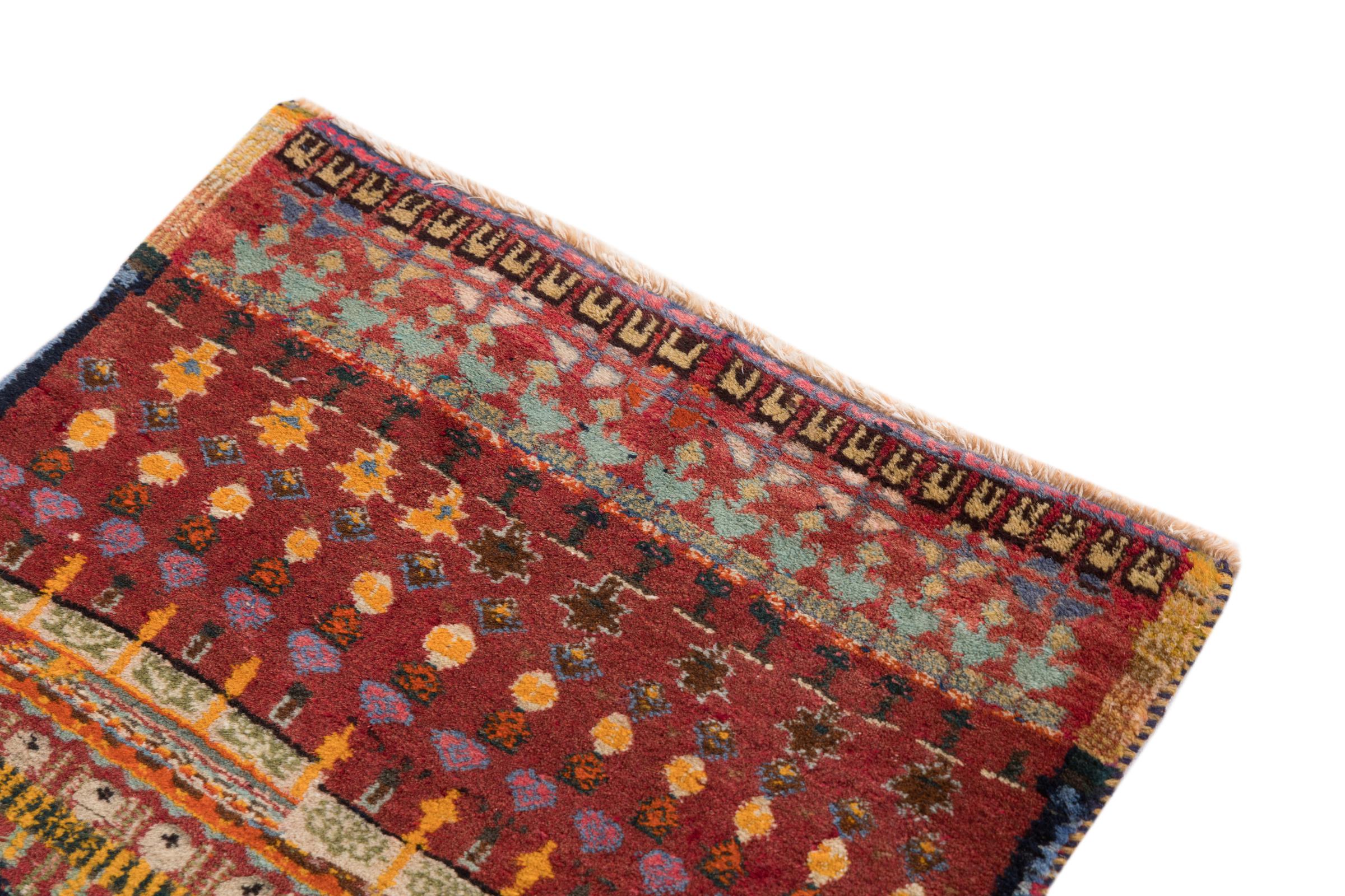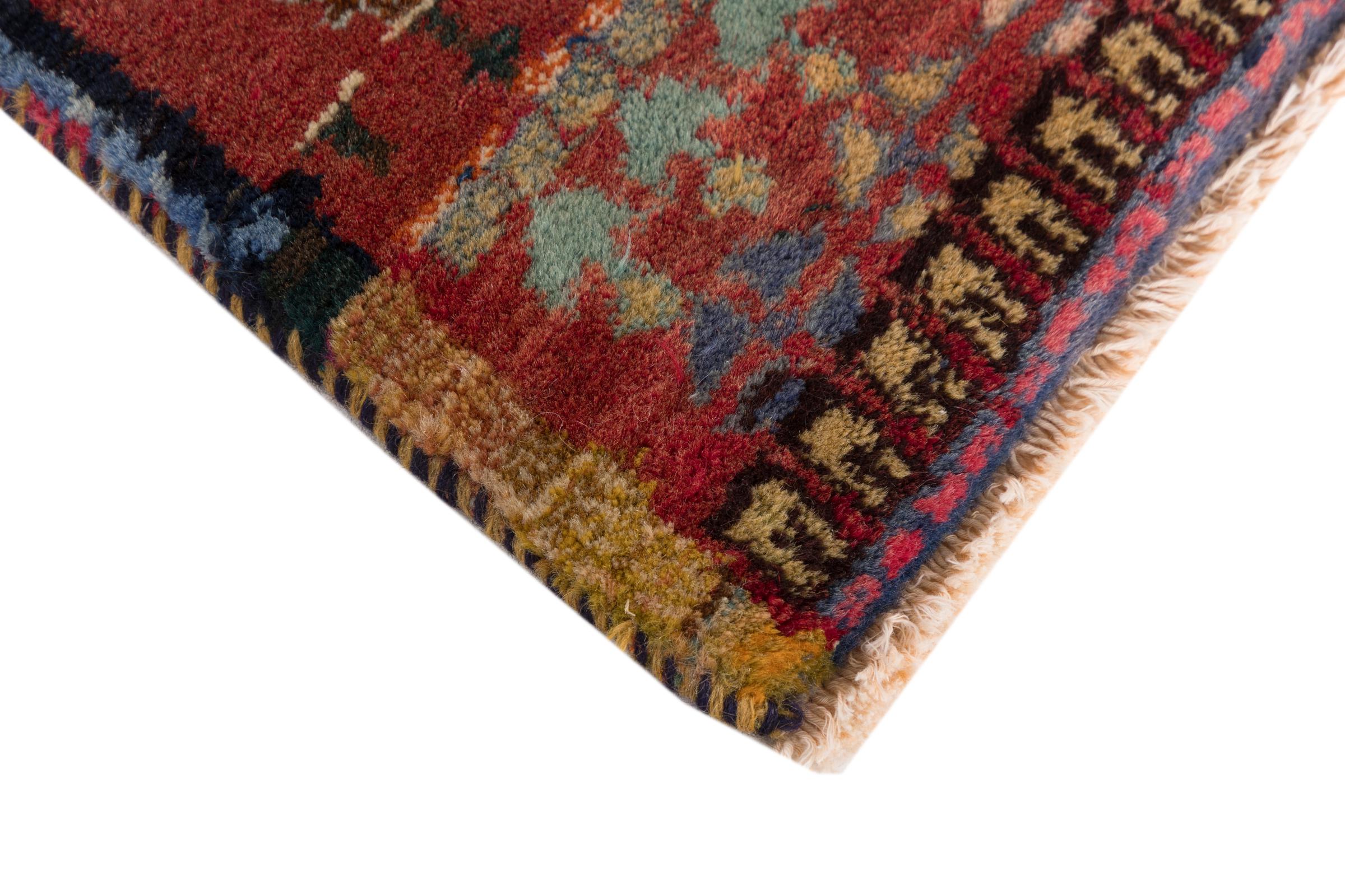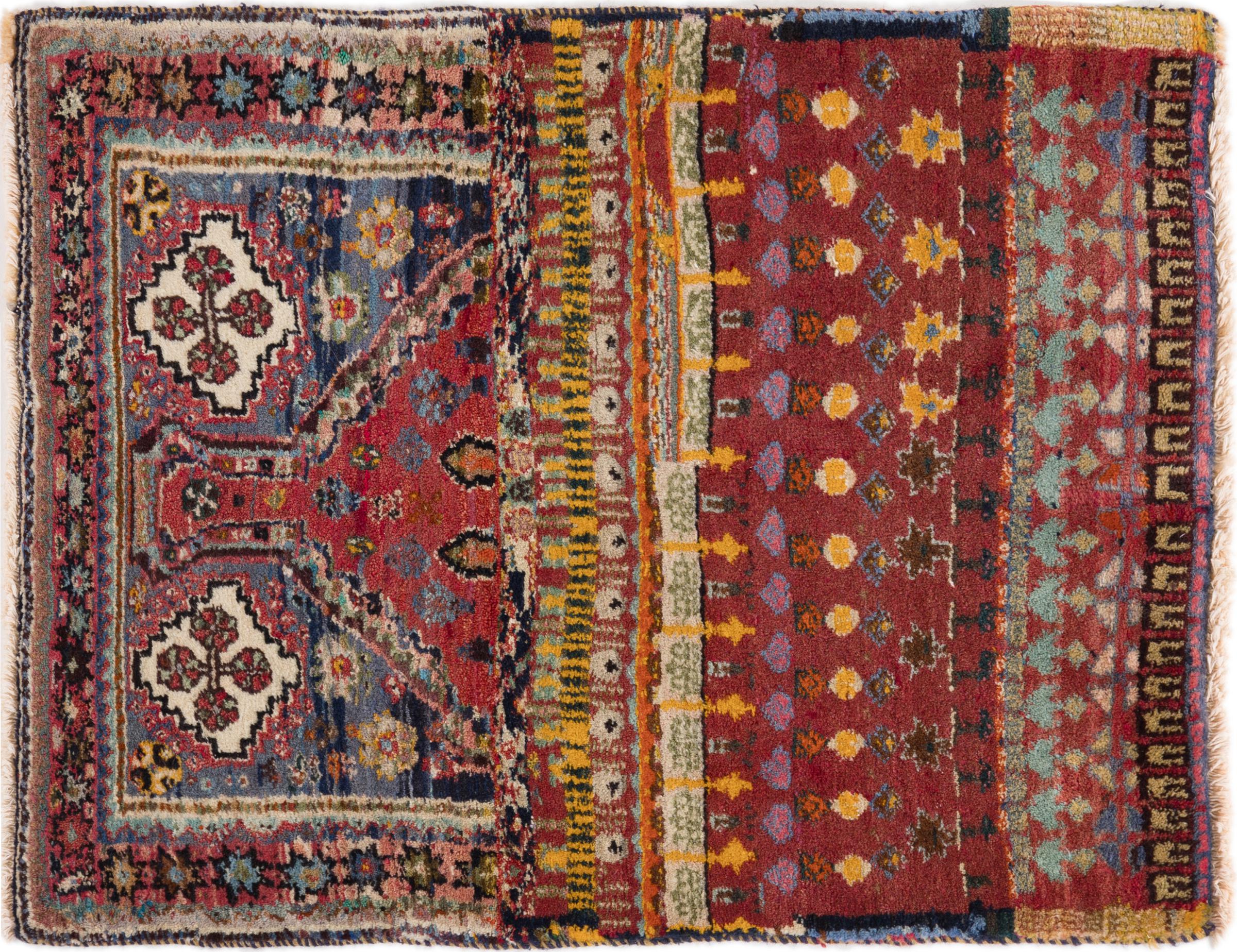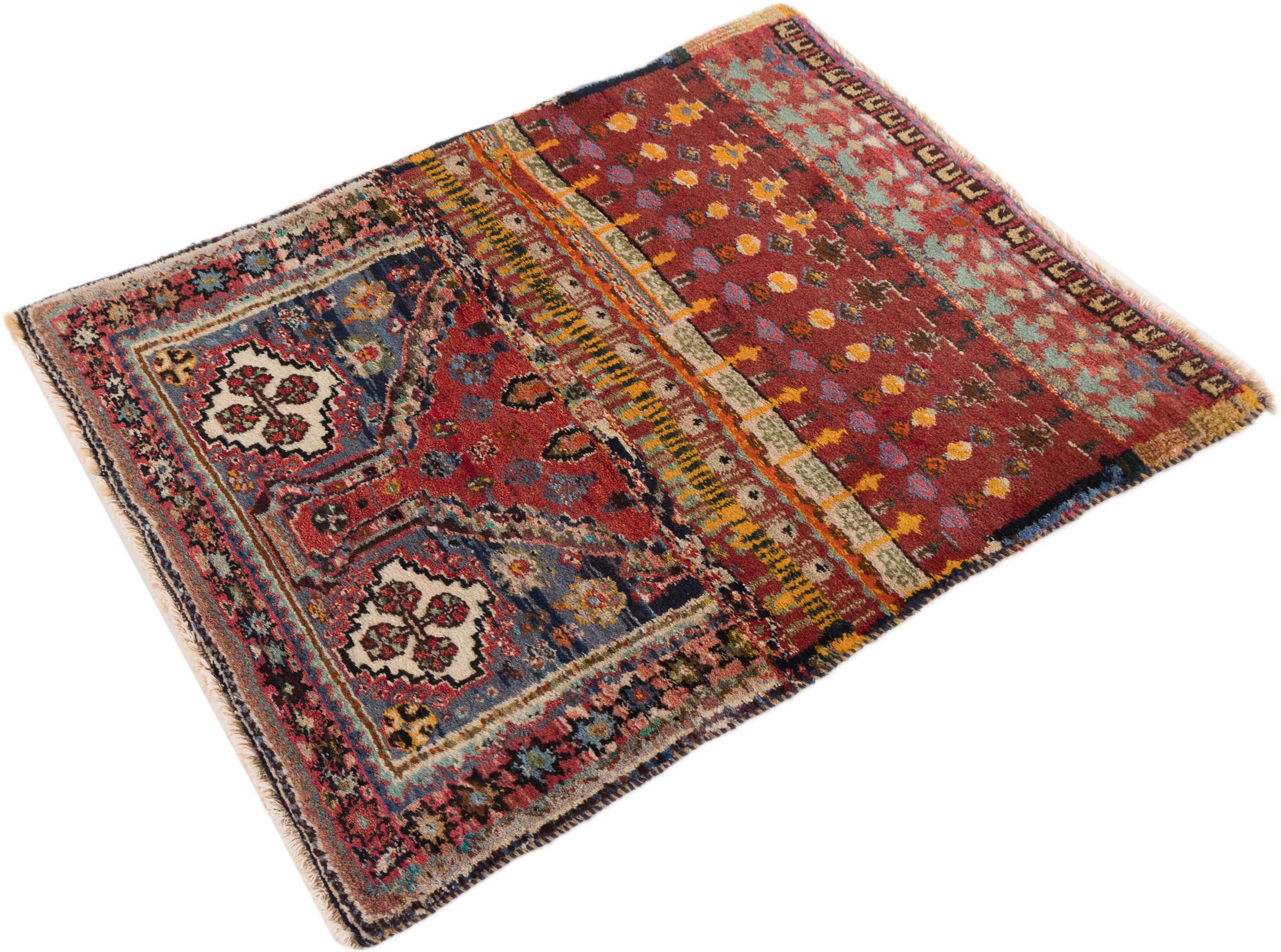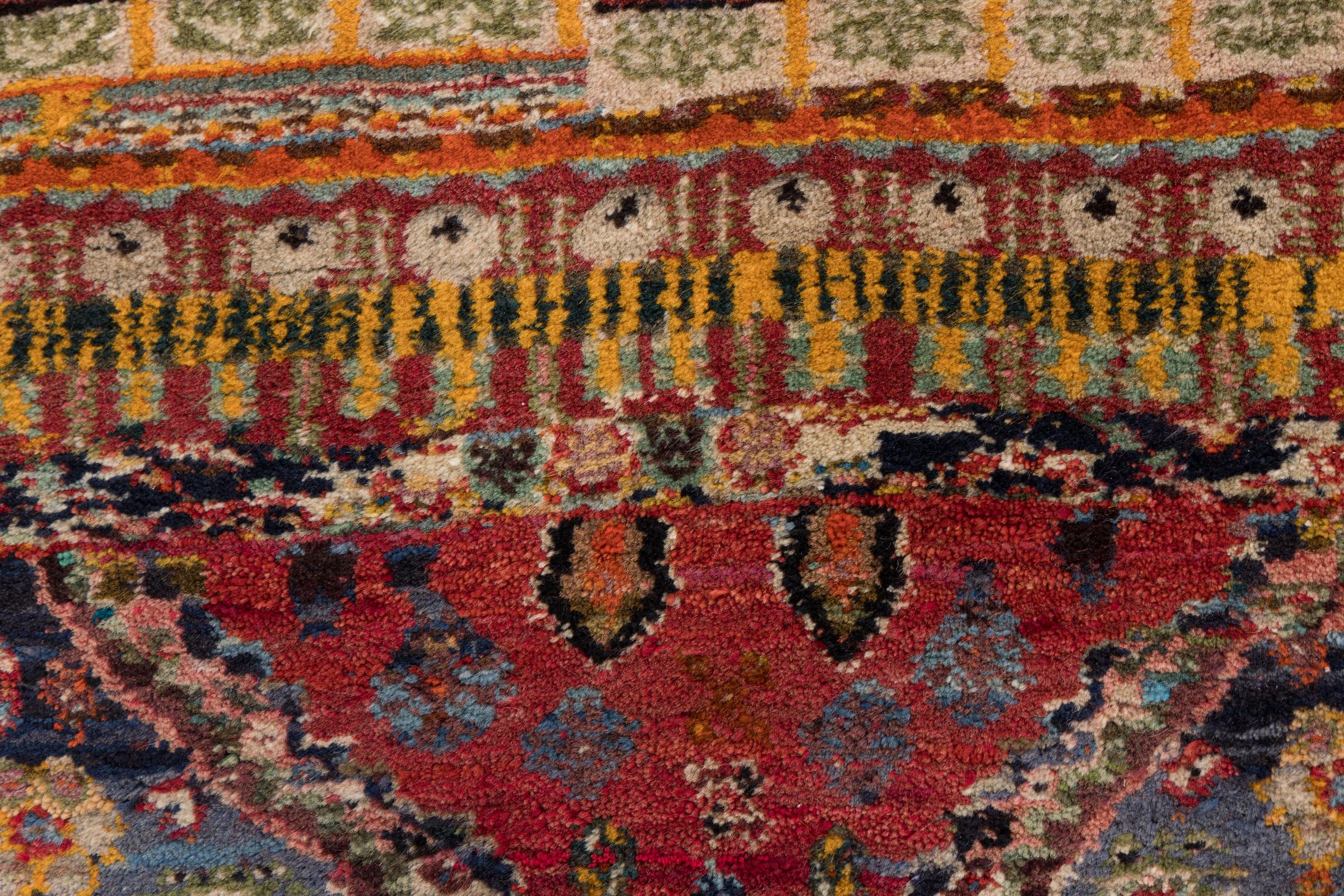 Ce tapis appartient aux tapis de village et de nomade d'Iran, anciennement la Perse. Ce type de tapis est noué à la main dans les petites villes et les villages selon l'ancienne tradition. Même les nomades nouent encore des tapis persans en plein air. Les tapis sont noués sans schéma et entièrement à partir de la tête. Ils se caractérisent par des ornements classiques, qui sont disposés en motifs droits et géométriques. Grâce à leur origine culturelle et traditionnelle, ces tapis ont un caractère unique qui incarne la Perse ancienne.