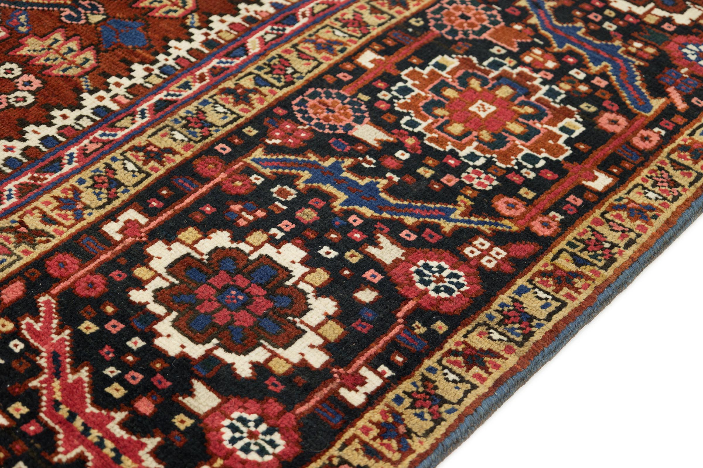Ce tapis appartient aux tapis de village et de nomade d'Iran, anciennement la Perse. Ce type de tapis est noué à la main dans les petites villes et les villages selon l'ancienne tradition. Même les nomades nouent encore des tapis persans en plein air. Les tapis sont noués sans schéma et entièrement à partir de la tête. Ils se caractérisent par des ornements classiques, qui sont disposés en motifs droits et géométriques. Grâce à leur origine culturelle et traditionnelle, ces tapis ont un caractère unique qui incarne la Perse ancienne.