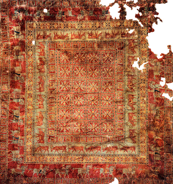 Le Pazyryk est le tapis le plus ancien trouvé jusqu'à aujourd'hui. Il a été découvert en 1949 dans une tombe dans les montagnes de l'Altaï et est vieux de 2500ans.