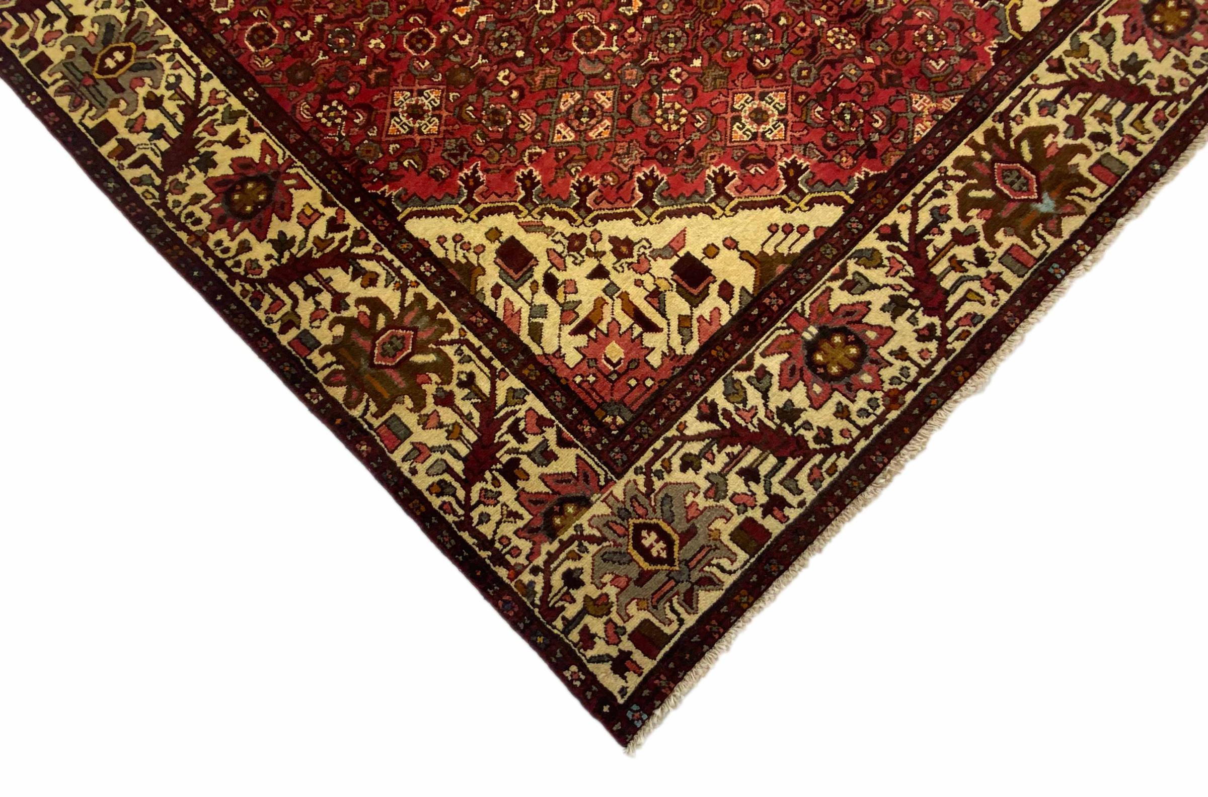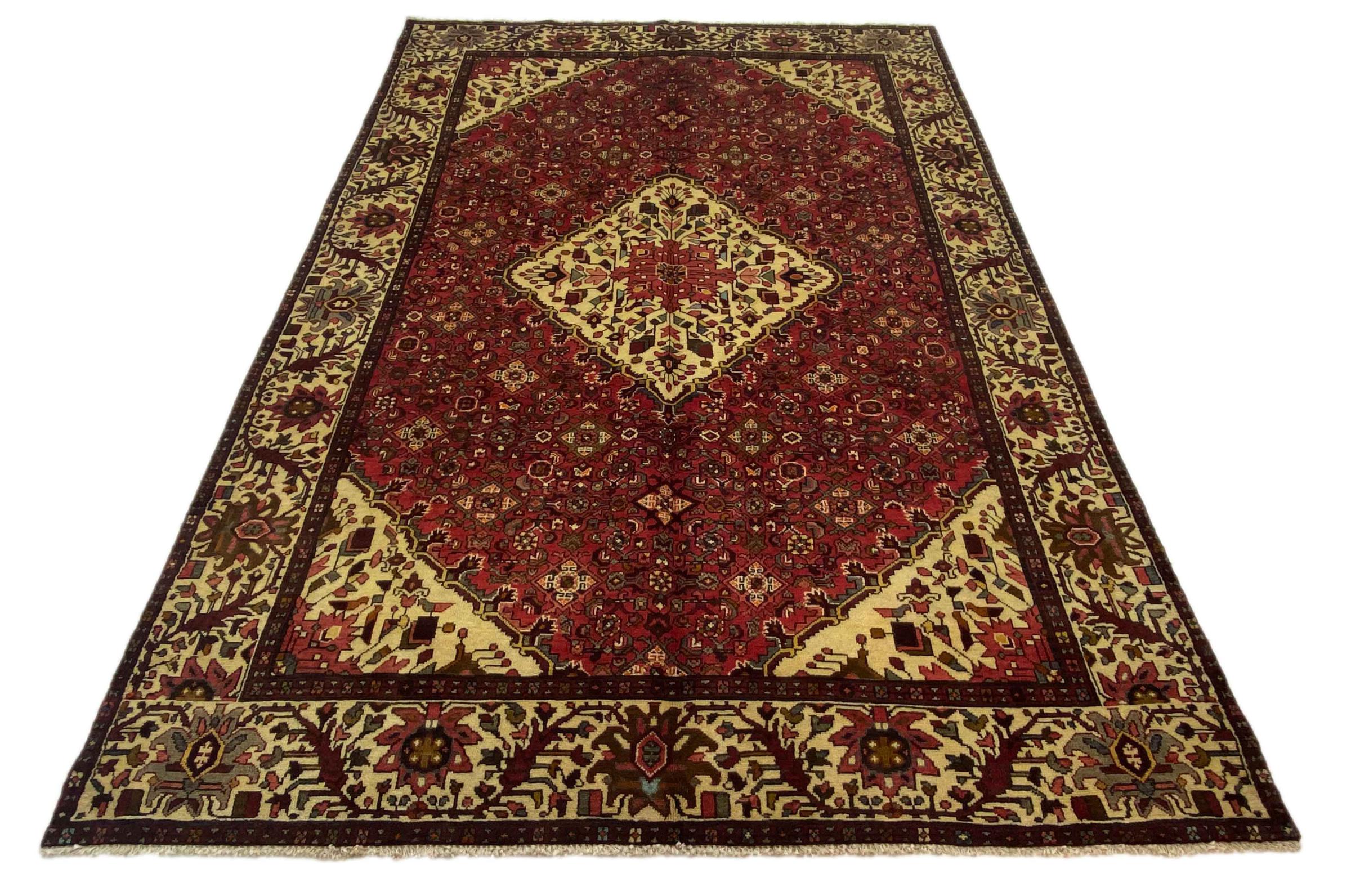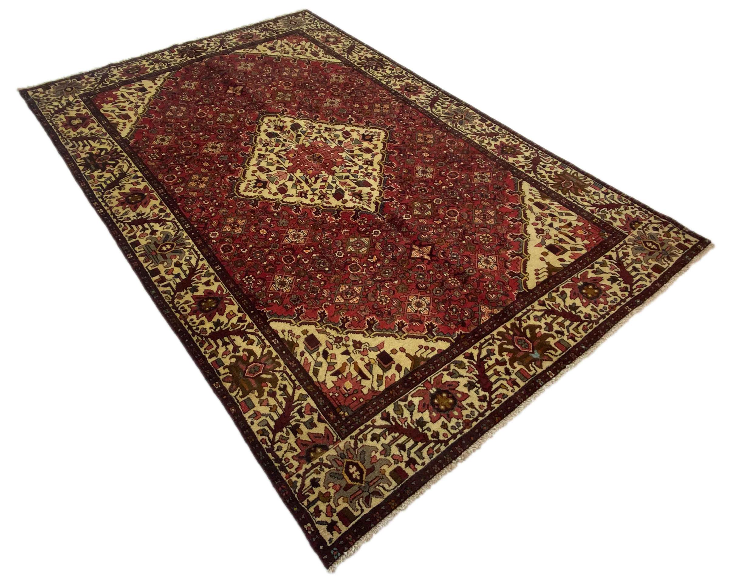 Ce tapis appartient aux tapis de village et de nomade d'Iran, anciennement la Perse. Ce type de tapis est noué à la main dans les petites villes et les villages selon l'ancienne tradition. Même les nomades nouent encore des tapis persans en plein air. Les tapis sont noués sans schéma et entièrement à partir de la tête. Ils se caractérisent par des ornements classiques, qui sont disposés en motifs droits et géométriques. Grâce à leur origine culturelle et traditionnelle, ces tapis ont un caractère unique qui incarne la Perse ancienne.