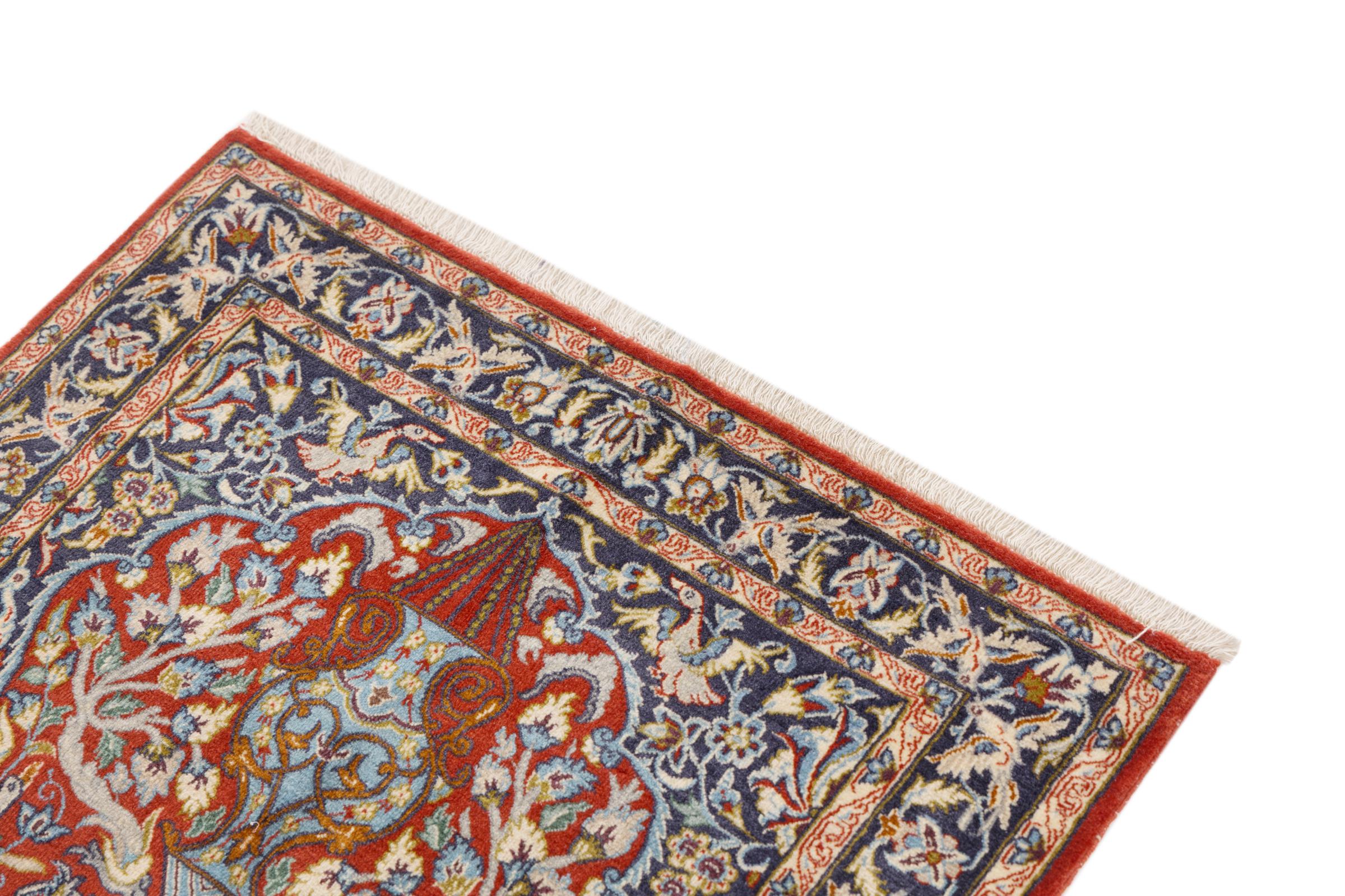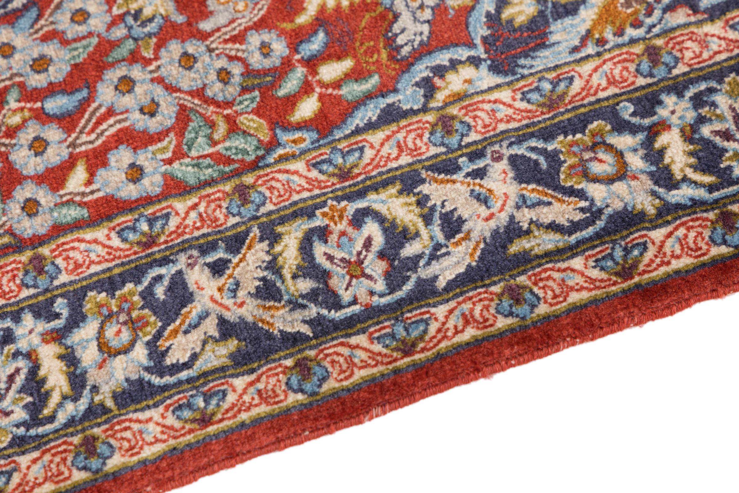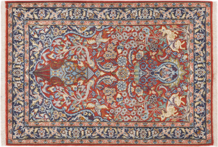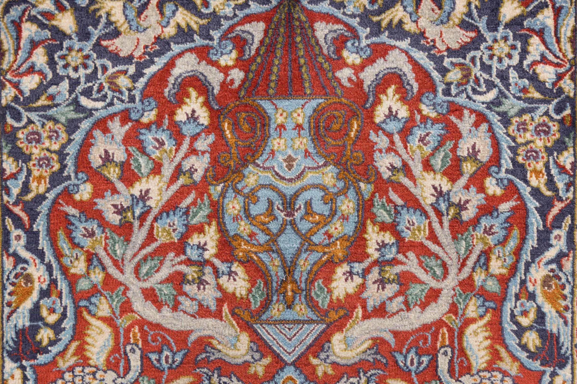 Ce tapis Isfahan est du pur art. Il est travaillé au maximum et décoré avec les plus beaux motifs qui existent. Ce tapis persan est fait à Isfahan, la plus belle ville d’Iran. Un tapis plus persan que lui est impossible à trouver.