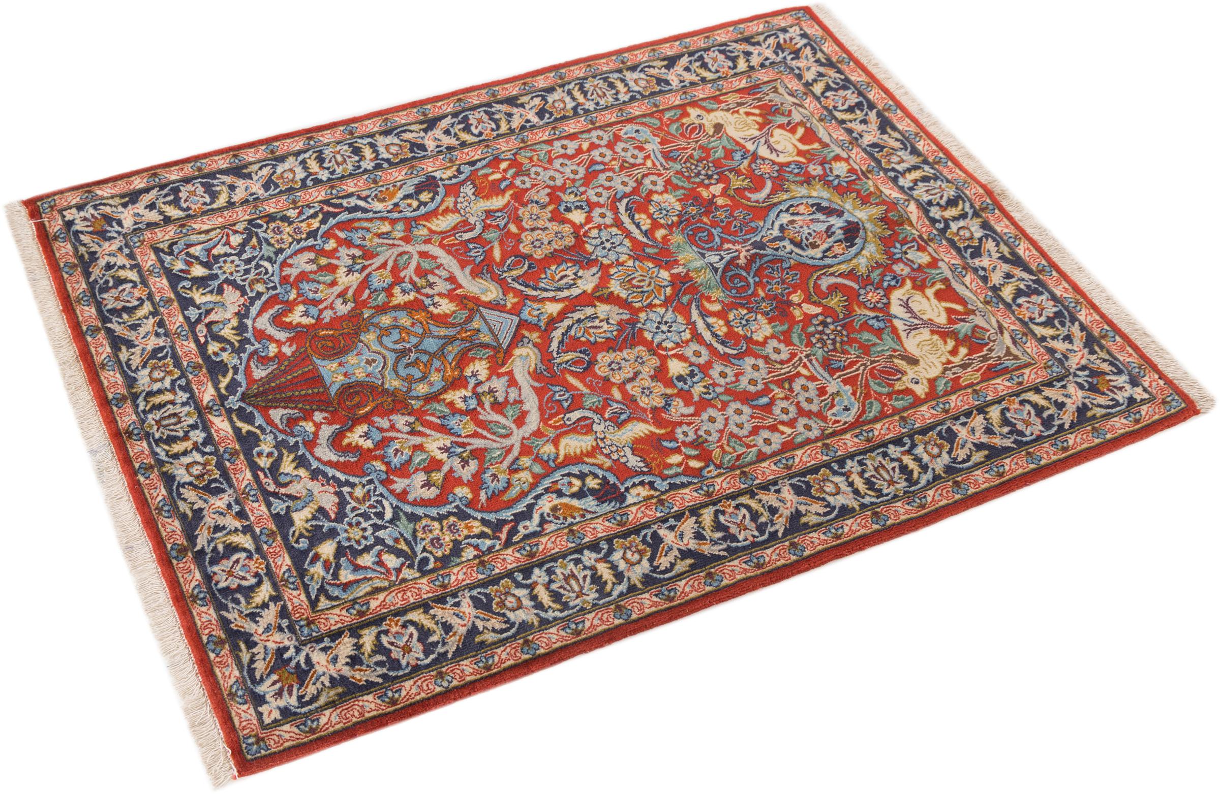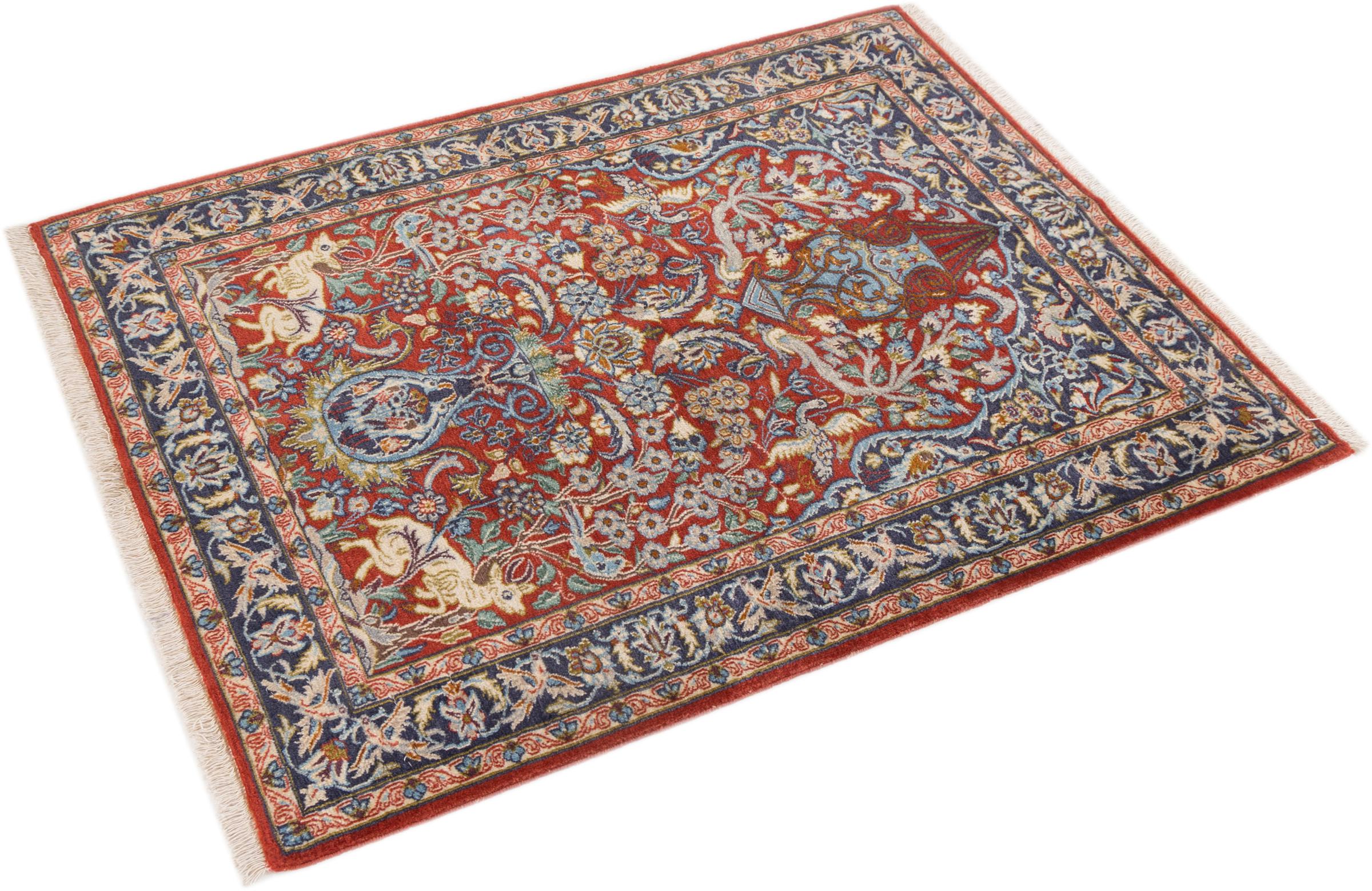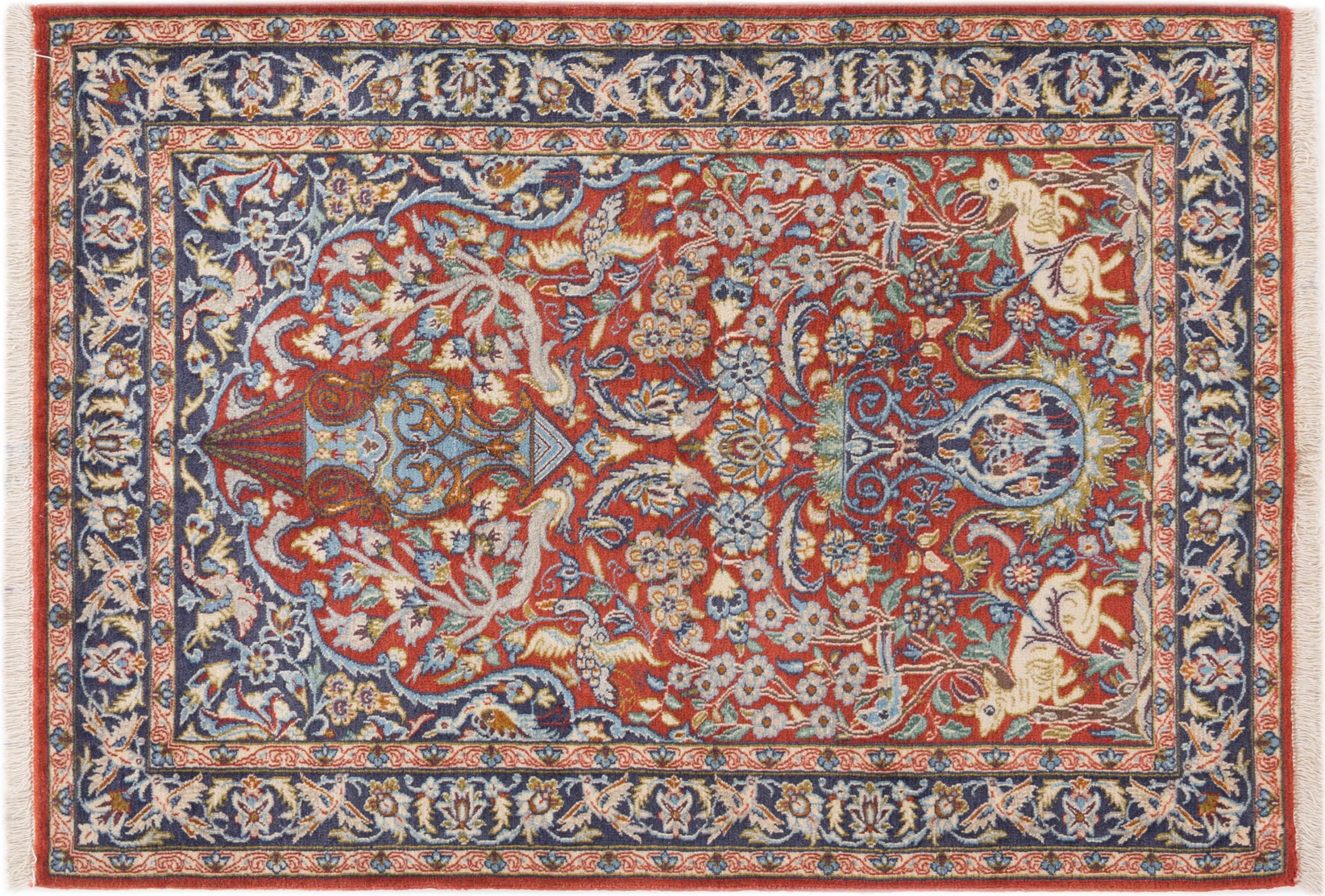 Ce tapis Isfahan est du pur art. Il est travaillé au maximum et décoré avec les plus beaux motifs qui existent. Ce tapis persan est fait à Isfahan, la plus belle ville d’Iran. Un tapis plus persan que lui est impossible à trouver.