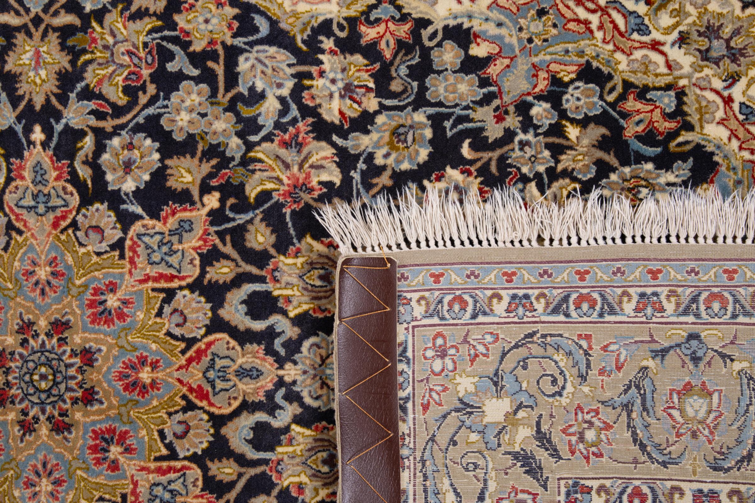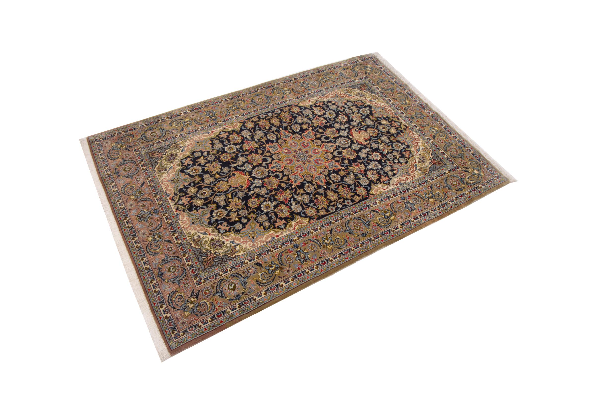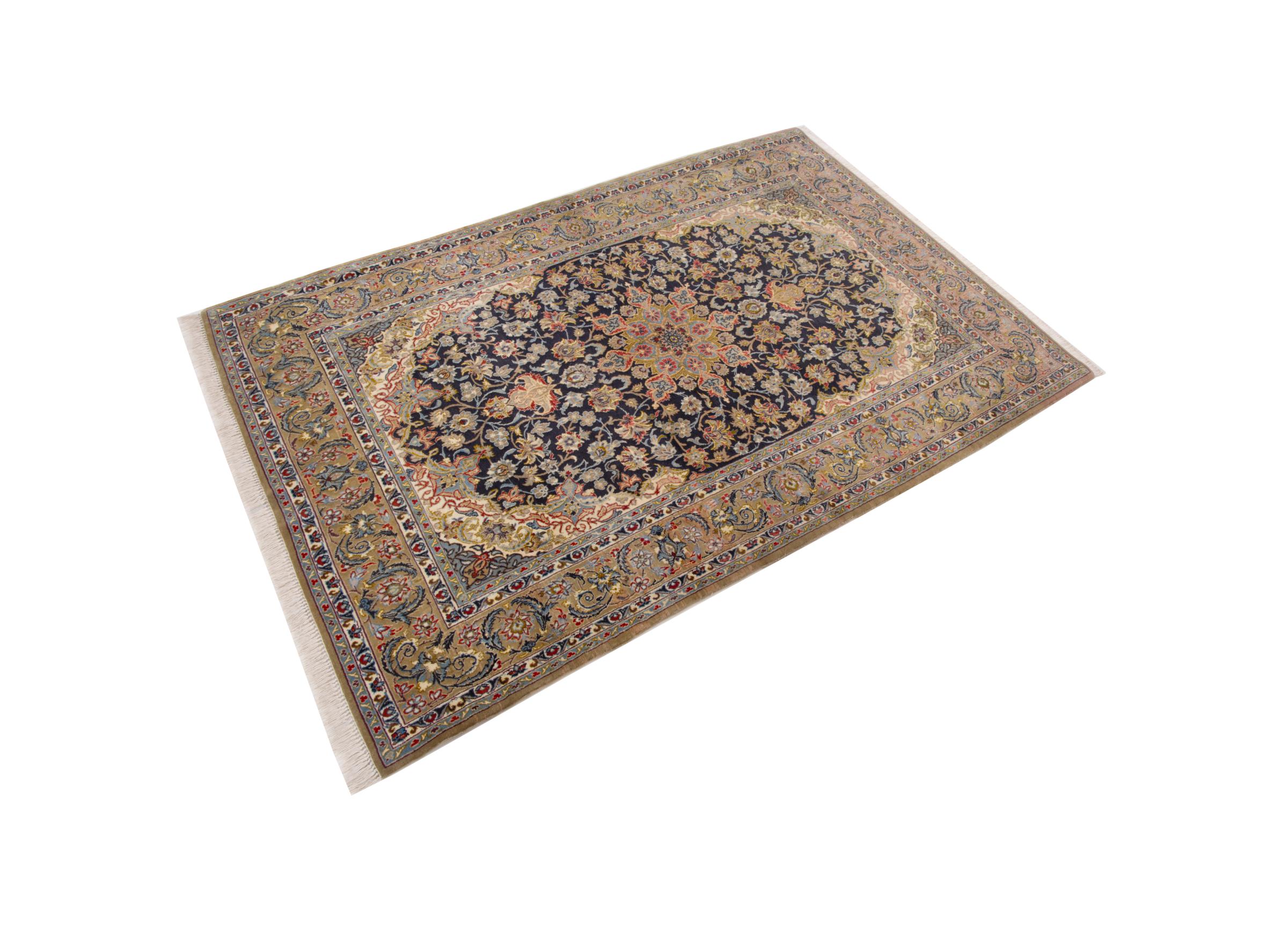 Ce tapis Isfahan est du pur art. Il est travaillé au maximum et décoré avec les plus beaux motifs qui existent. Ce tapis persan est fait à Isfahan, la plus belle ville d’Iran. Un tapis plus persan que lui est impossible à trouver.