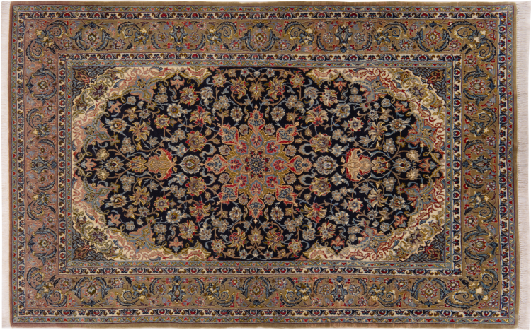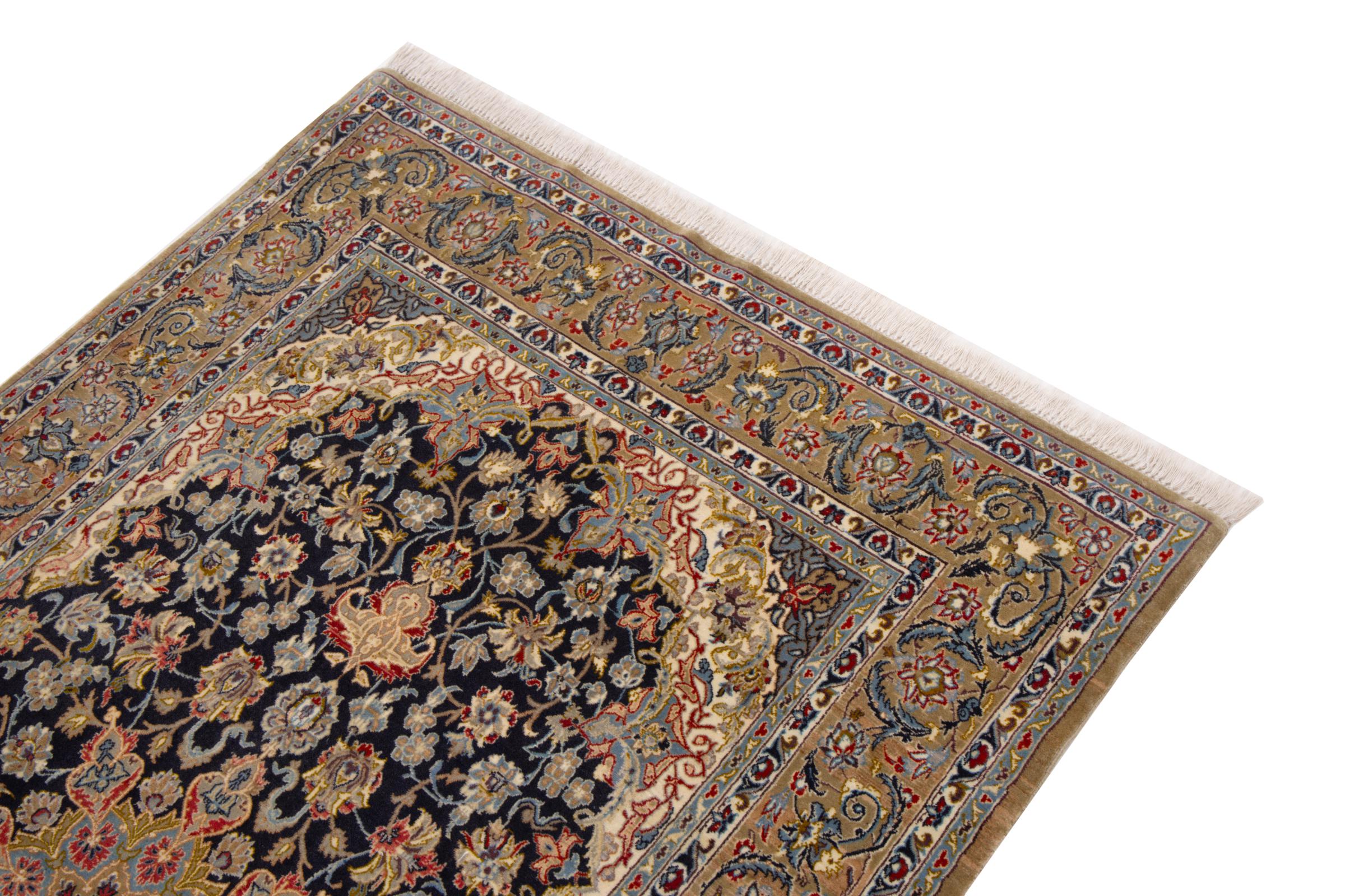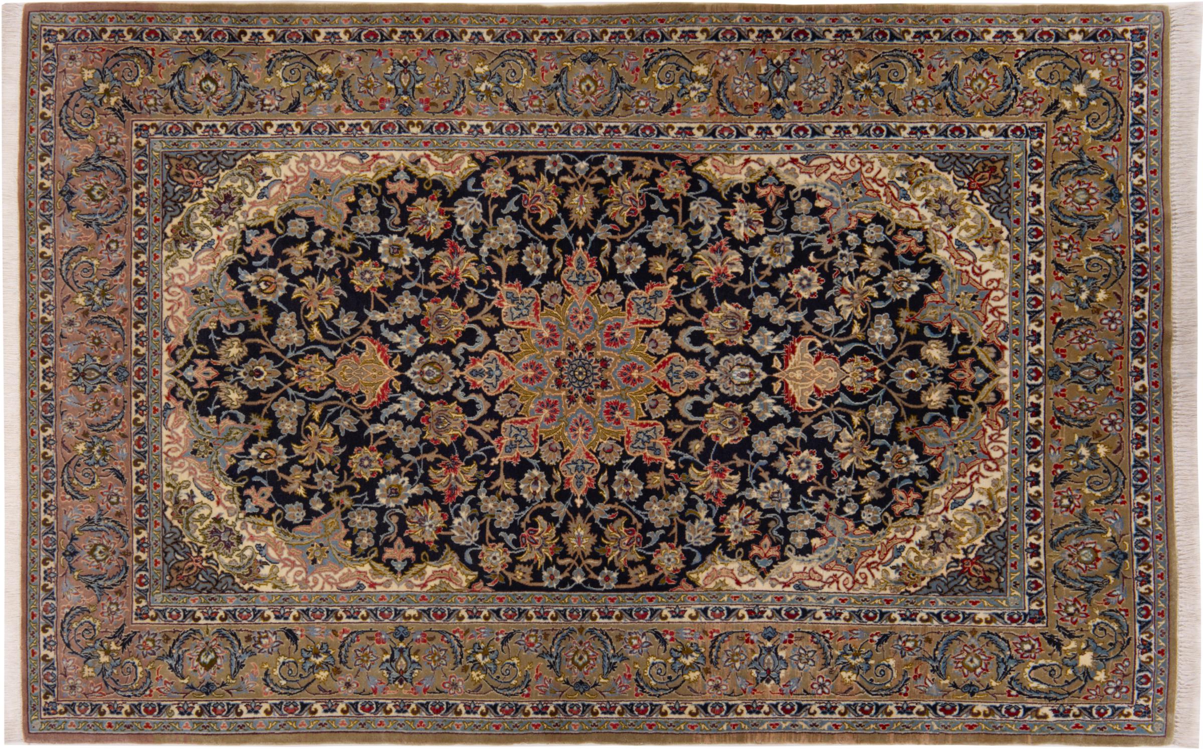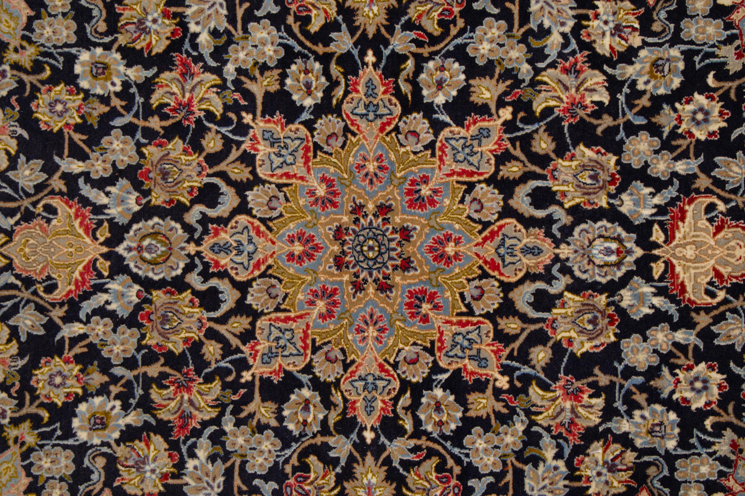Ce tapis Isfahan est du pur art. Il est travaillé au maximum et décoré avec les plus beaux motifs qui existent. Ce tapis persan est fait à Isfahan, la plus belle ville d’Iran. Un tapis plus persan que lui est impossible à trouver.