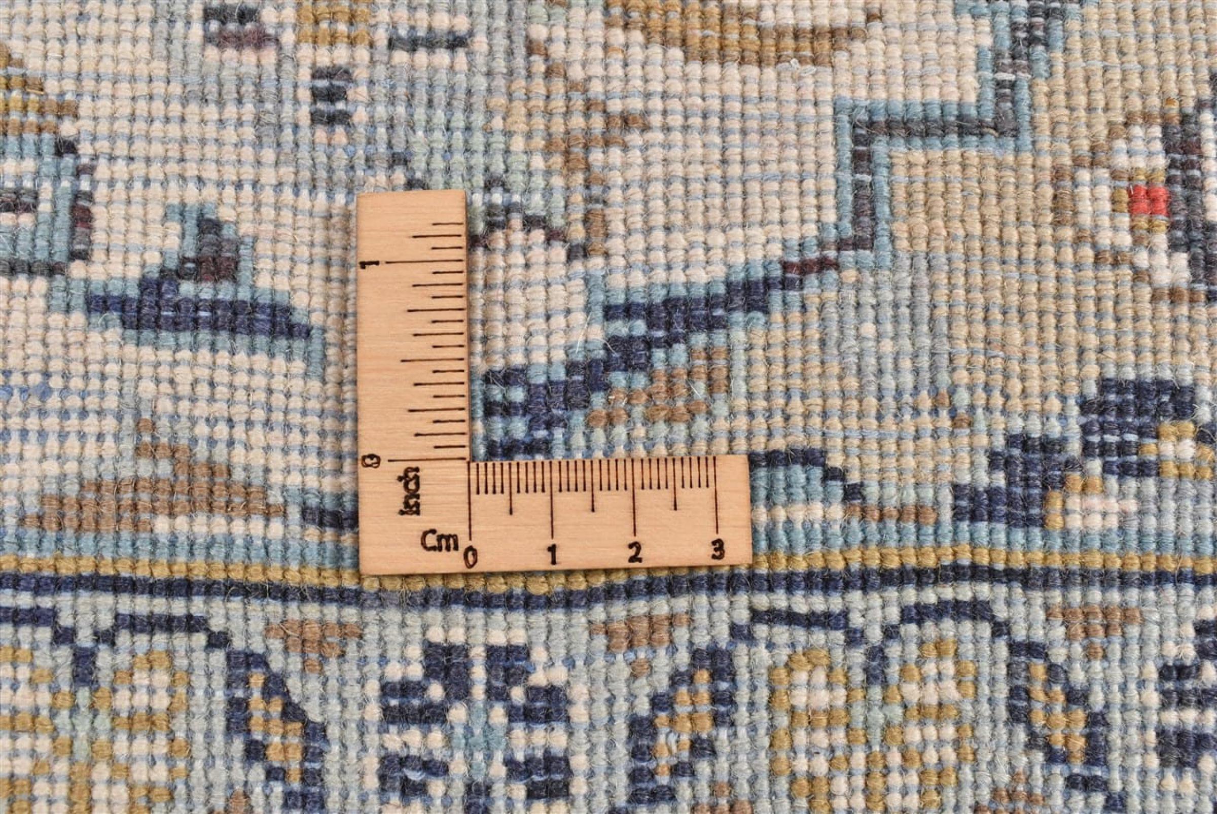 Ce tapis est fait de laine de mouton filée à la main de la plus haute qualité. En Iran (ancienne Perse), en Afghanistan et au Pakistan notamment, la laine est encore filée à la main avant que ne commence le nouage proprement dit du tapis. La laine a fait ses preuves en tant que matière naturelle et extrêmement résistante au fil des siècles. Il a notamment des propriétés antisalissures et d'isolation thermique. En même temps, la laine est incomparablement douce et a un éclat naturel.