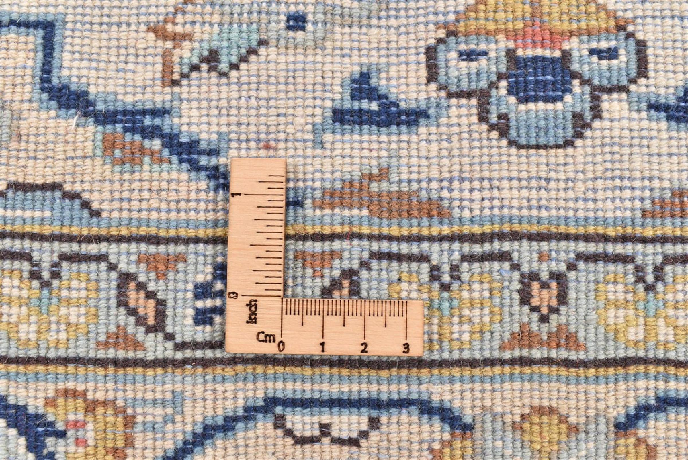 Ce tapis est fait de laine de mouton filée à la main de la plus haute qualité. En Iran (ancienne Perse), en Afghanistan et au Pakistan notamment, la laine est encore filée à la main avant que ne commence le nouage proprement dit du tapis. La laine a fait ses preuves en tant que matière naturelle et extrêmement résistante au fil des siècles. Il a notamment des propriétés antisalissures et d'isolation thermique. En même temps, la laine est incomparablement douce et a un éclat naturel.