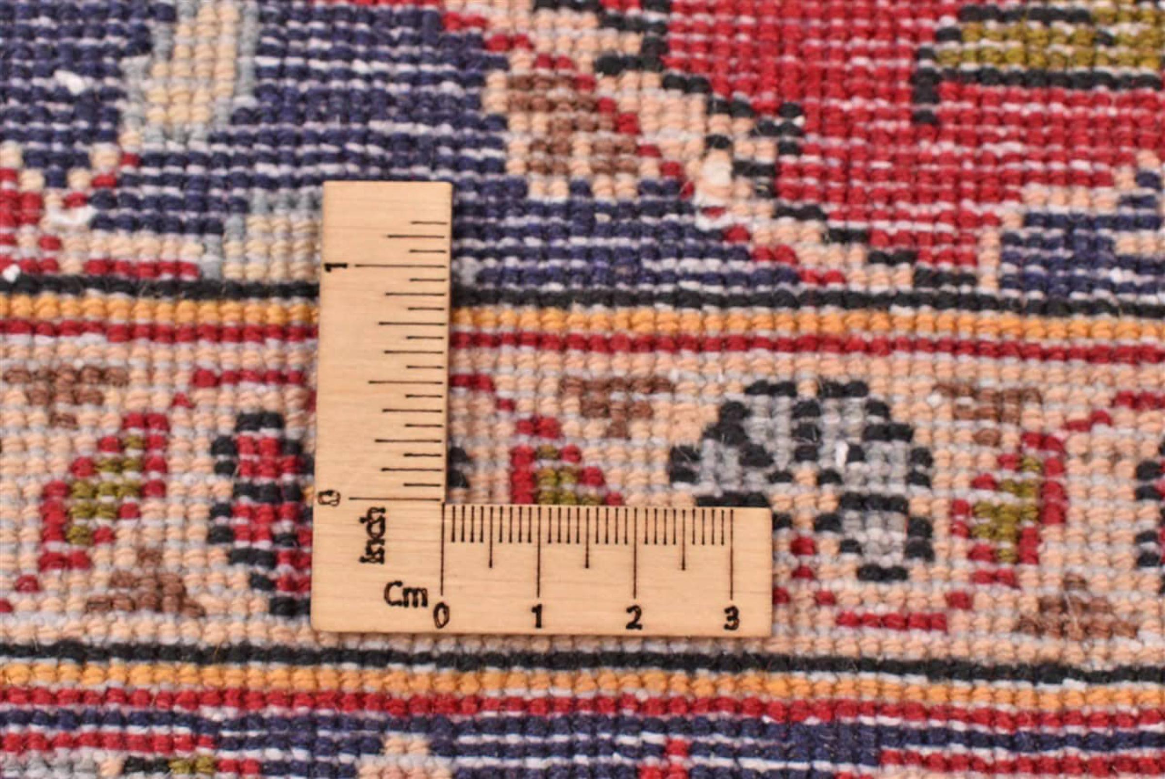 Ce tapis est fait de laine de mouton filée à la main de la plus haute qualité. En Iran (ancienne Perse), en Afghanistan et au Pakistan notamment, la laine est encore filée à la main avant que ne commence le nouage proprement dit du tapis. La laine a fait ses preuves en tant que matière naturelle et extrêmement résistante au fil des siècles. Il a notamment des propriétés antisalissures et d'isolation thermique. En même temps, la laine est incomparablement douce et a un éclat naturel.