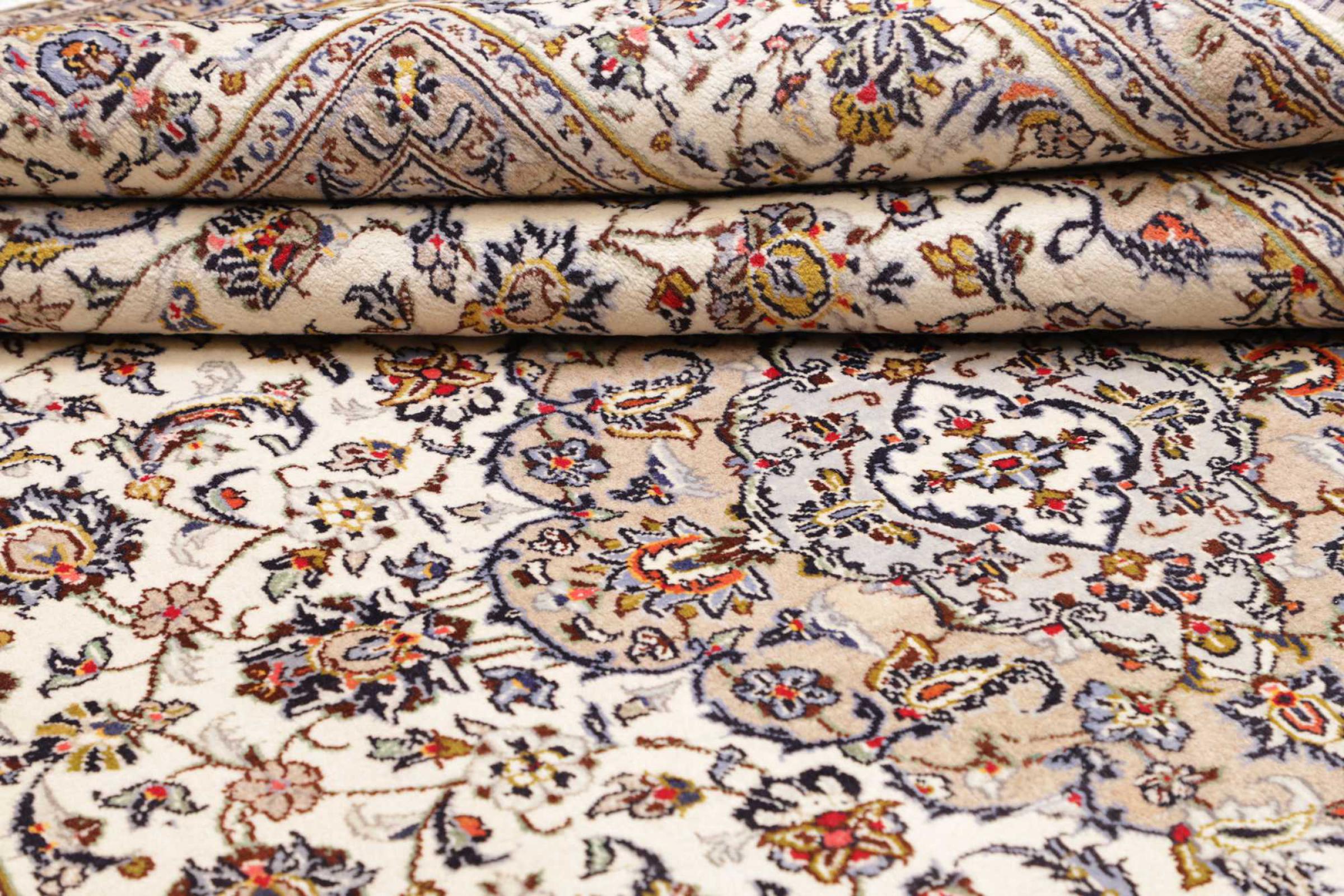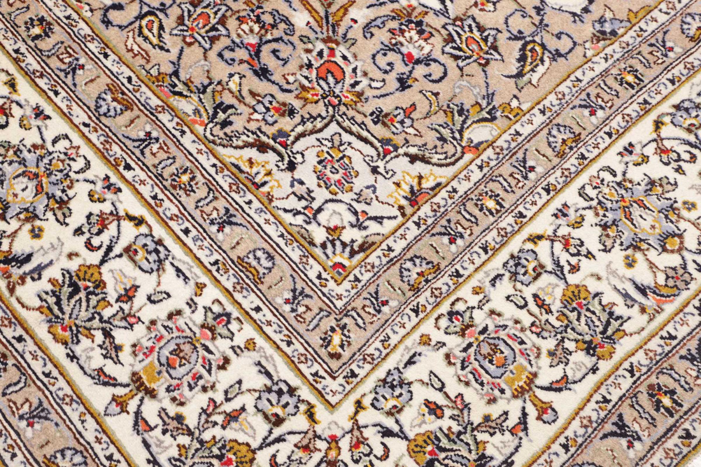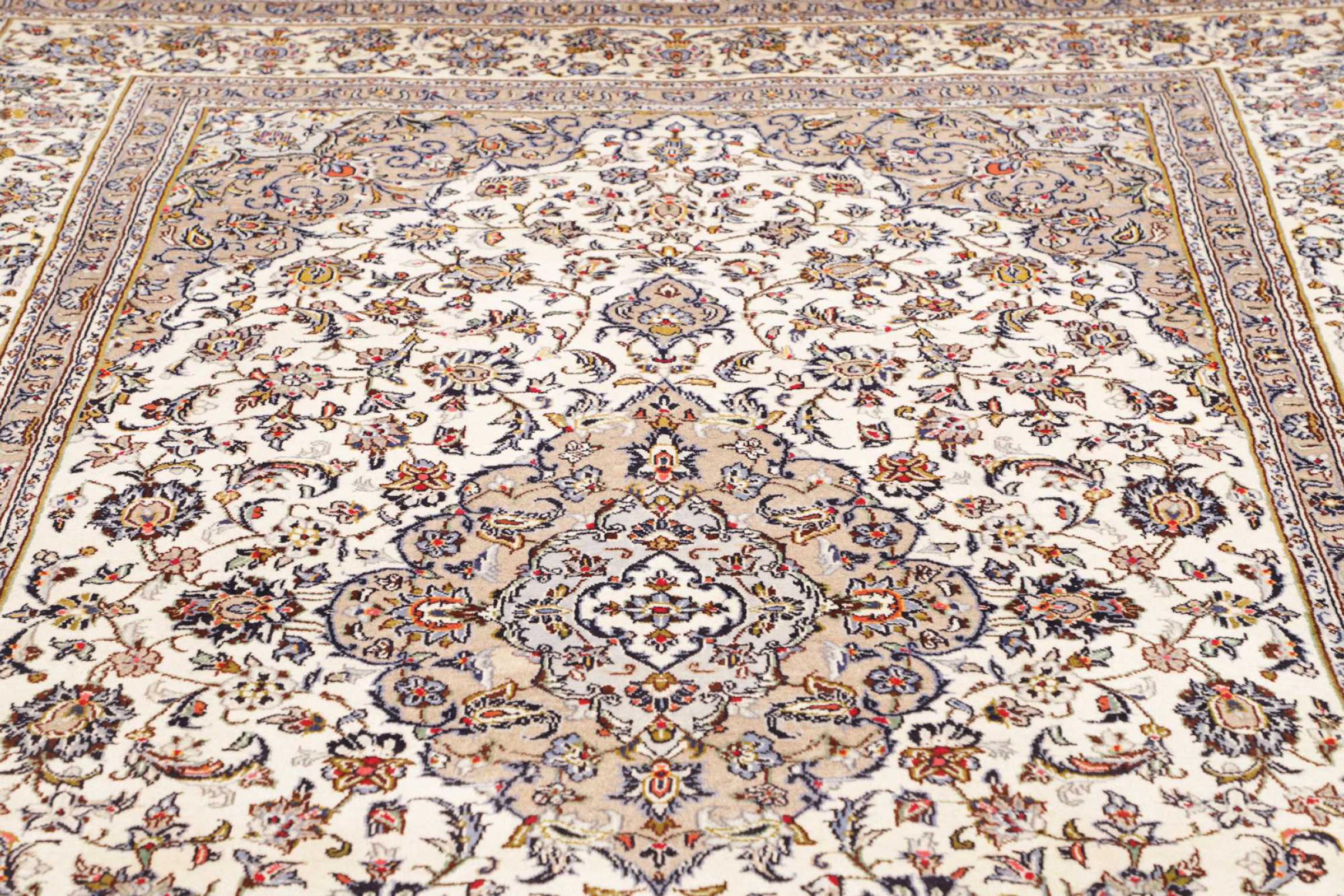 Ce tapis de Kashan (Keshan) se tient dans son design persan très traditionnel et typique avec de beaux ornements. Les tapis Kashan sont très populaires en raison de leur design exceptionnellement élégant. Ces tapis sont originaires de Kashan, une ville située sur l'ancienne route de la soie. Ce tapis a été noué à la main à partir de laine de mouton de haute qualité et sera un point culminant unique dans votre maison.