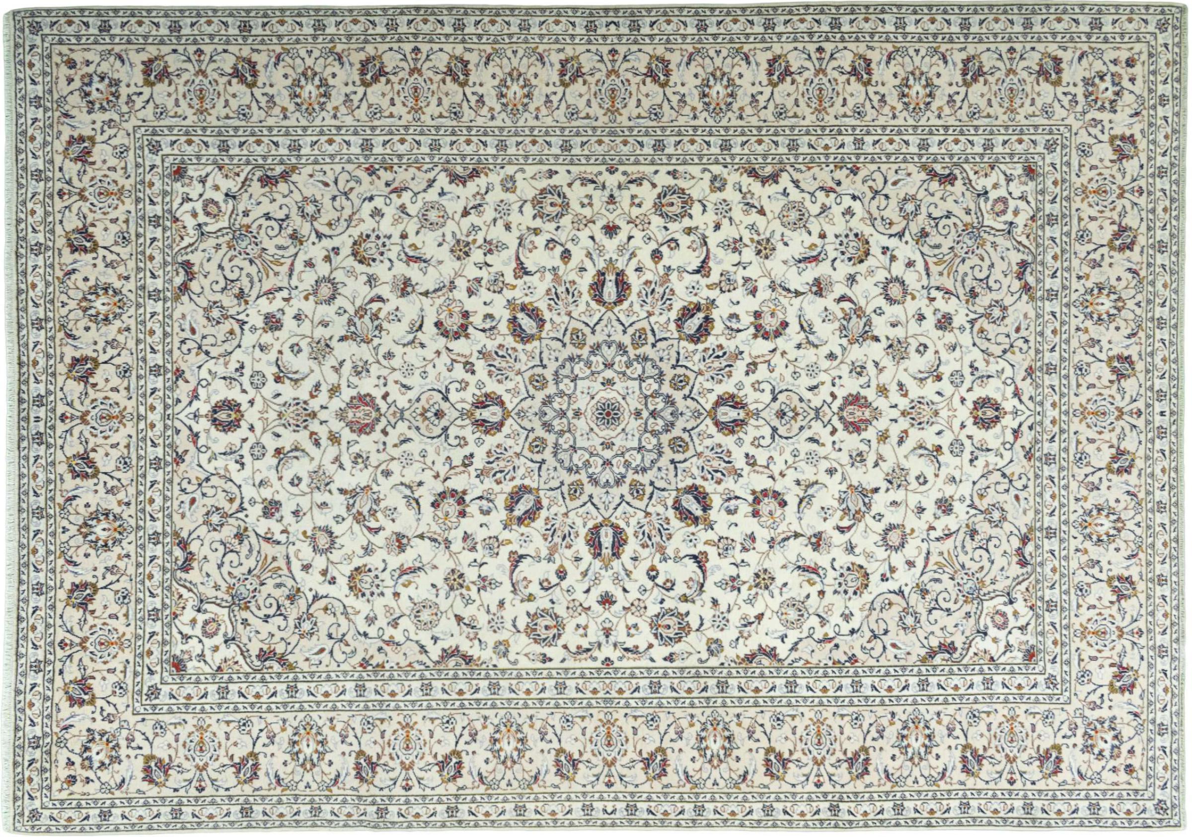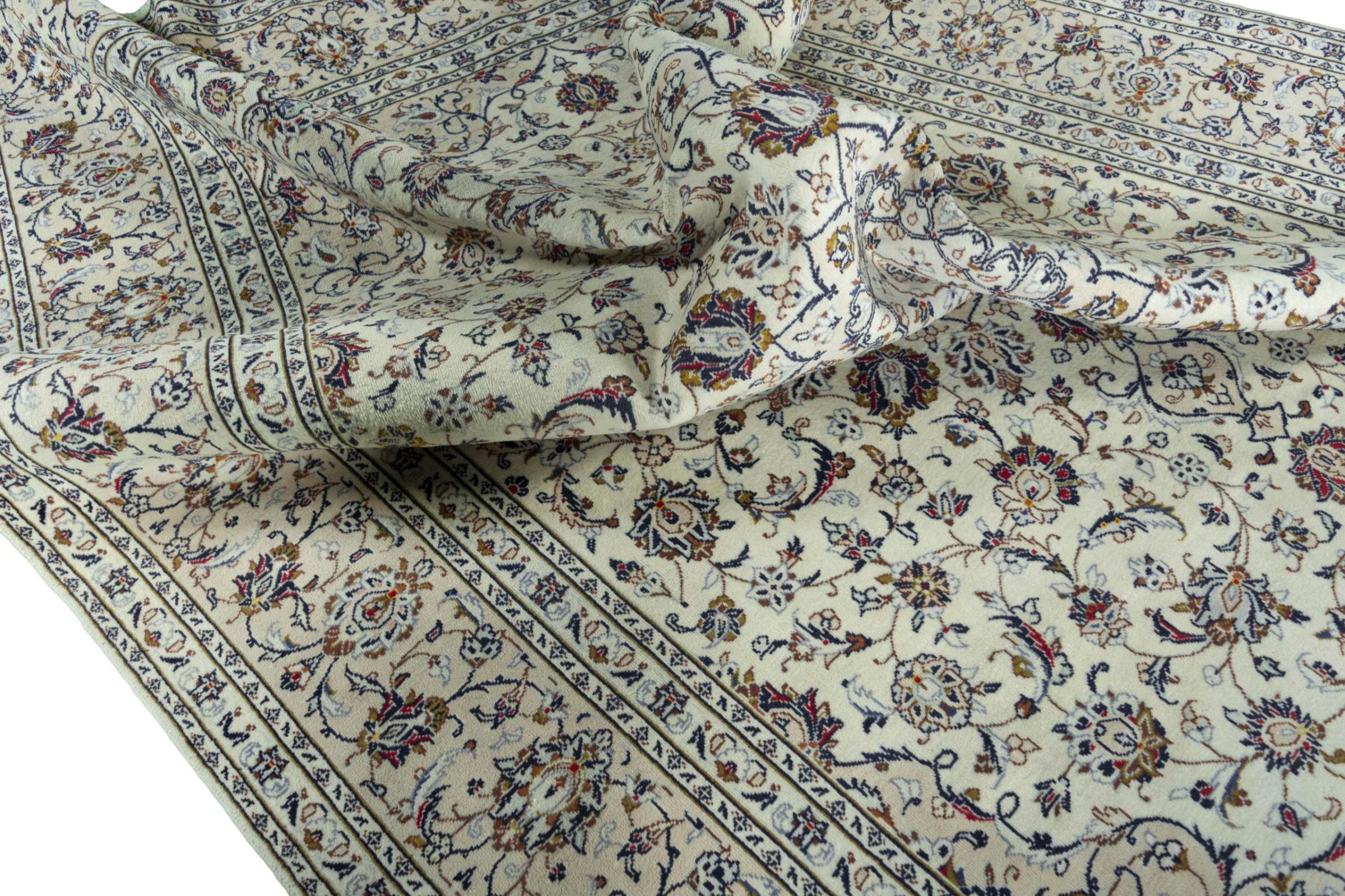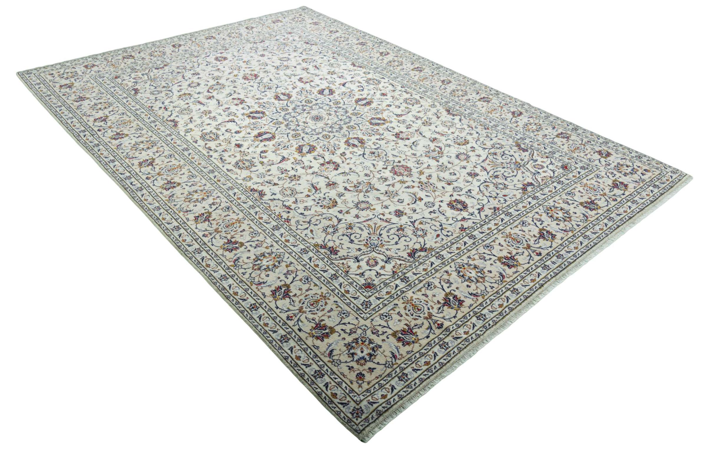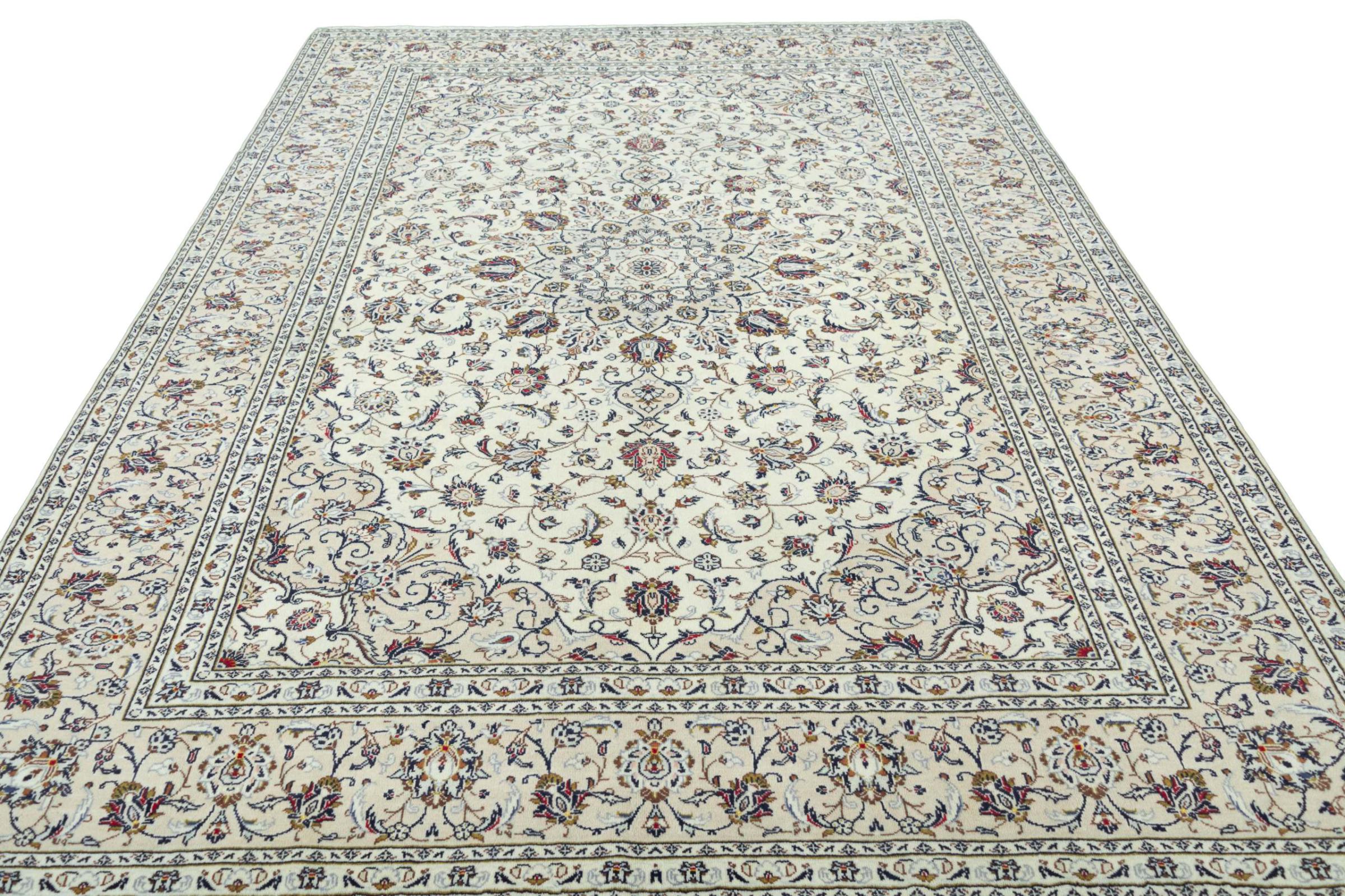 Ce tapis de Kashan (Keshan) se tient dans son design persan très traditionnel et typique avec de beaux ornements. Les tapis Kashan sont très populaires en raison de leur design exceptionnellement élégant. Ces tapis sont originaires de Kashan, une ville située sur l'ancienne route de la soie. Ce tapis a été noué à la main à partir de laine de mouton de haute qualité et sera un point culminant unique dans votre maison.