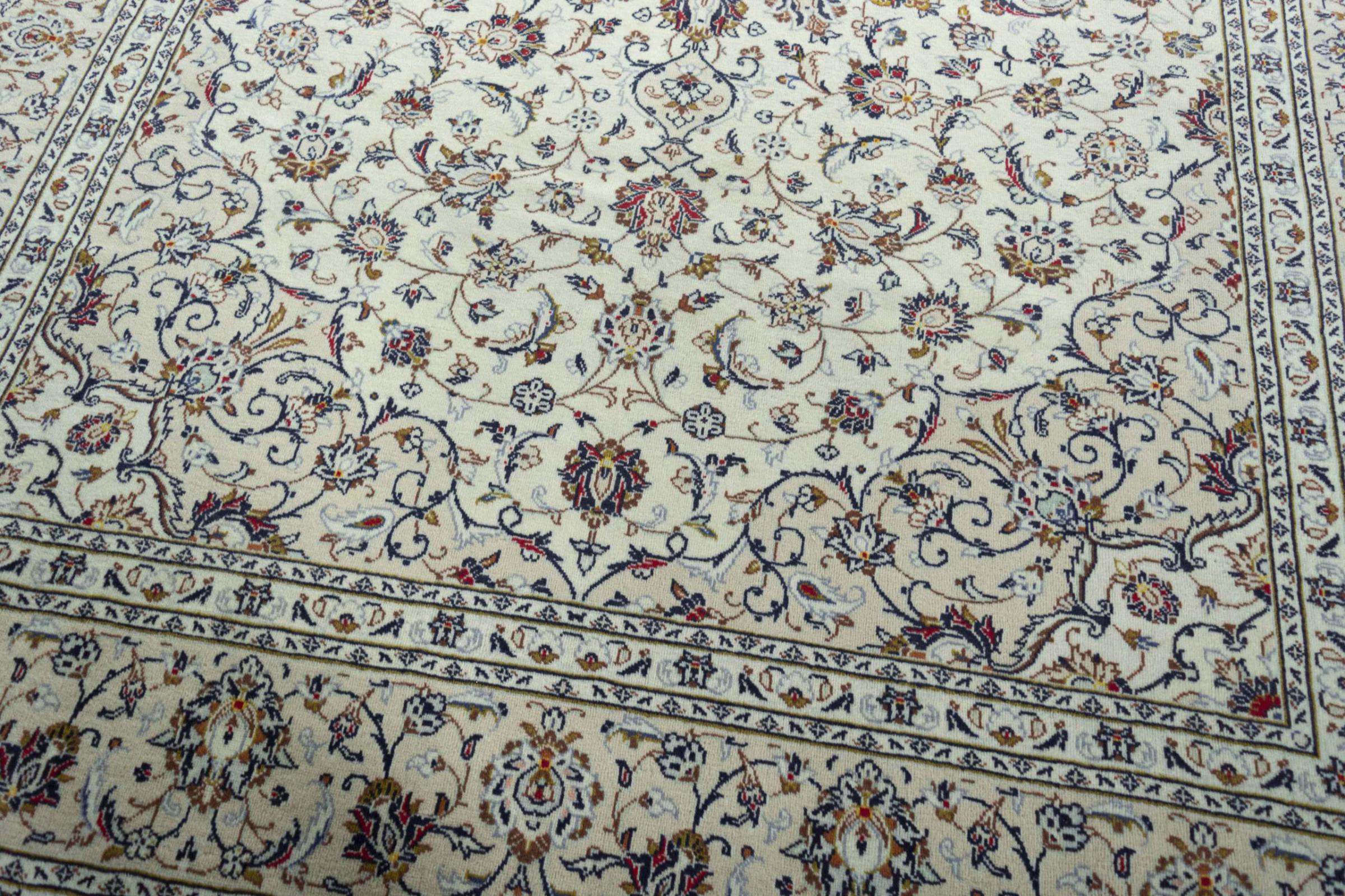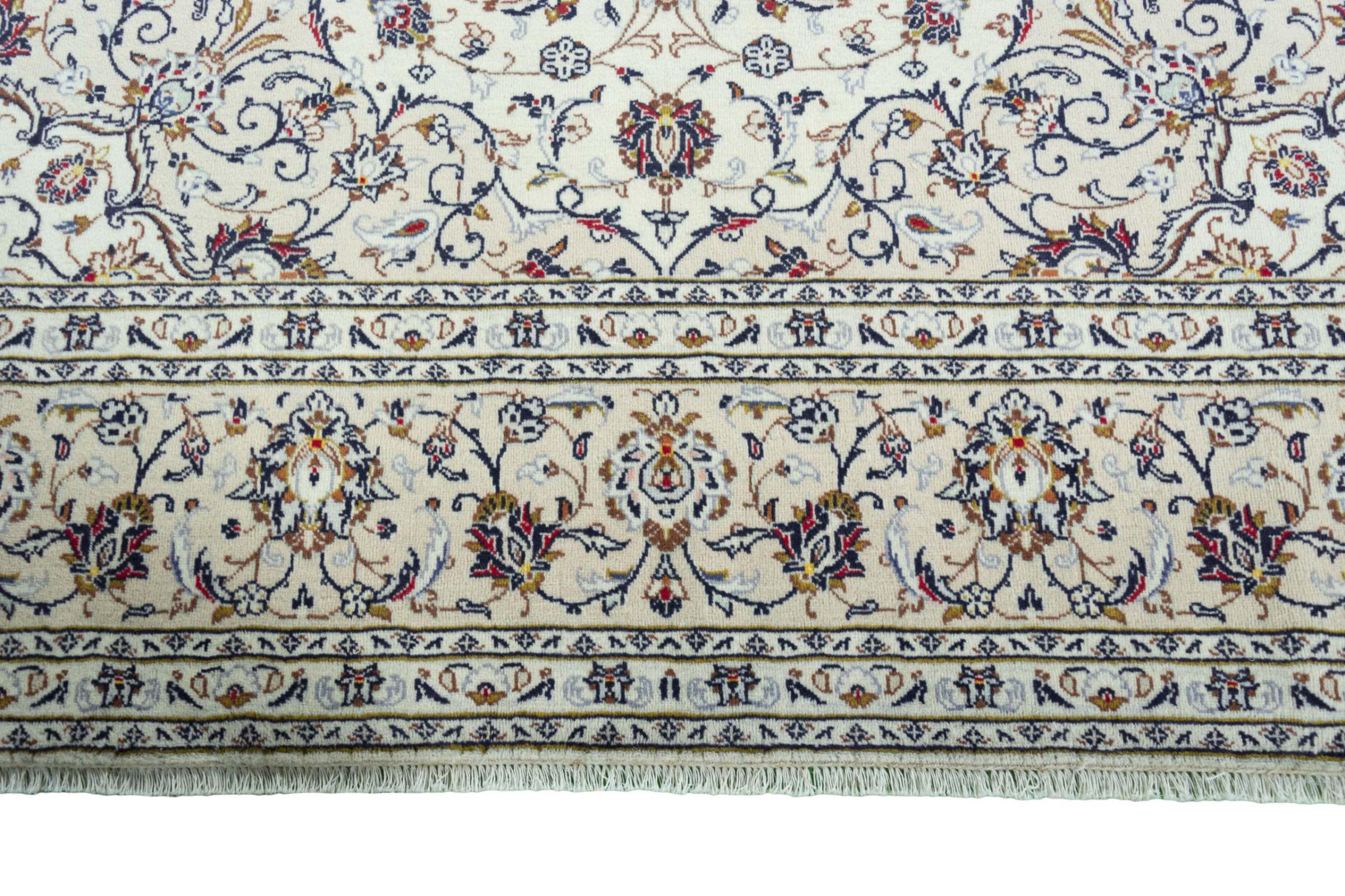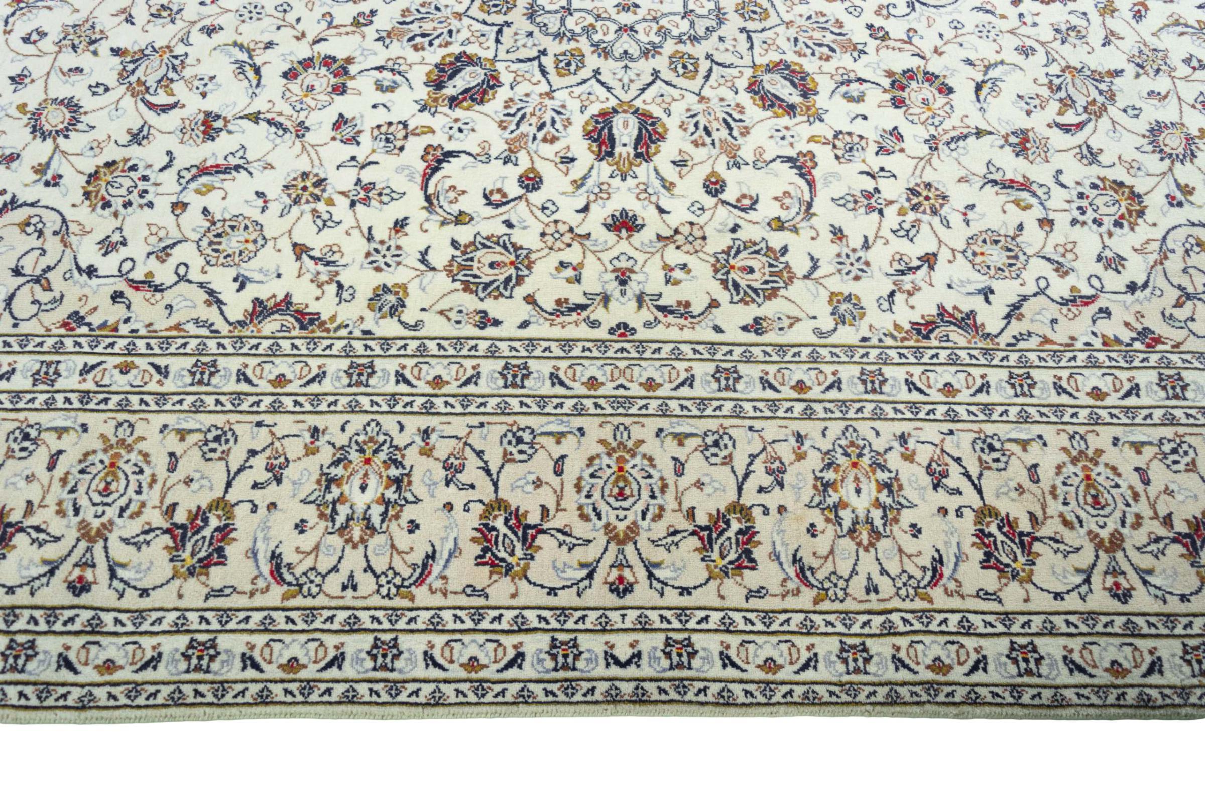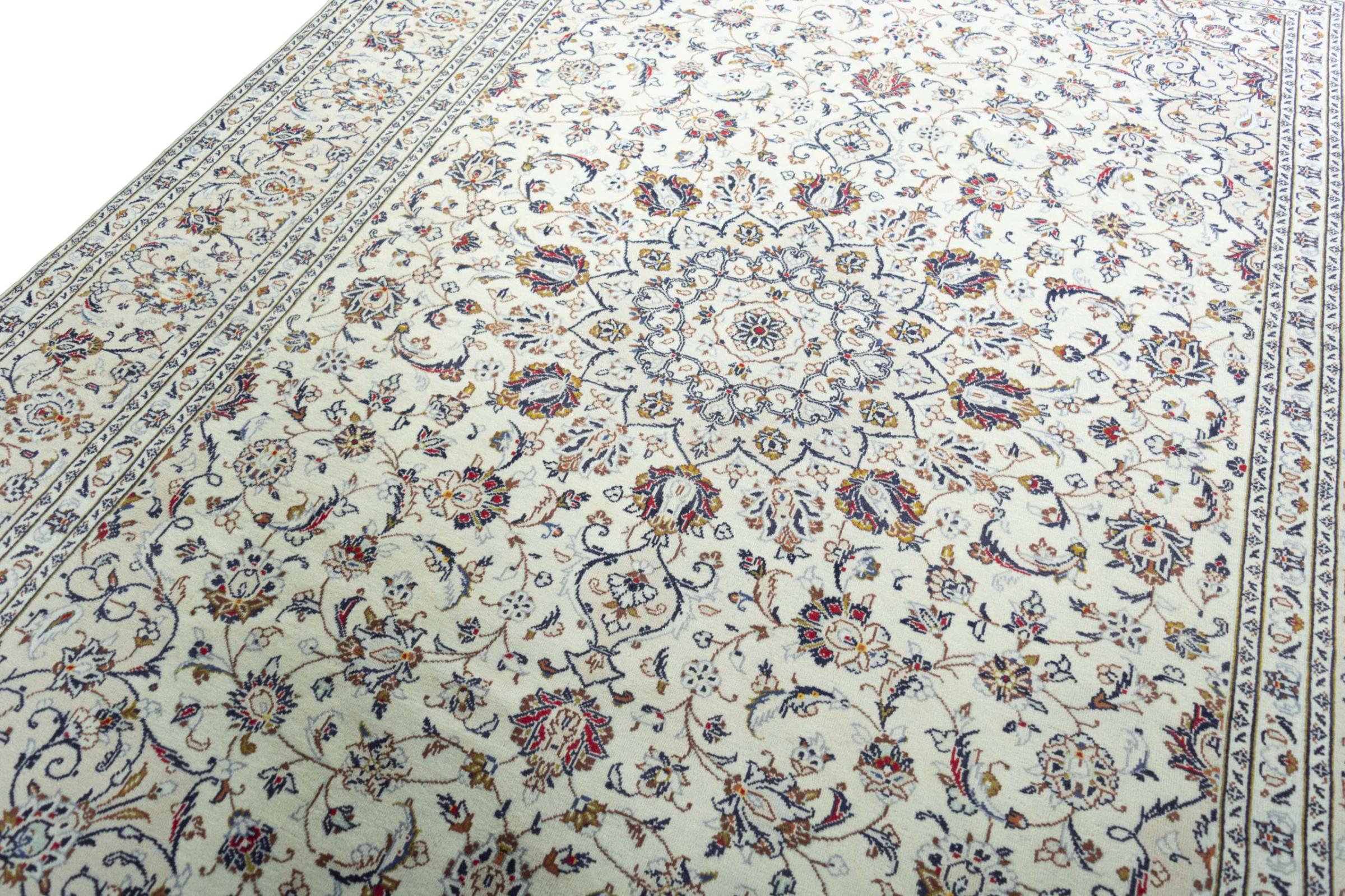 Ce tapis de Kashan (Keshan) se tient dans son design persan très traditionnel et typique avec de beaux ornements. Les tapis Kashan sont très populaires en raison de leur design exceptionnellement élégant. Ces tapis sont originaires de Kashan, une ville située sur l'ancienne route de la soie. Ce tapis a été noué à la main à partir de laine de mouton de haute qualité et sera un point culminant unique dans votre maison.