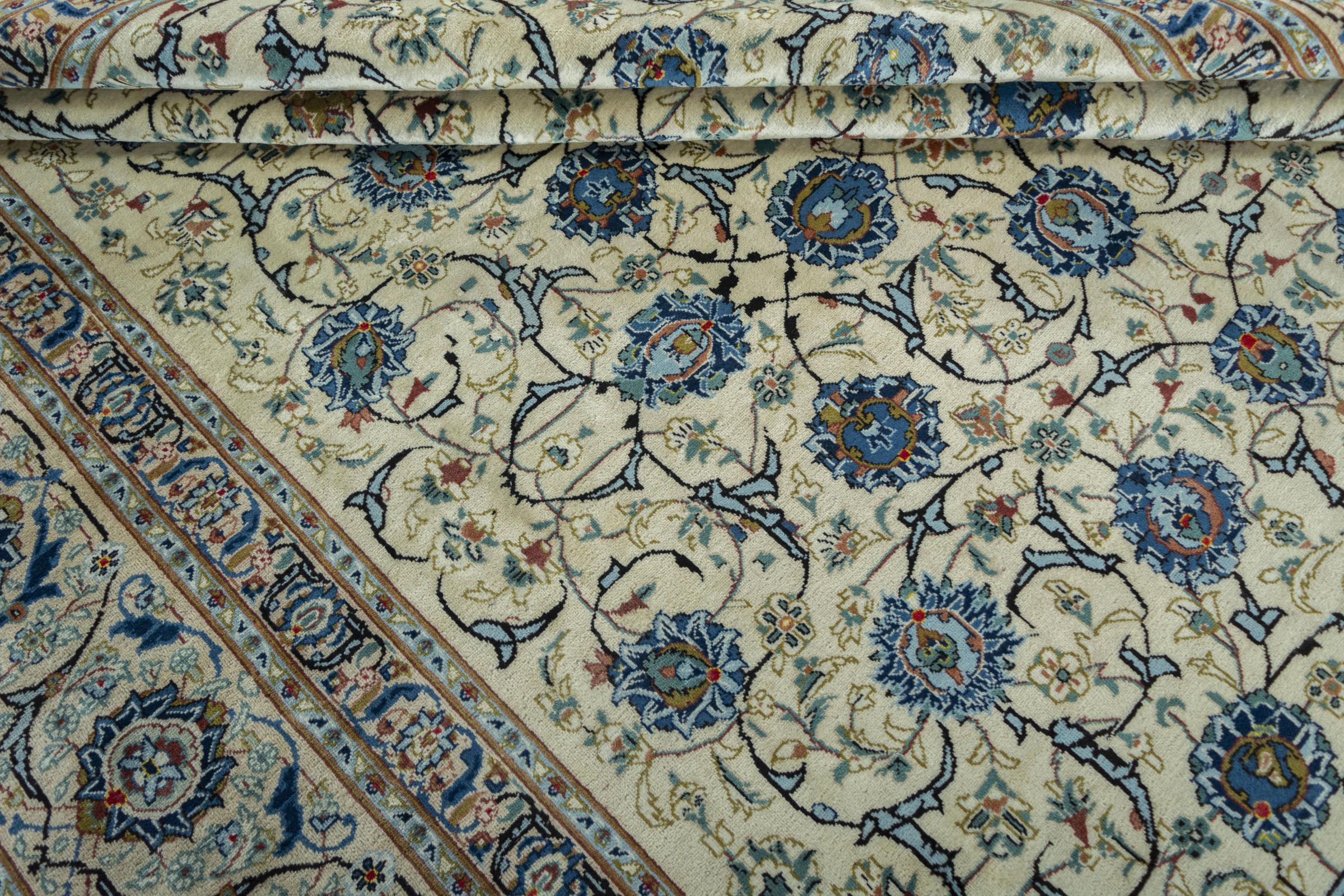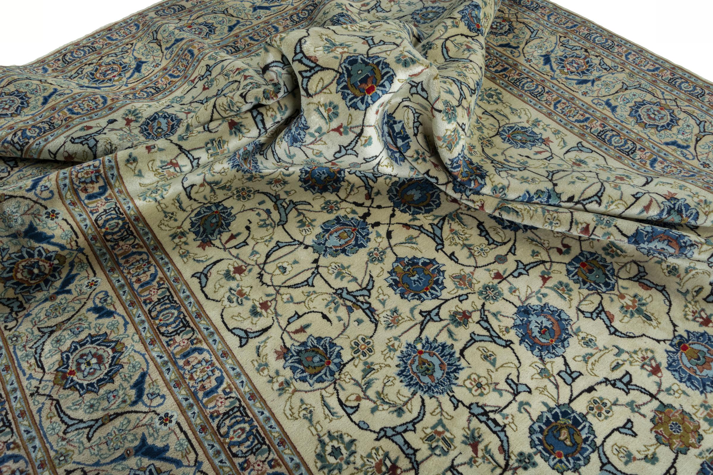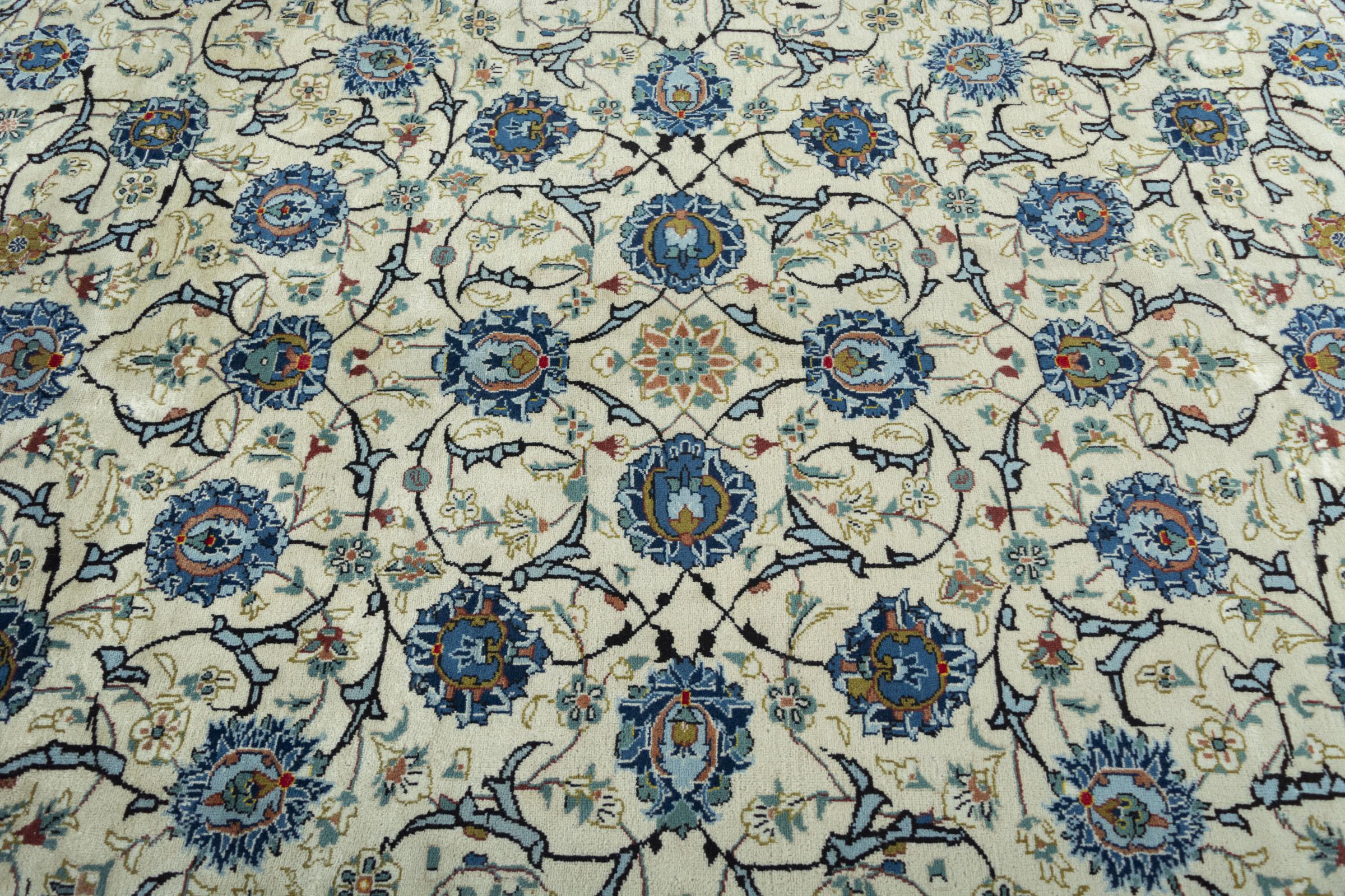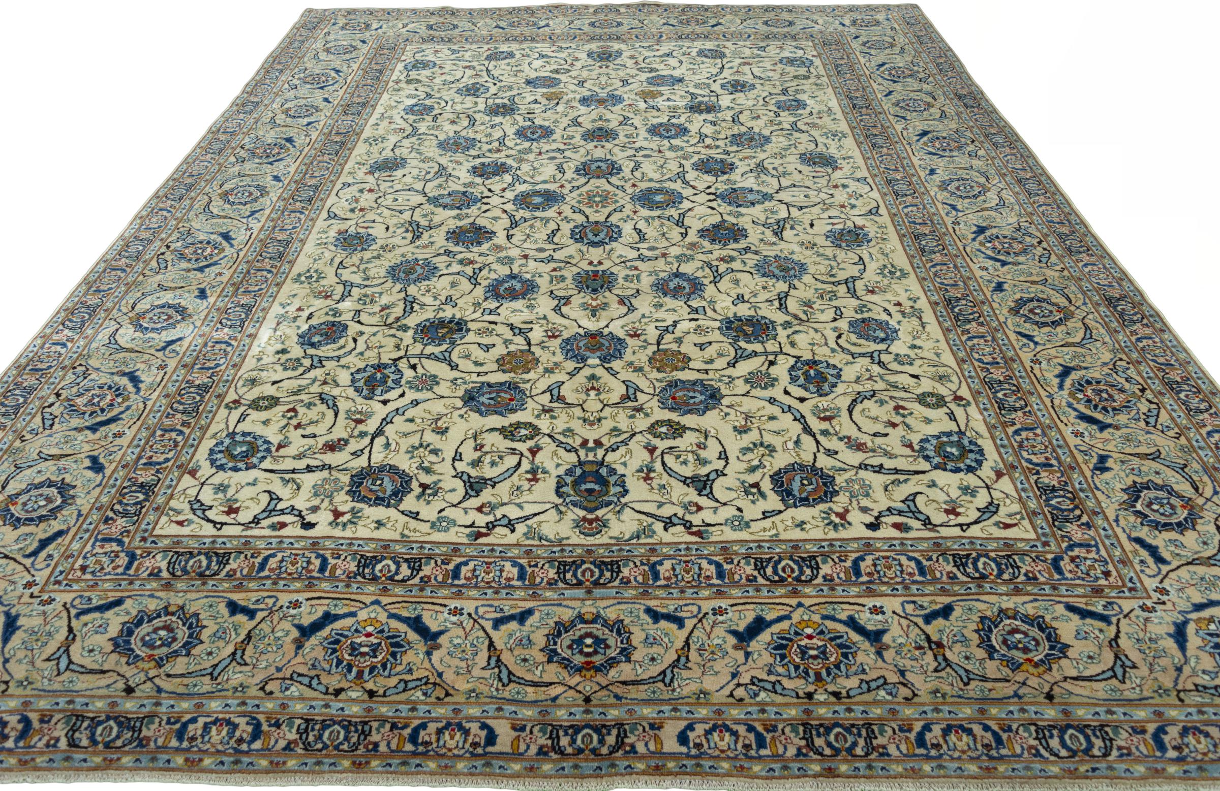 Ce tapis de Kashan (Keshan) se tient dans son design persan très traditionnel et typique avec de beaux ornements. Les tapis Kashan sont très populaires en raison de leur design exceptionnellement élégant. Ces tapis sont originaires de Kashan, une ville située sur l'ancienne route de la soie. Ce tapis a été noué à la main à partir de laine de mouton de haute qualité et sera un point culminant unique dans votre maison.