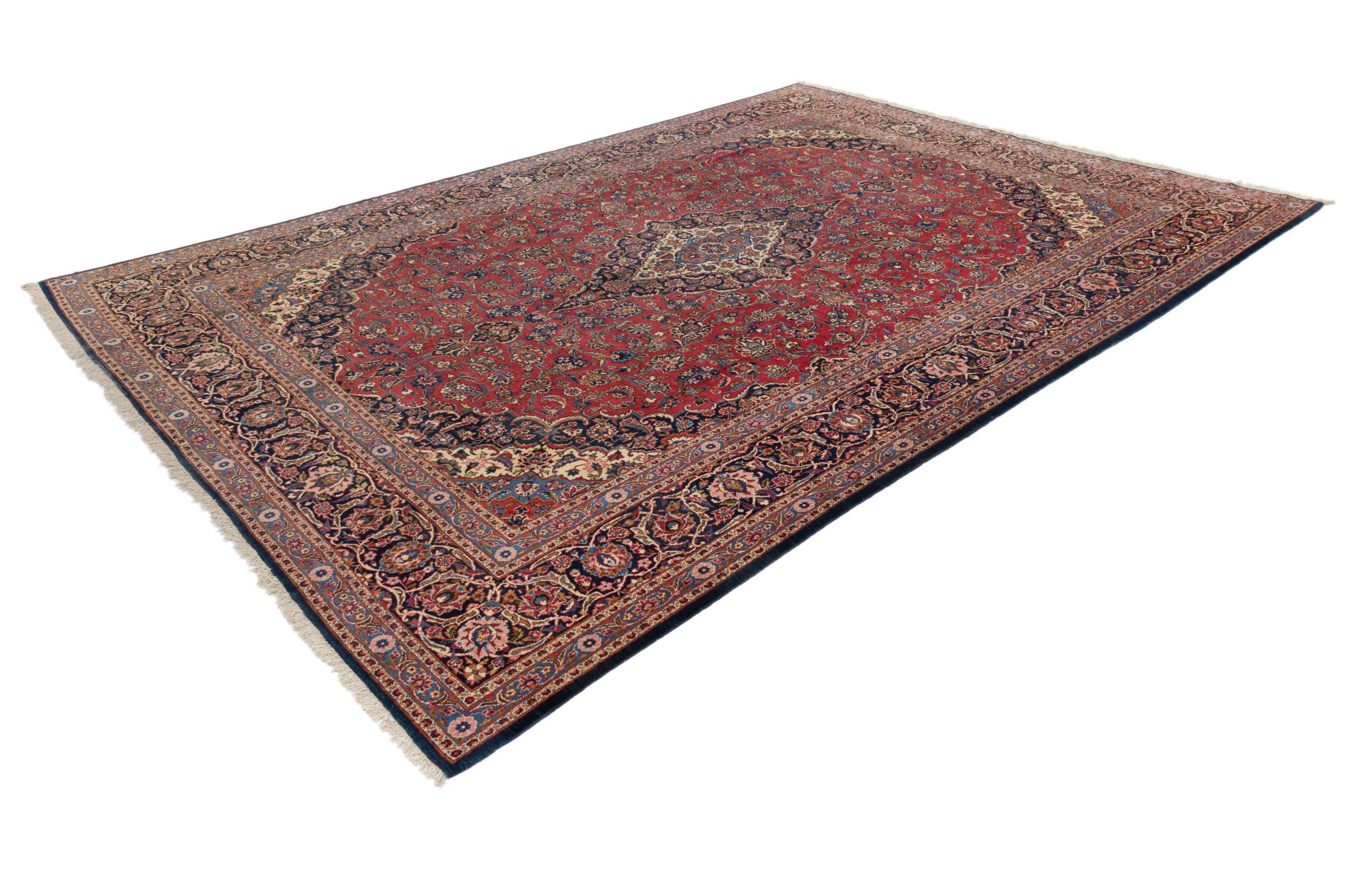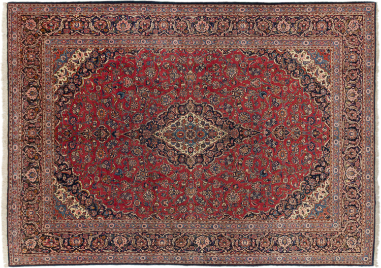 Les tapis noués à la main de la ville de Keshan (Kashan) sont connus dans le monde entier. Non seulement ces tapis persans ont un design très populaire, mais leur qualité est incontestablement l'une des meilleures. Dans l'Empire perse, la ville était considérée comme l'un des plus importants lieux de commerce le long de la célèbre route de la soie. Les tapis Keshan ont généralement un médaillon central, des ornements floraux et un fond rouge. Ils sont fabriqués à partir de laine de mouton de haute qualité et de teintures végétales.