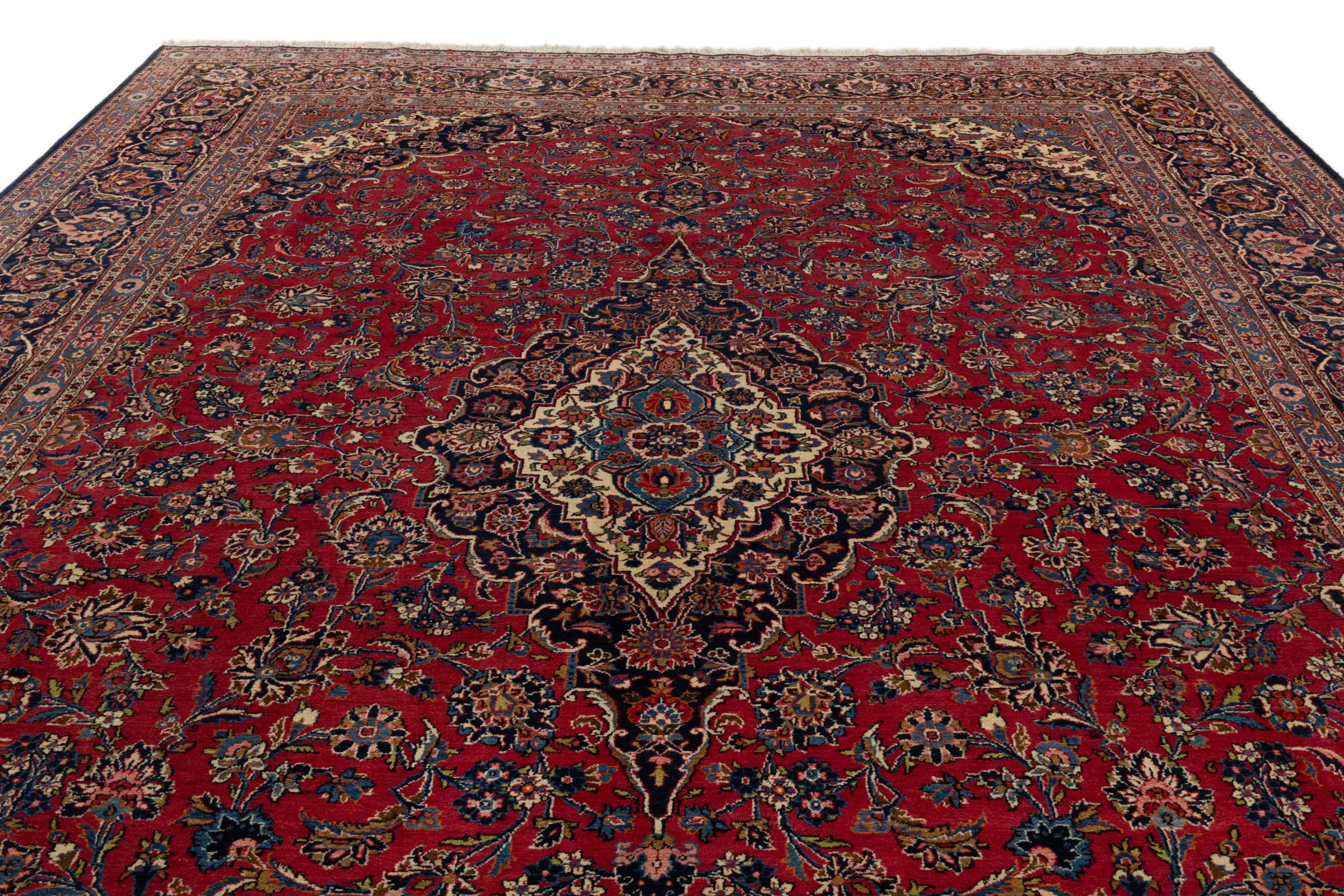 Ce tapis de Kashan (Keshan) se tient dans son design persan très traditionnel et typique avec de beaux ornements. Les tapis Kashan sont très populaires en raison de leur design exceptionnellement élégant. Ces tapis sont originaires de Kashan, une ville située sur l'ancienne route de la soie. Ce tapis a été noué à la main à partir de laine de mouton de haute qualité et sera un point culminant unique dans votre maison.