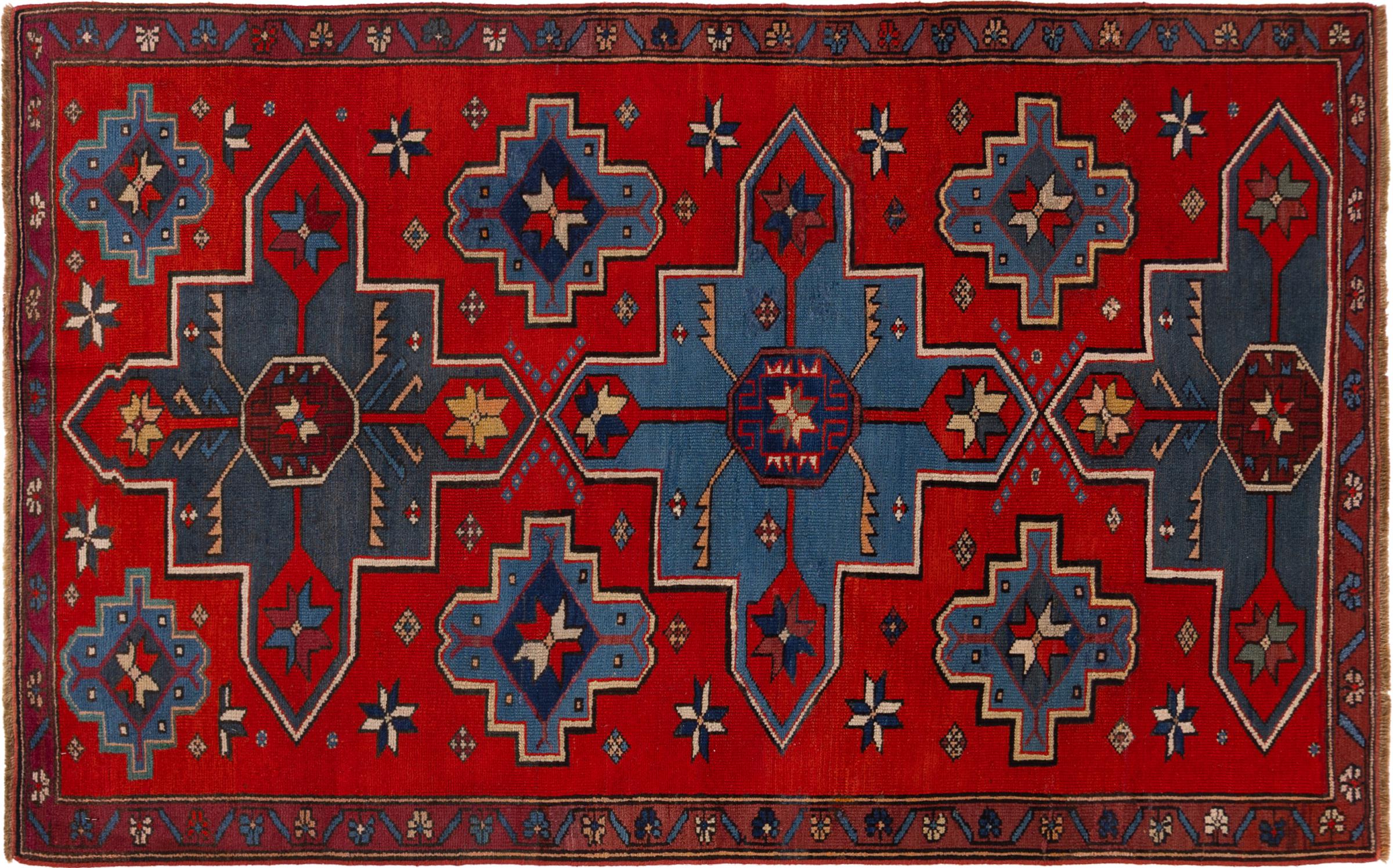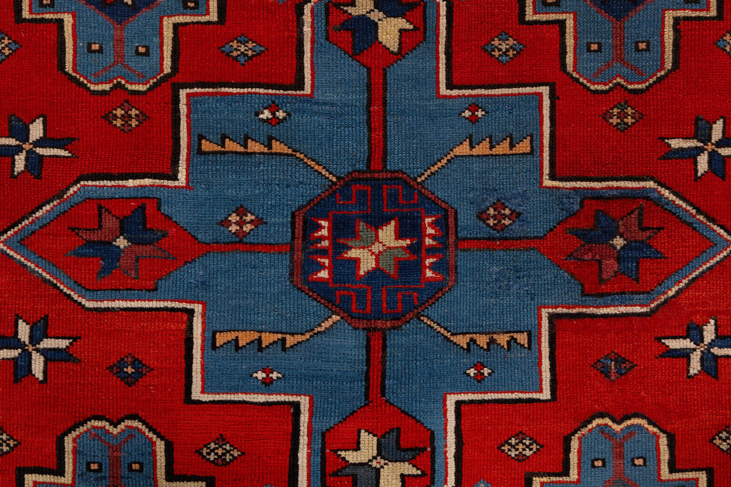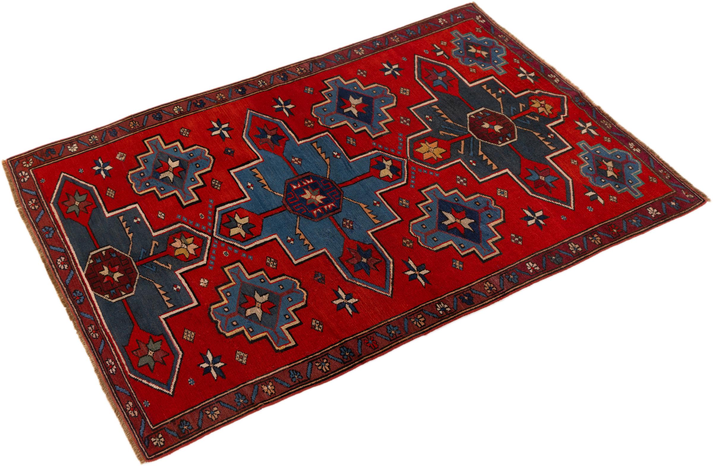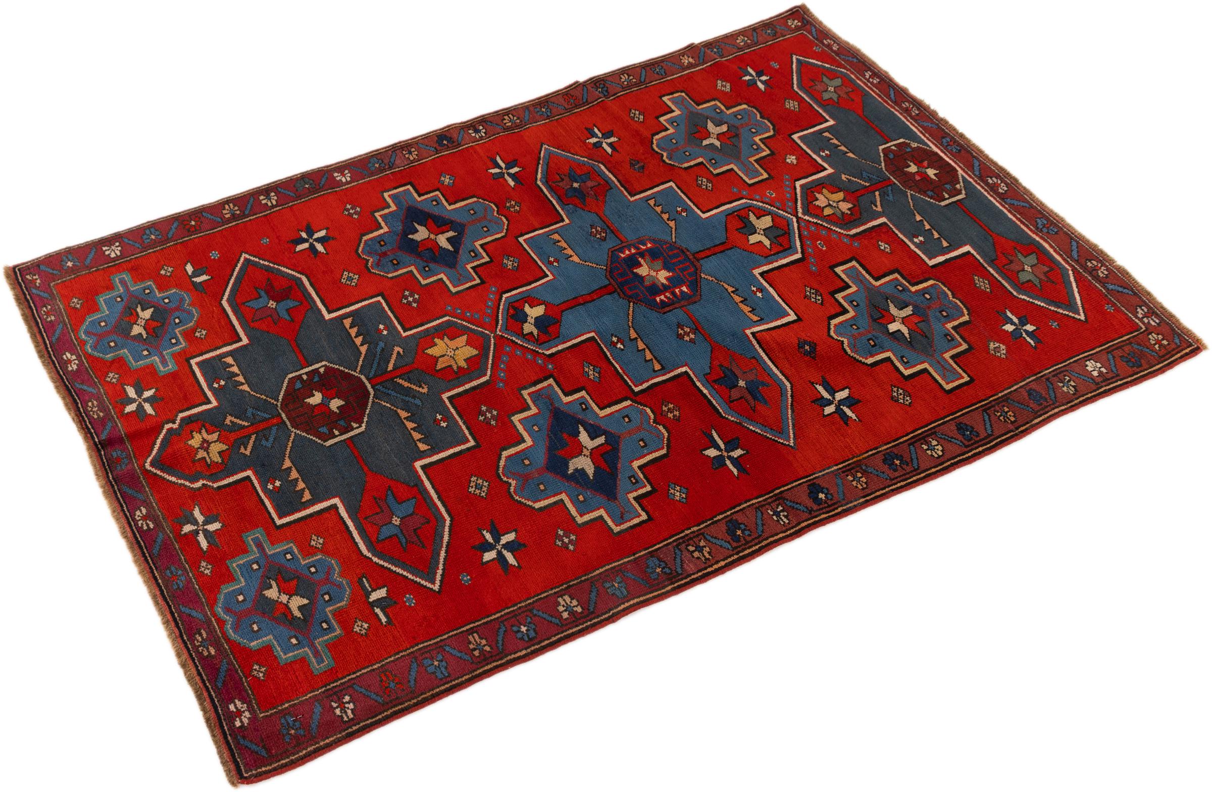 Le Caucase est situé entre la mer Noire et la mer Caspienne. Les montagnes caucasiennes sont connues pour leur paysage pittoresque et leurs villes, qui ont été façonnées par de nombreux tapis noués à la main dans cette région. Les tapis caucasiens sont populaires en raison de leurs motifs colorés et vifs. Les motifs géométriques et linéaires sont remarquablement fréquents sur les tapis orientaux du Caucase.