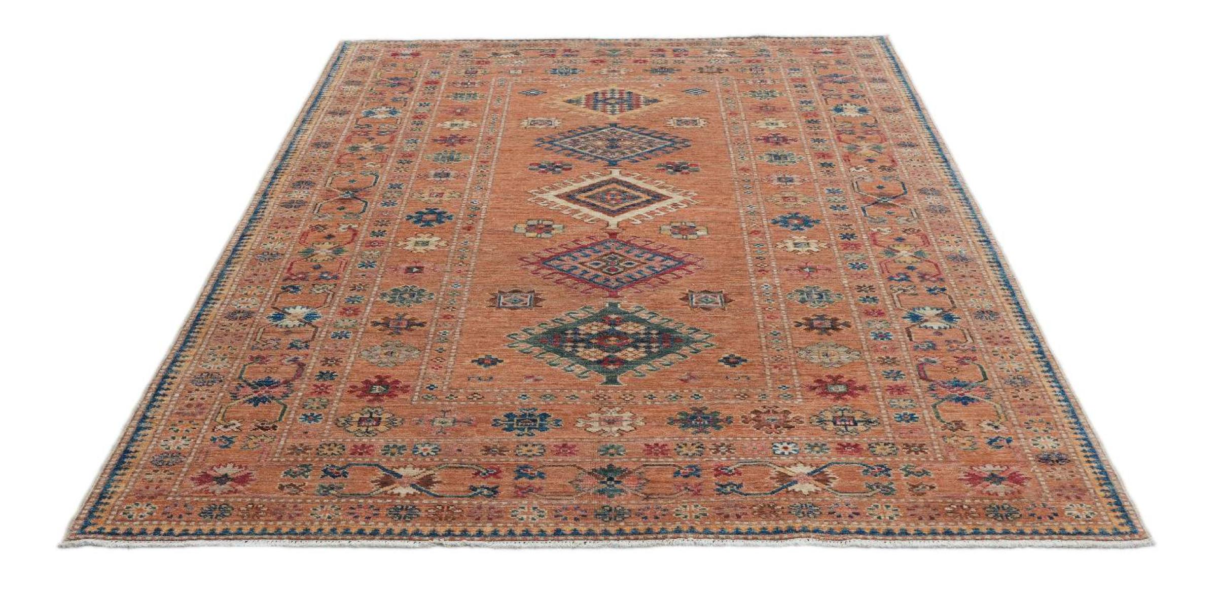 Réf. Article: 306119006892282 Taille: 209x150 cm Épaisseur: ap. 5 mm Densité de nouage: 120 000 - 150 000 / m² Fabrication: Noué à la main Velours: Laine filée à la main Chaîne: Coton Origine: Pakistan Âge: Nouveau Poids: ap. 8 kg Nombre en stock: Unique - Seulement 1 en stock