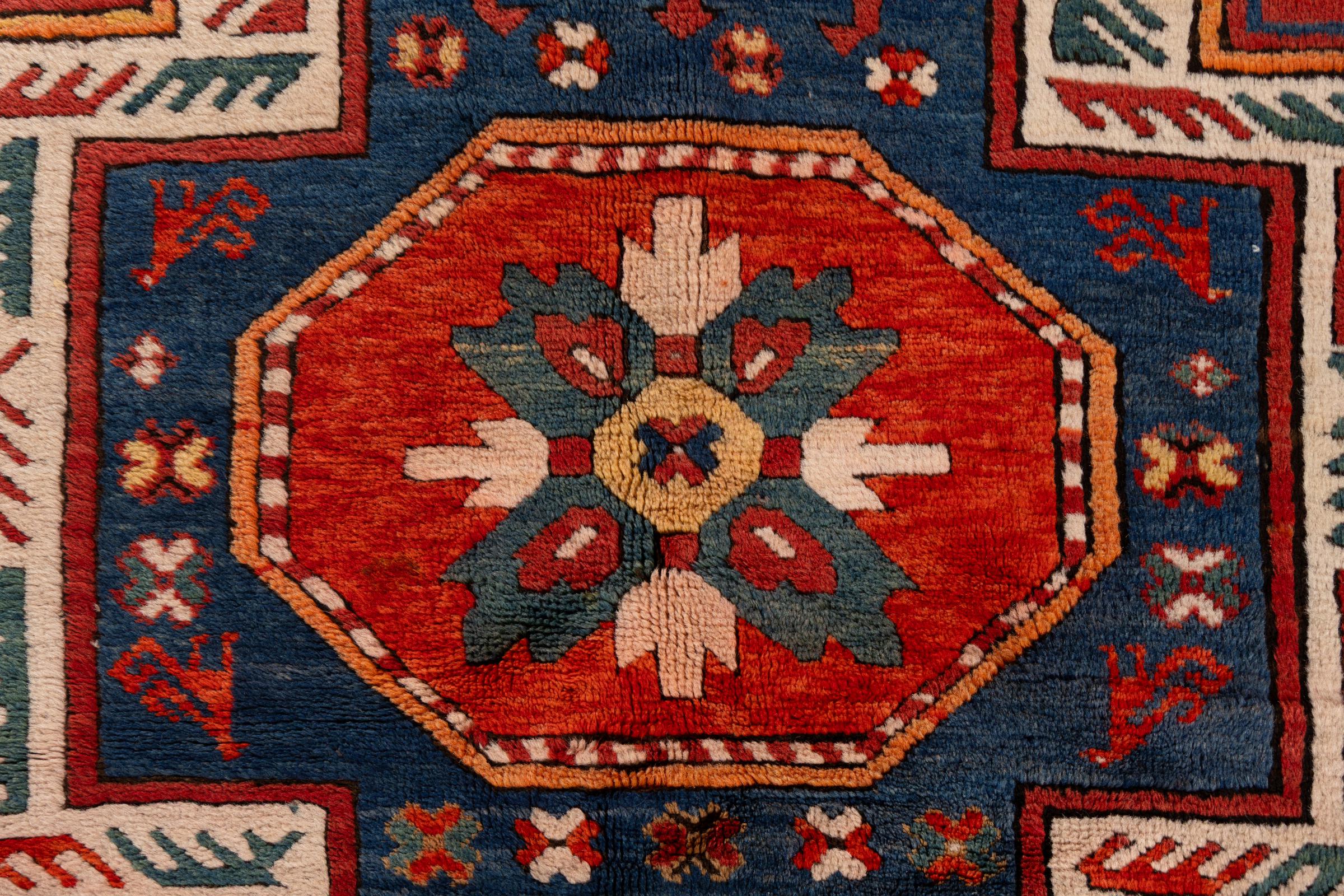 Réf. Article: 3070760023107 Taille: 260x172 cm Épaisseur: ap. 5 mm Densité de nouage: 200 000 - 250 000 / m² Fabrication: Noué à la main Velours: Laine de mouton Chaîne: Laine de mouton État du tapis / Conservation Perfect Origine: Azerbaijan / Russie Âge: Antique, over 80 ans Poids: ap. 11 kg Nombre en stock: Unique - Seulement 1 en stock