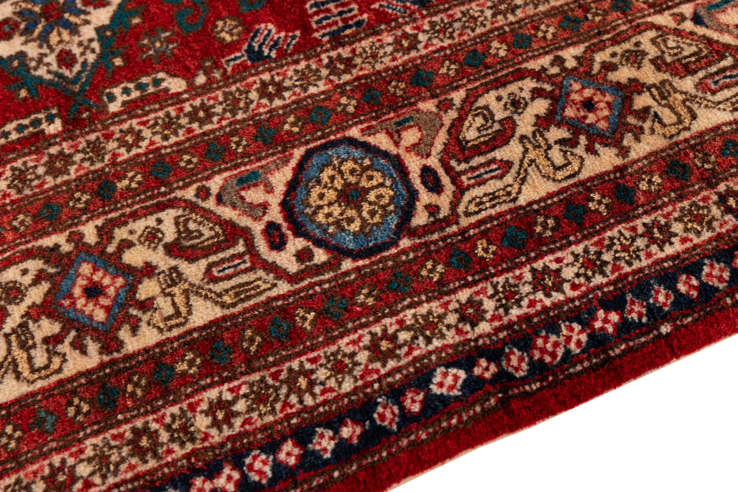 Ce tapis est fait de laine de mouton filée à la main de la plus haute qualité. En Iran (ancienne Perse), en Afghanistan et au Pakistan notamment, la laine est encore filée à la main avant que ne commence le nouage proprement dit du tapis. La laine a fait ses preuves en tant que matière naturelle et extrêmement résistante au fil des siècles. Il a notamment des propriétés antisalissures et d'isolation thermique. En même temps, la laine est incomparablement douce et a un éclat naturel.