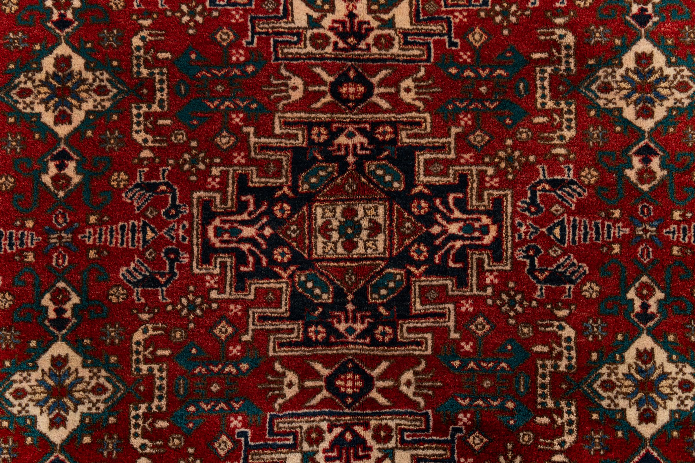 Le Caucase est situé entre la mer Noire et la mer Caspienne. Les montagnes caucasiennes sont connues pour leur paysage pittoresque et leurs villes, qui ont été façonnées par de nombreux tapis noués à la main dans cette région. Les tapis caucasiens sont populaires en raison de leurs motifs colorés et vifs. Les motifs géométriques et linéaires sont remarquablement fréquents sur les tapis orientaux du Caucase.