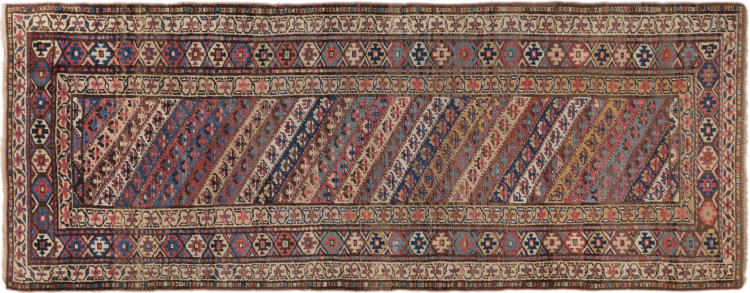Réf. Article: 298735002107 Taille: 245x100 cm Épaisseur: ap. 5 mm Densité de nouage: 200 000 - 250 000 / m² Fabrication: Noué à la main Velours: Laine filée à la main Chaîne: Laine de mouton État du tapis / Conservation Perfect Origine: Azerbaijan / Russie Âge: Antique, over 80 ans Poids: ap. 6 kg Nombre en stock: Unique - Seulement 1 en stock