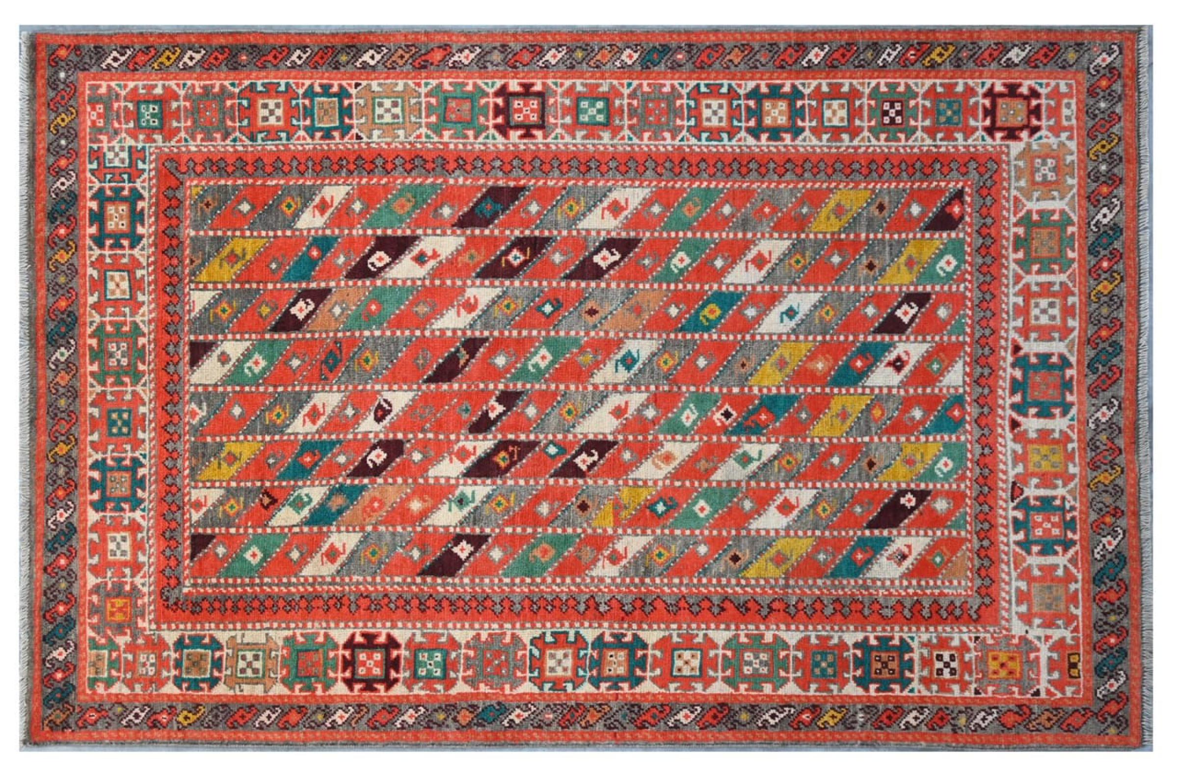 Réf. Article: 305869007118405 Taille: 187x119 cm Épaisseur: ap. 5 mm Densité de nouage: 96 000 - 120 000 / m² Fabrication: Noué à la main Velours: Laine filée à la main Chaîne: Coton Origine: Afghanistan Âge: Nouveau Poids: ap. 6 kg Nombre en stock: Unique - Seulement 1 en stock