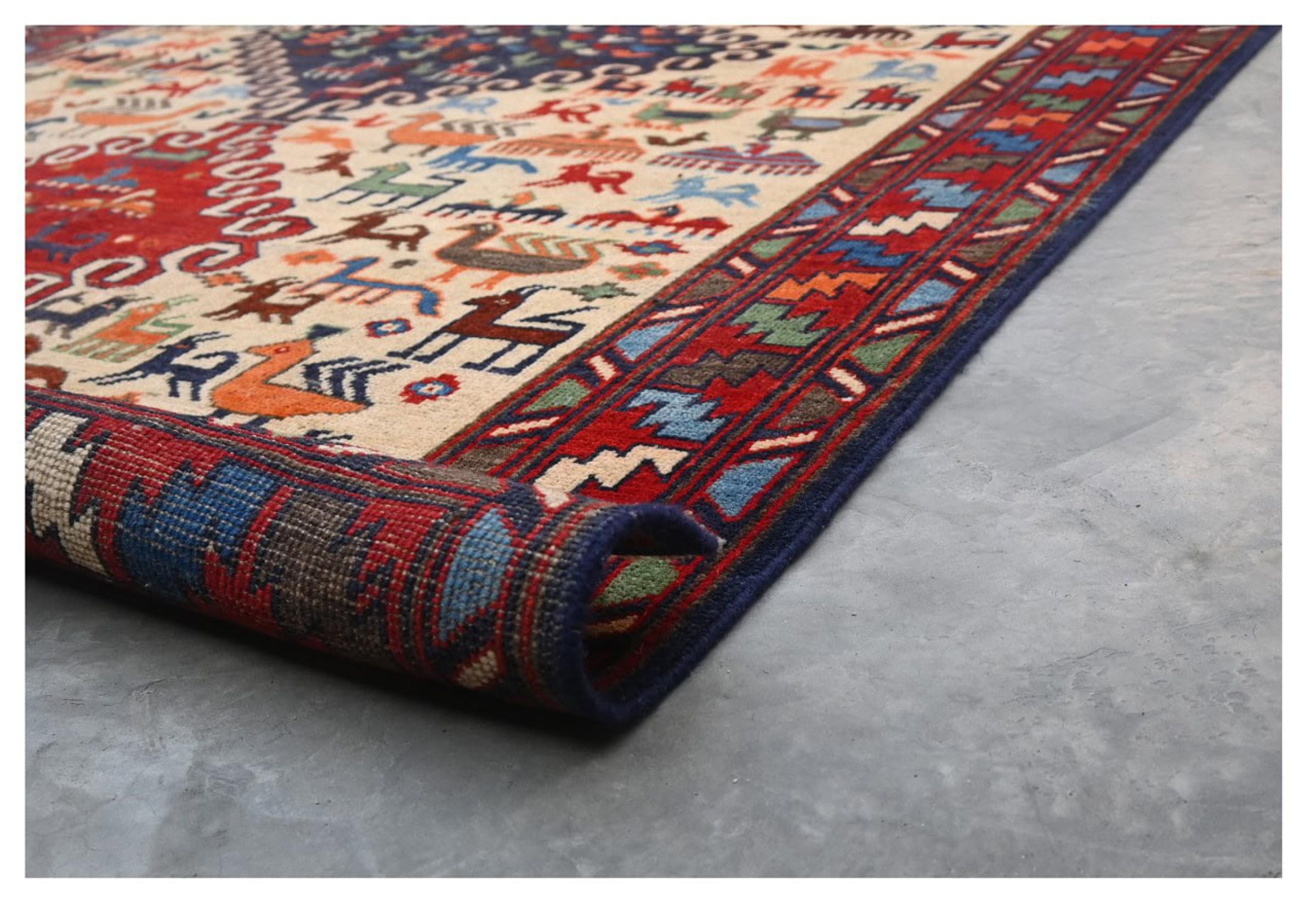 Ce tapis est fait de laine de mouton filée à la main de la plus haute qualité. En Iran (ancienne Perse), en Afghanistan et au Pakistan notamment, la laine est encore filée à la main avant que ne commence le nouage proprement dit du tapis. La laine a fait ses preuves en tant que matière naturelle et extrêmement résistante au fil des siècles. Il a notamment des propriétés antisalissures et d'isolation thermique. En même temps, la laine est incomparablement douce et a un éclat naturel.