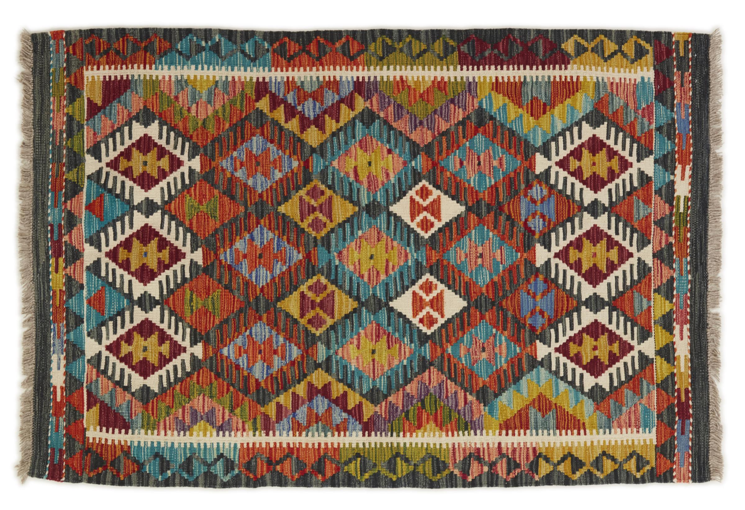 Ce tapis Afghan Kilim tissé main est une merveille, grâce à ses couleurs et à ses motifs caractéristiques. Il a été fabriqué en Afghanistan avec de la laine, et a bien sûr été fait à la main. Il est robuste et durable. Il est un véritable bénéfice pour votre maison.
