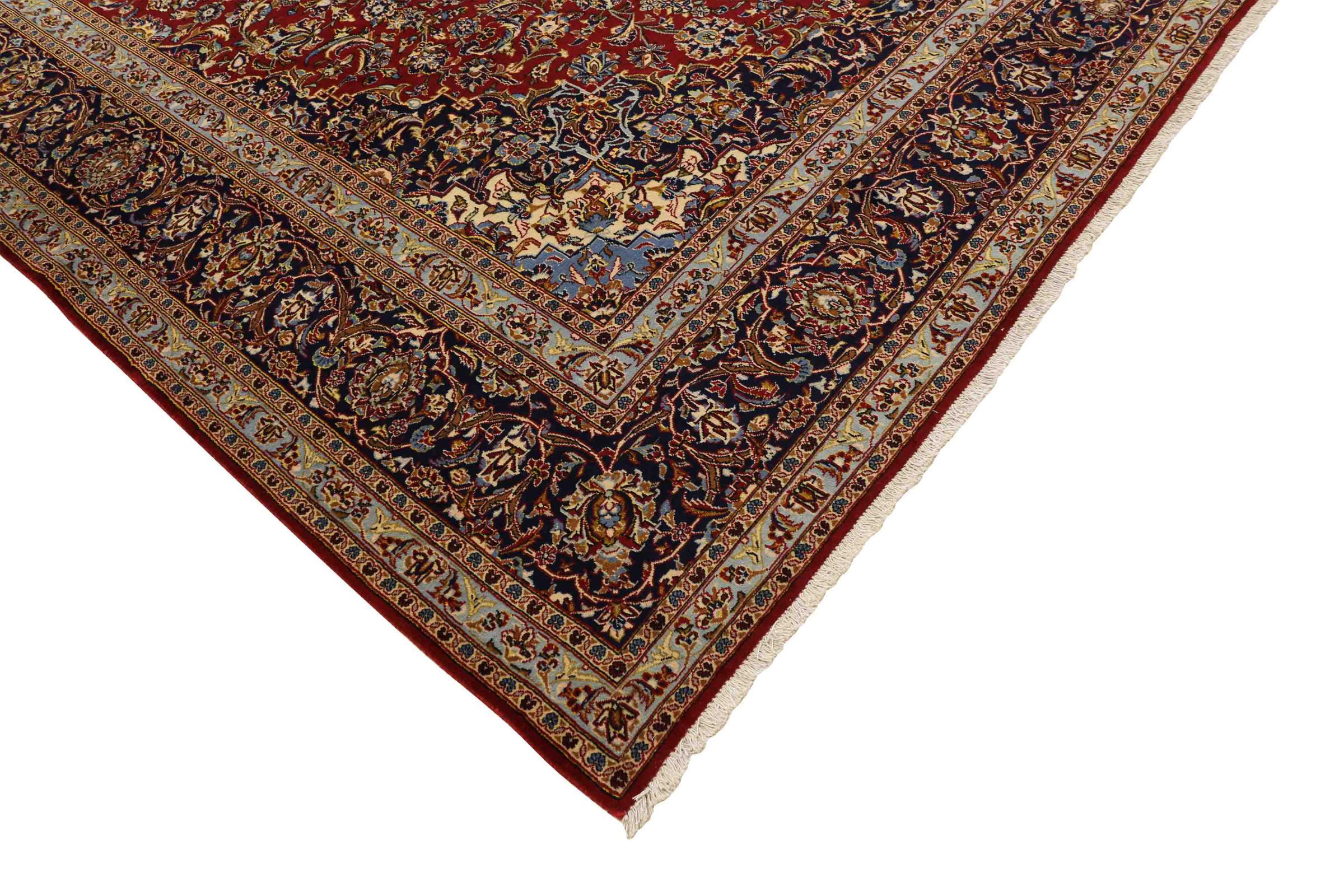 Ce tapis de Kashan (Keshan) se tient dans son design persan très traditionnel et typique avec de beaux ornements. Les tapis Kashan sont très populaires en raison de leur design exceptionnellement élégant. Ces tapis sont originaires de Kashan, une ville située sur l'ancienne route de la soie. Ce tapis a été noué à la main à partir de laine de mouton de haute qualité et sera un point culminant unique dans votre maison.