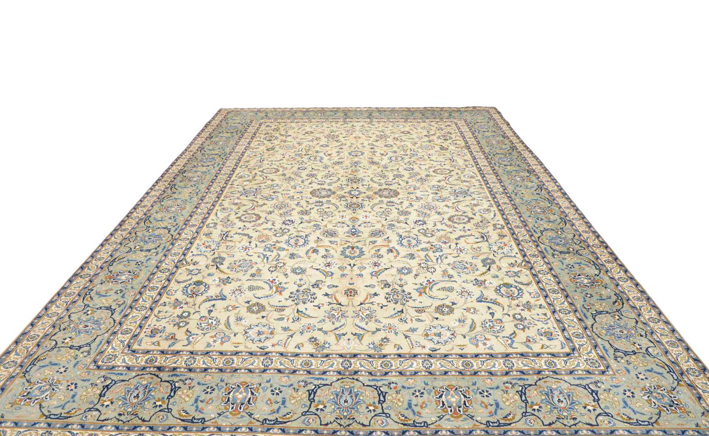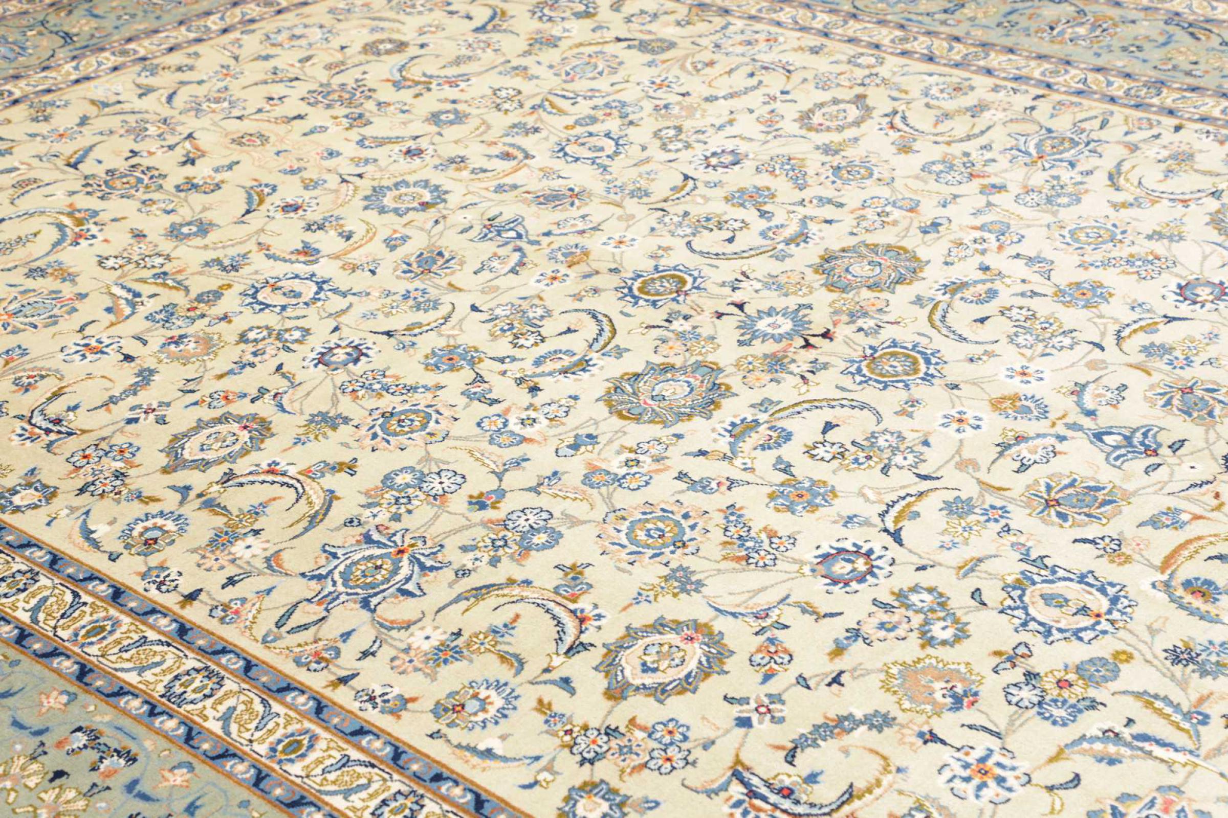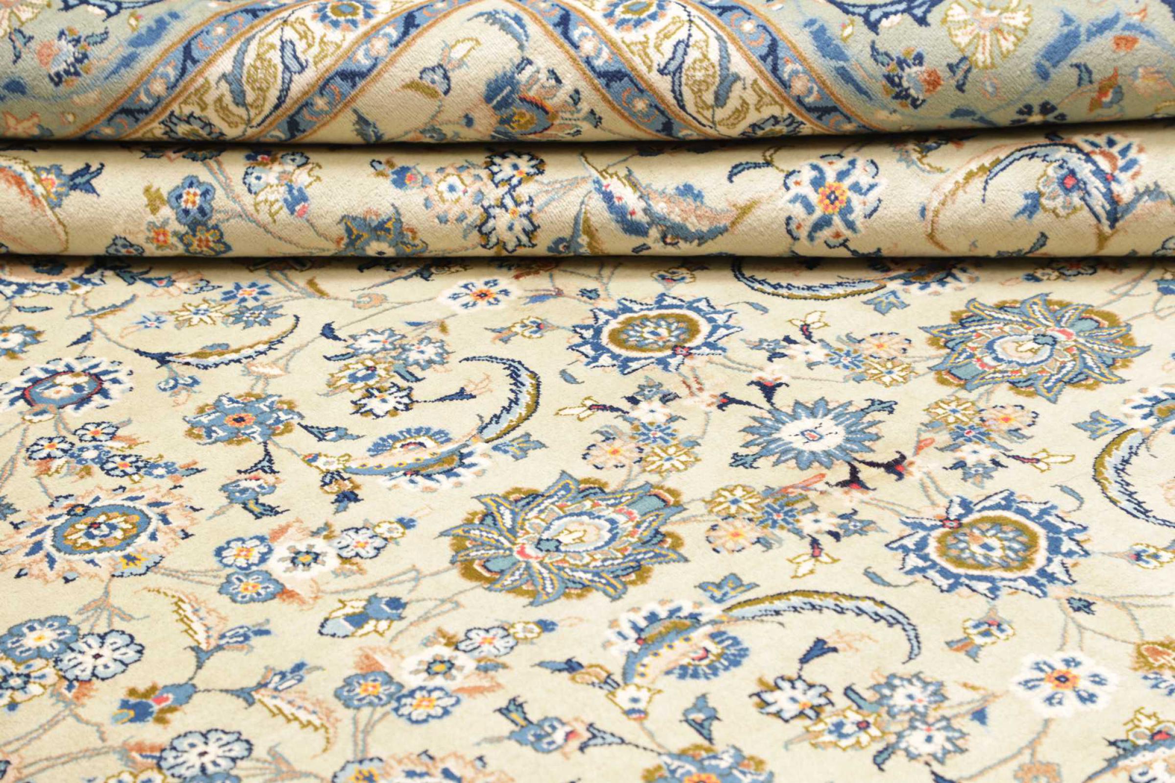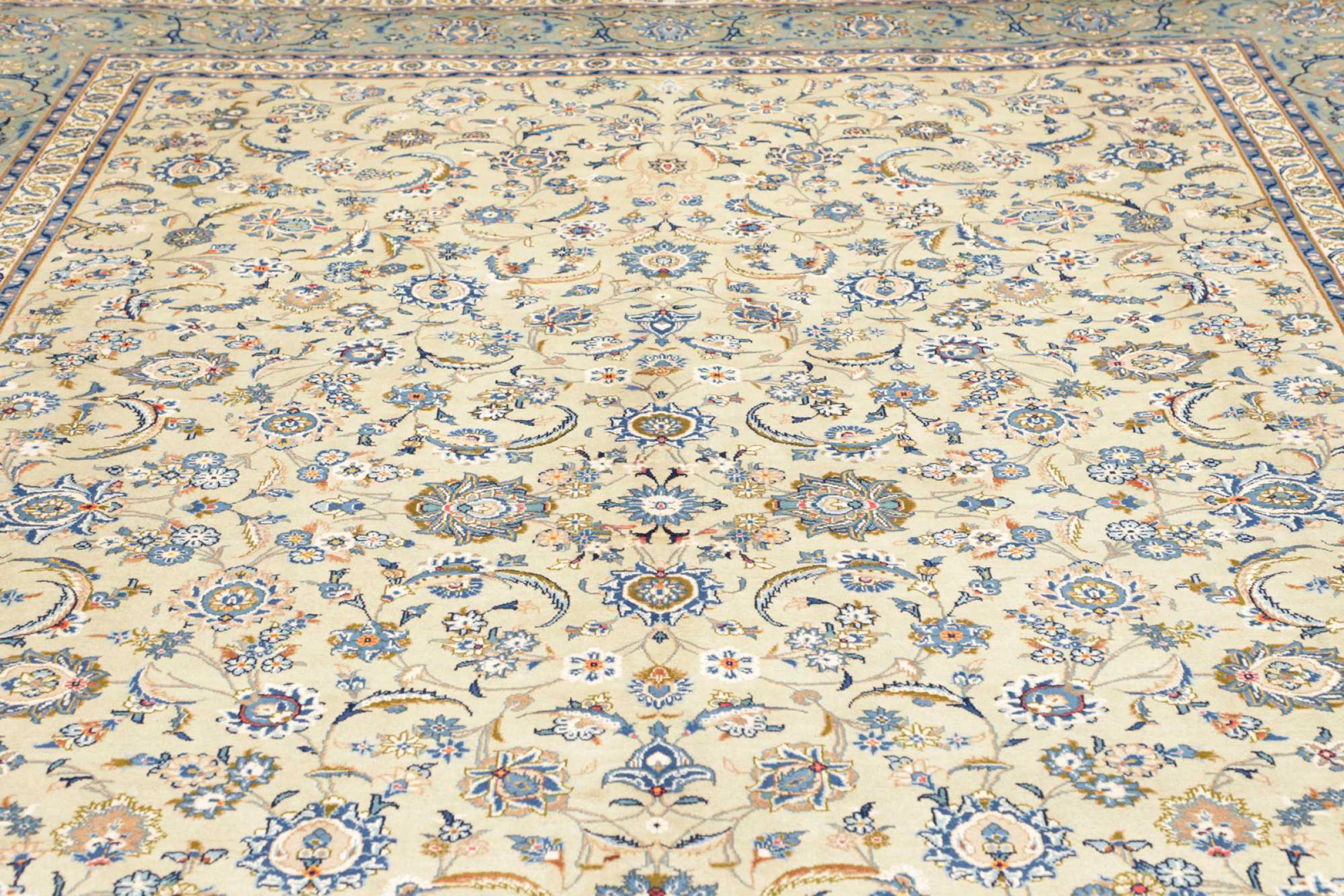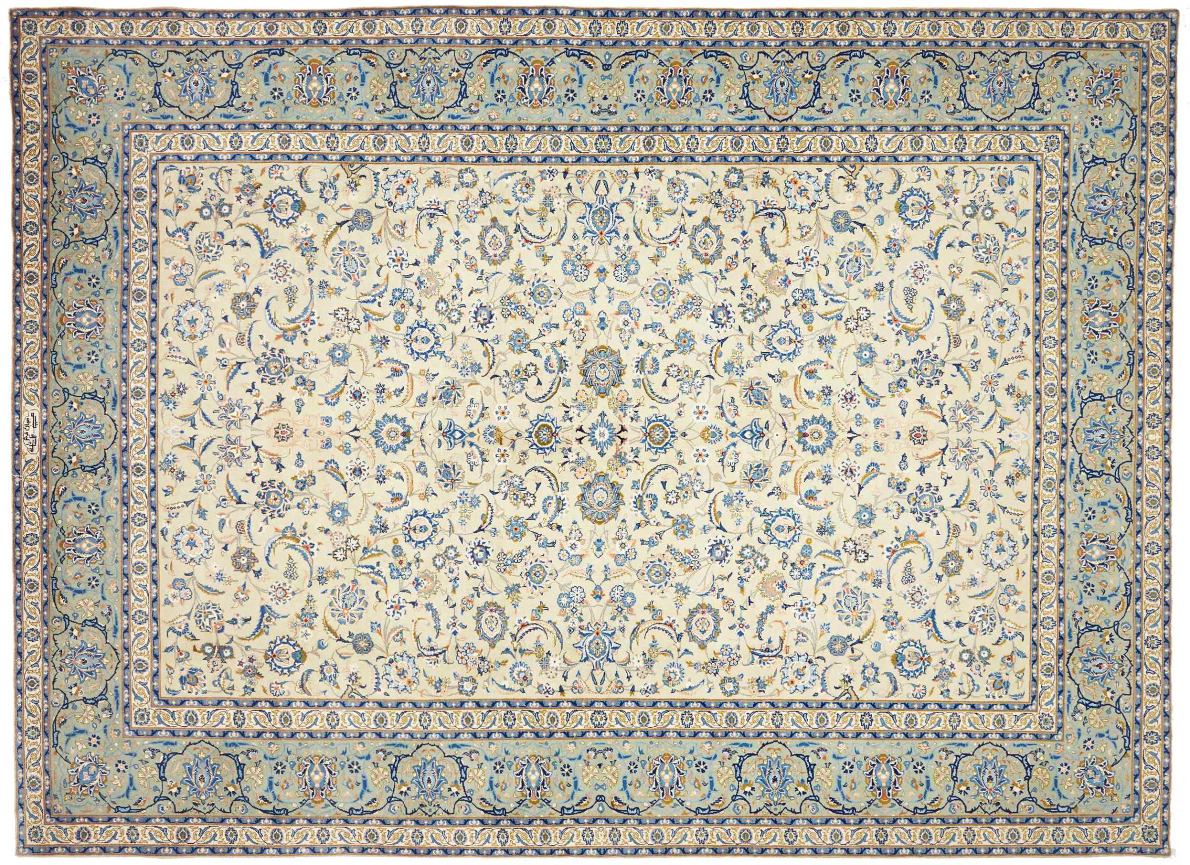 Réf. Article: 31907700612952 Taille: 401x293 cm Épaisseur: ap. 12 mm Densité de nouage: 128 000 - 160 000 / m² Fabrication: Noué à la main Velours: Laine filée à la main Chaîne: Coton Origine: Persie / Iran Âge: Nouveau Poids: ap. 41 kg Nombre en stock: Unique - Seulement 1 en stock