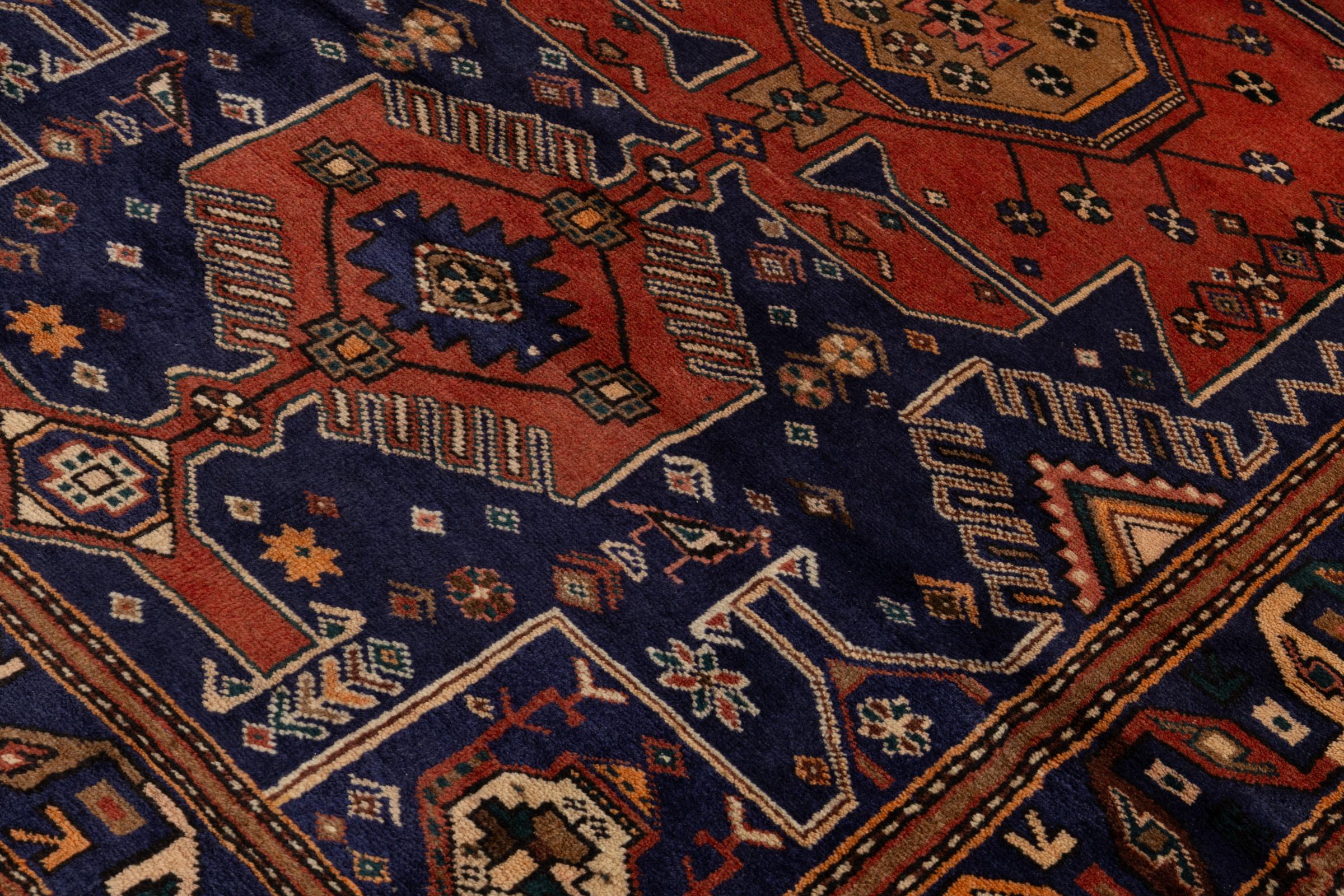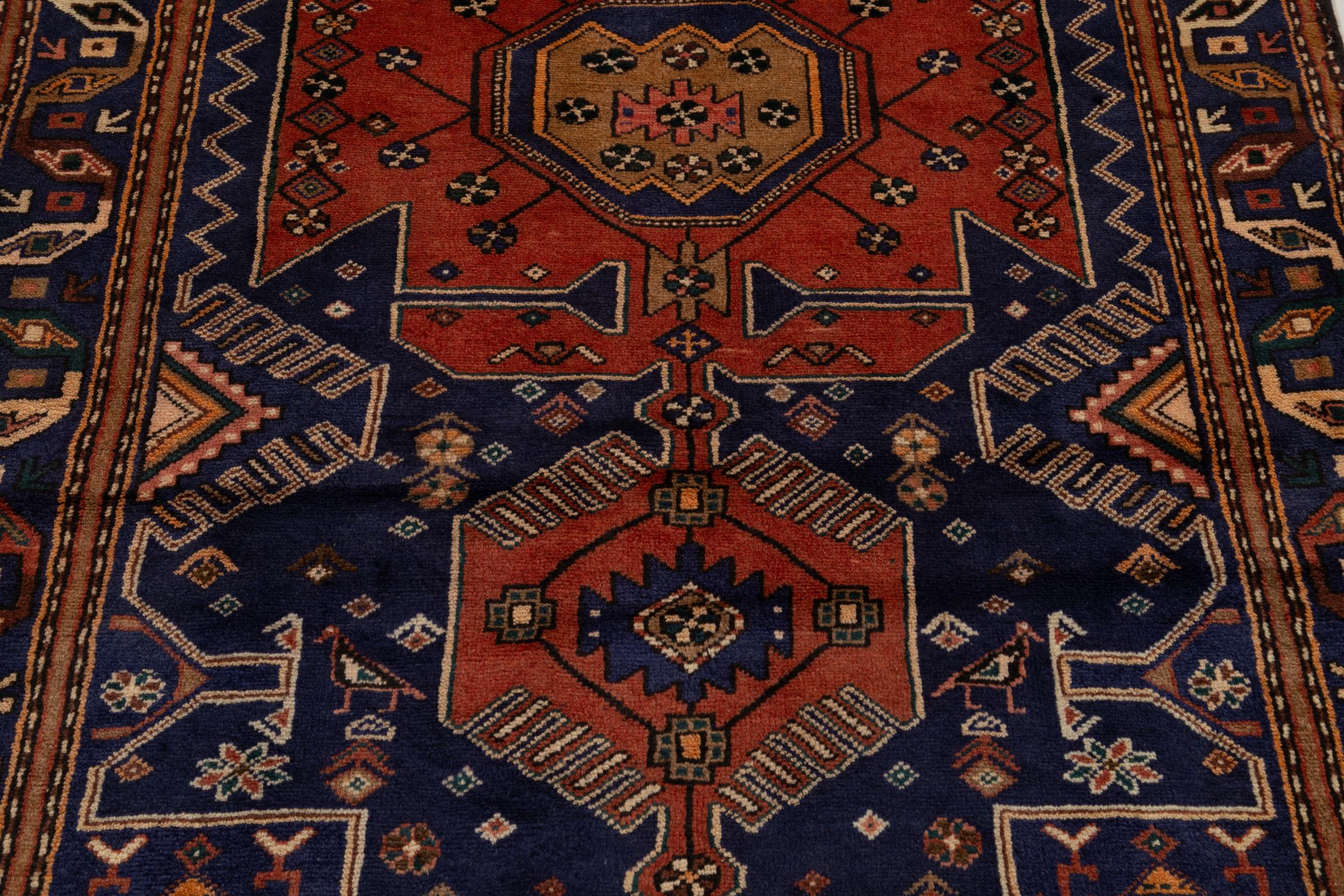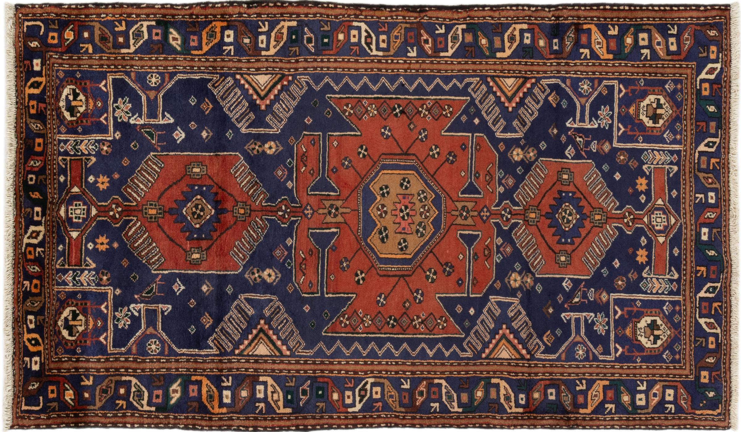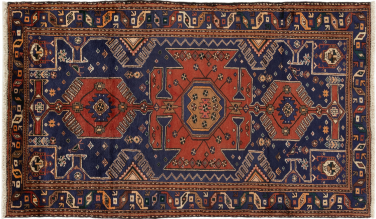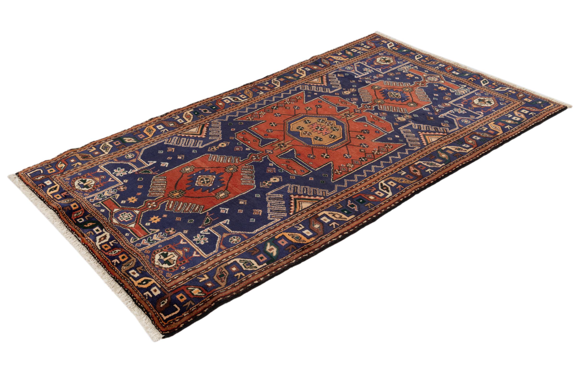 Ce tapis appartient aux tapis de village et de nomade d'Iran, anciennement la Perse. Ce type de tapis est noué à la main dans les petites villes et les villages selon l'ancienne tradition. Même les nomades nouent encore des tapis persans en plein air. Les tapis sont noués sans schéma et entièrement à partir de la tête. Ils se caractérisent par des ornements classiques, qui sont disposés en motifs droits et géométriques. Grâce à leur origine culturelle et traditionnelle, ces tapis ont un caractère unique qui incarne la Perse ancienne.